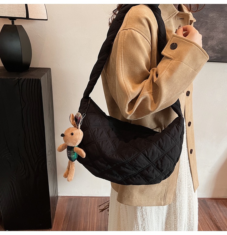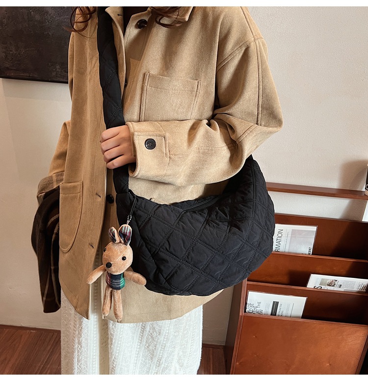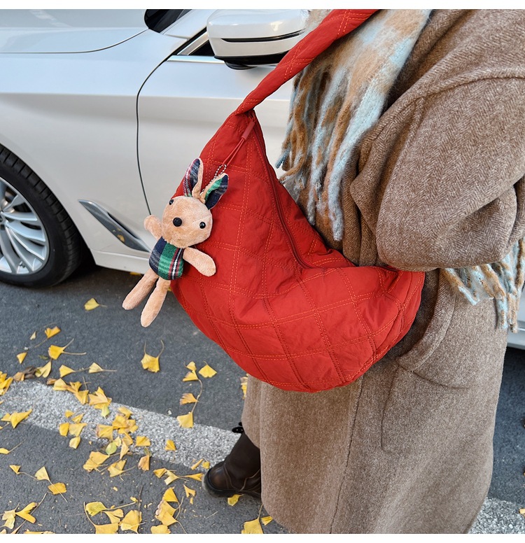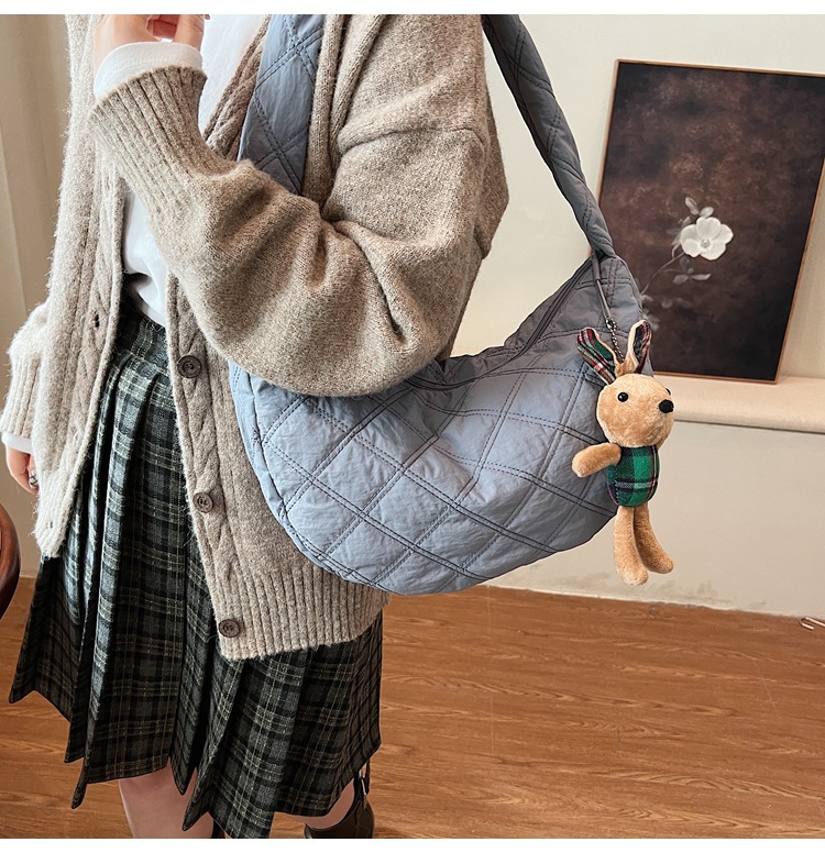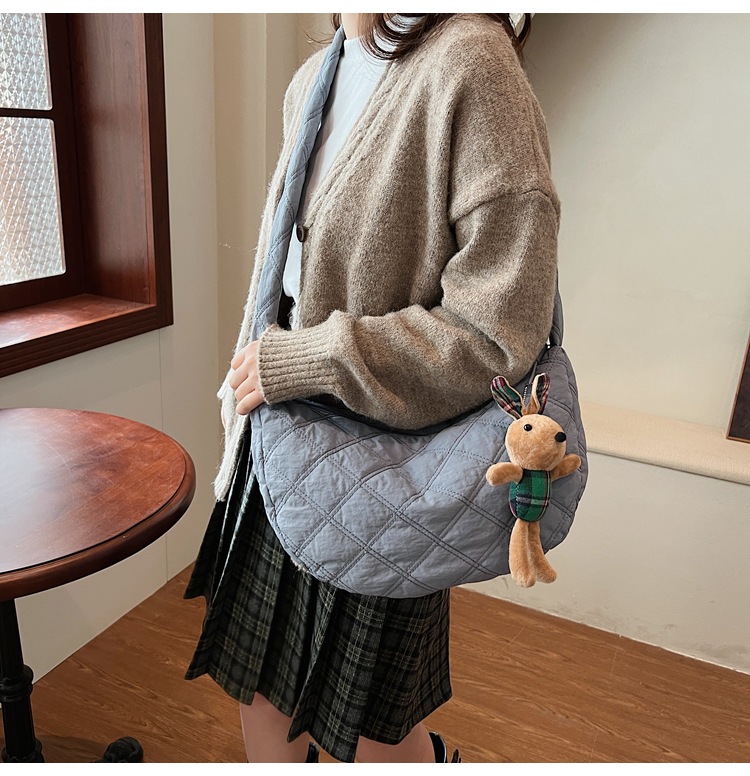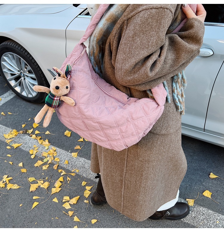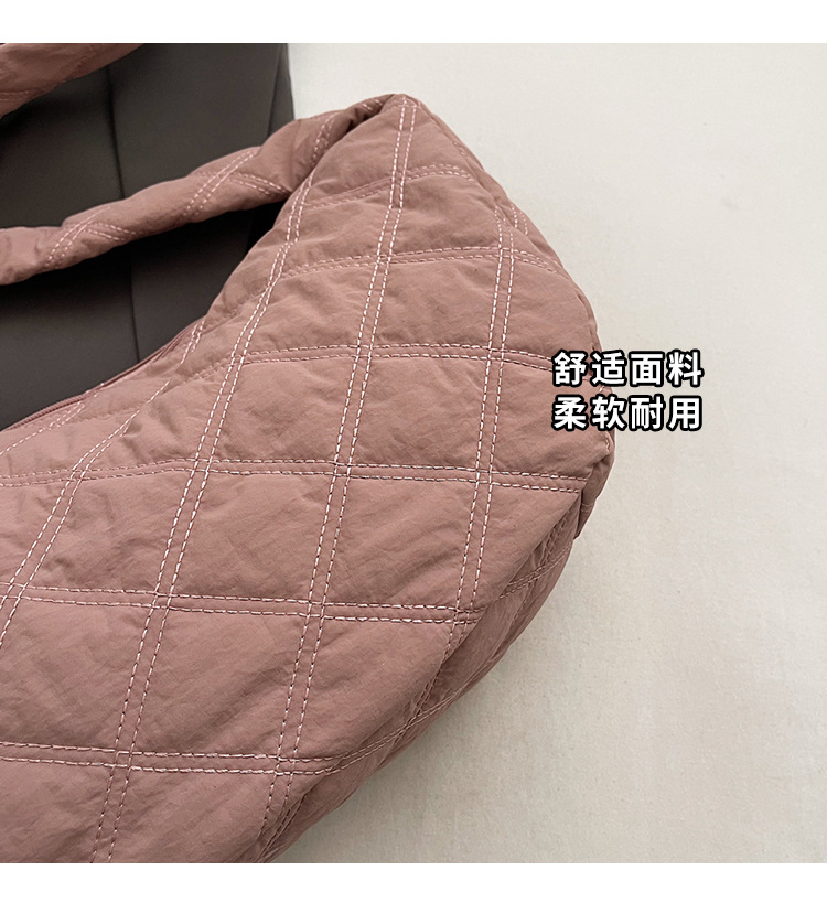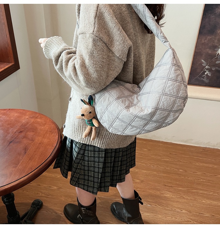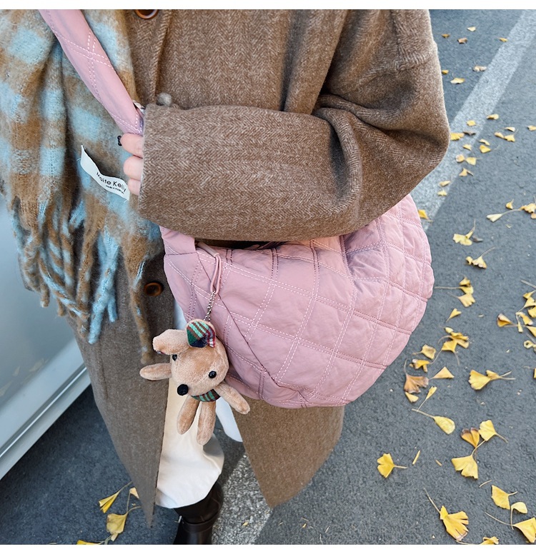 秋冬菱格棉服包包云朵褶皱大包女休闲个性轻便大容量饺子包斜挎包