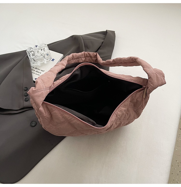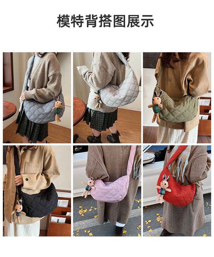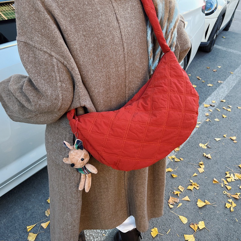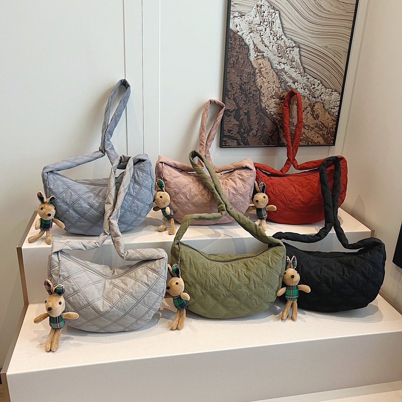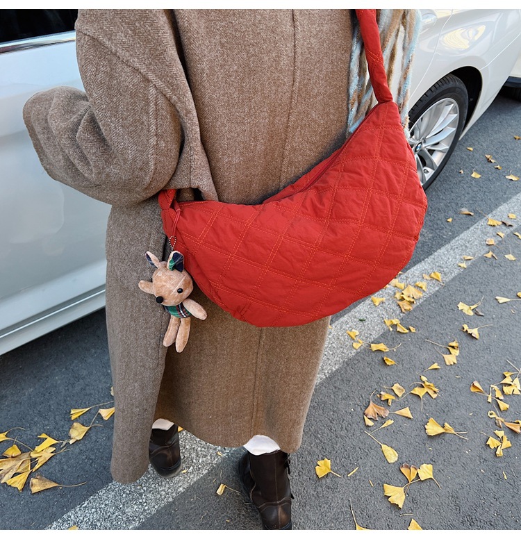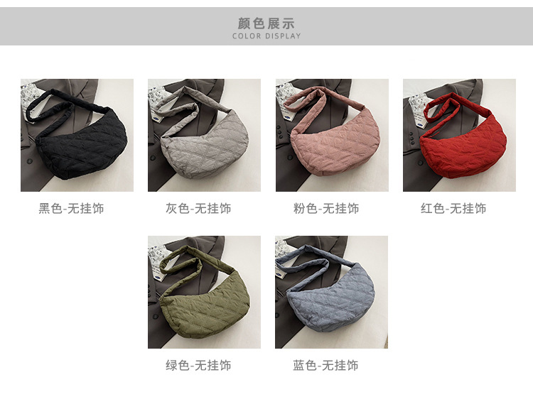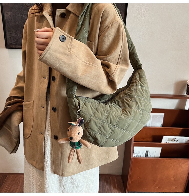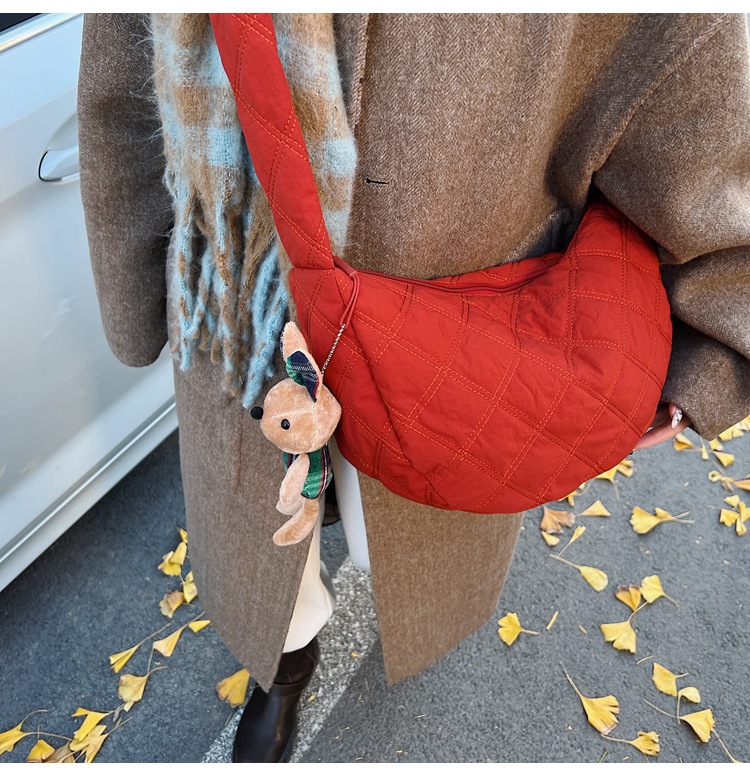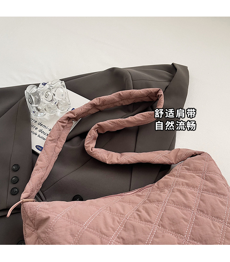 秋冬菱格棉服包包云朵褶皱大包女休闲个性轻便大容量饺子包斜挎包