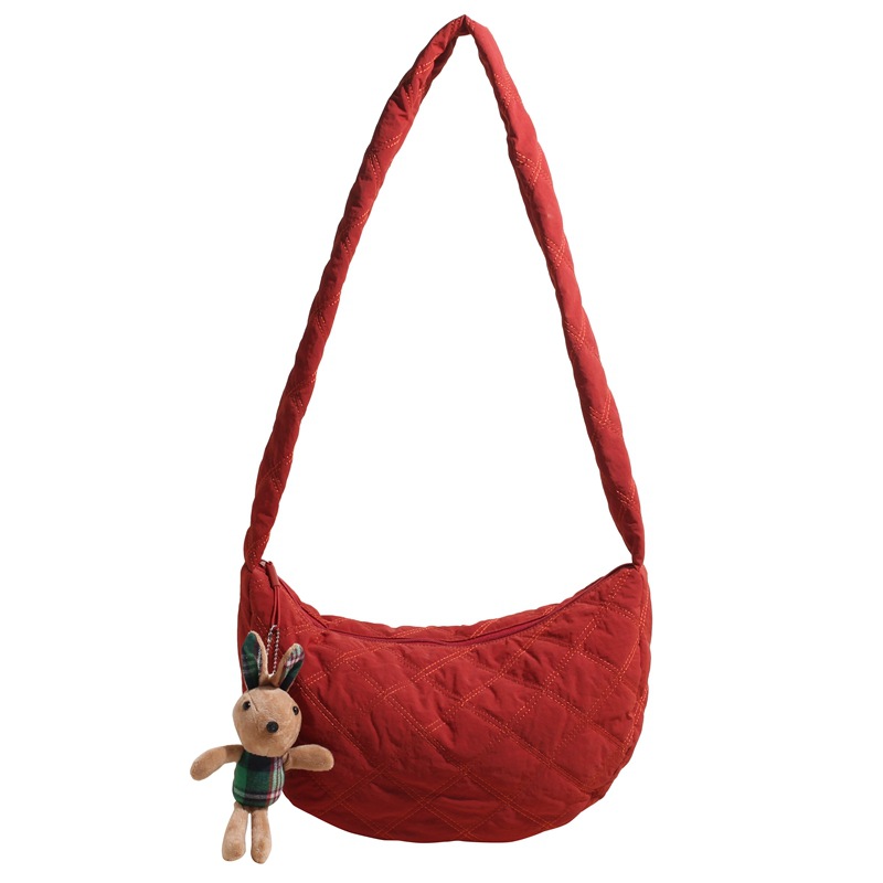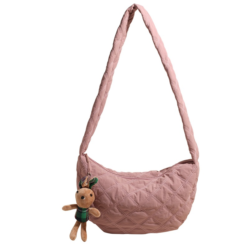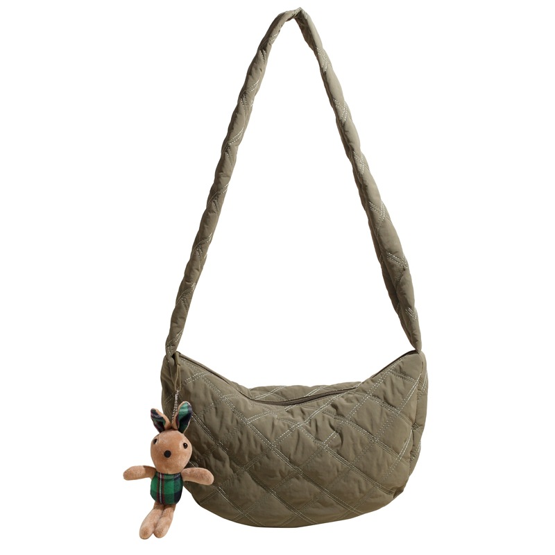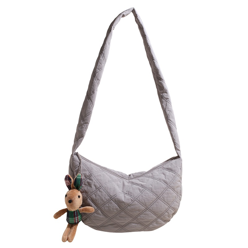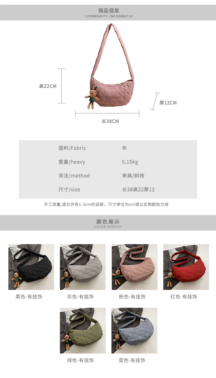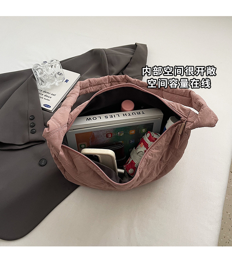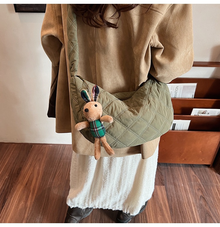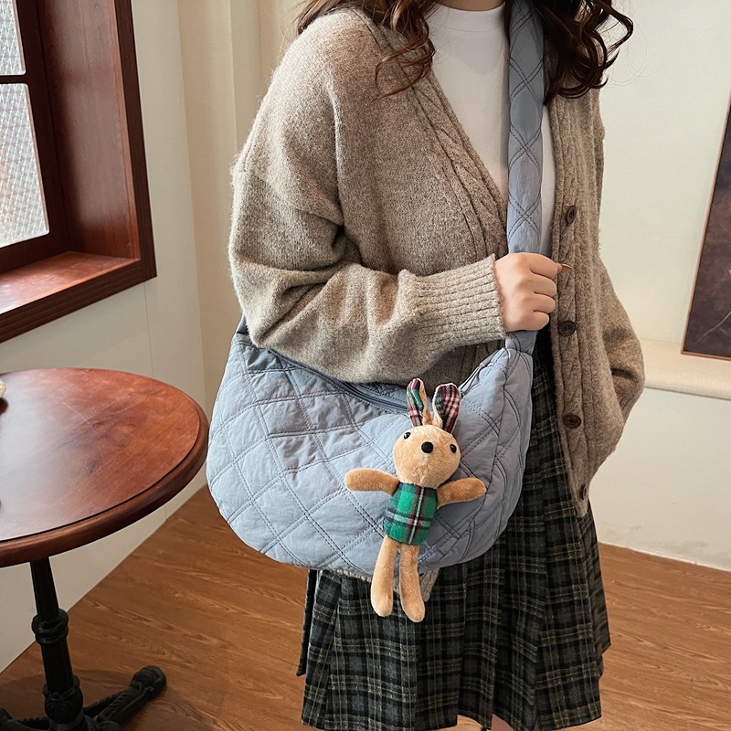 秋冬菱格棉服包包云朵褶皱大包女休闲个性轻便大容量饺子包斜挎包