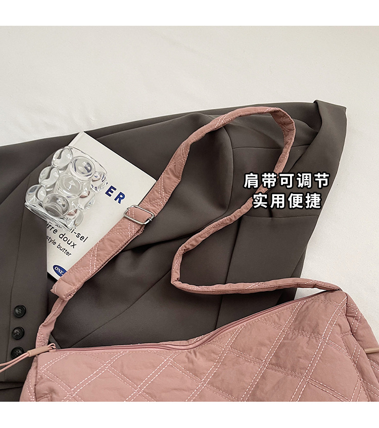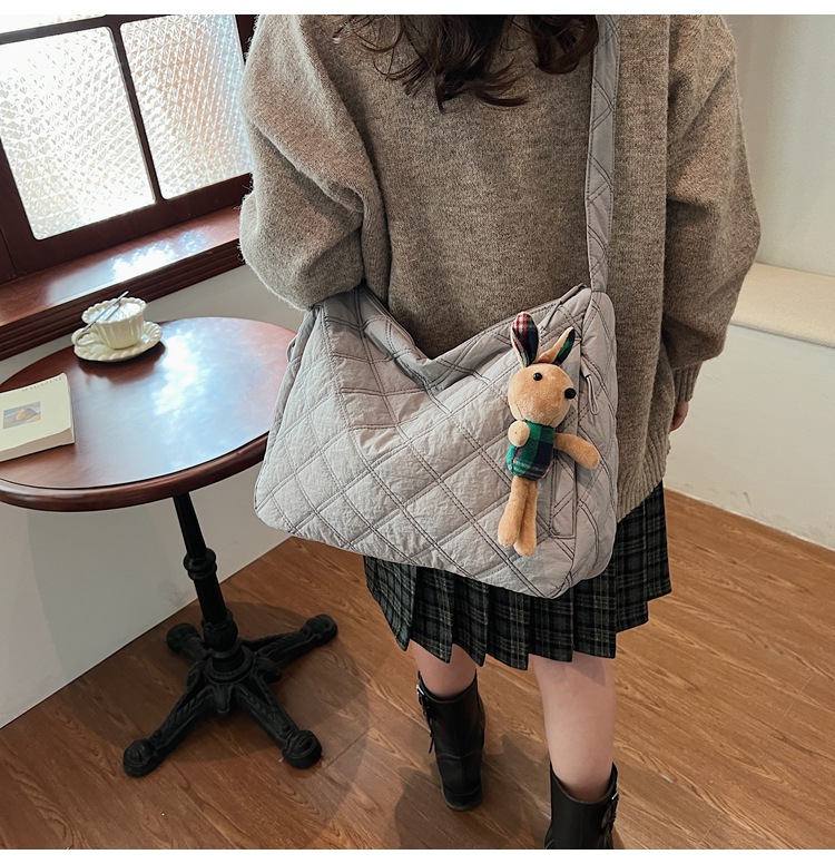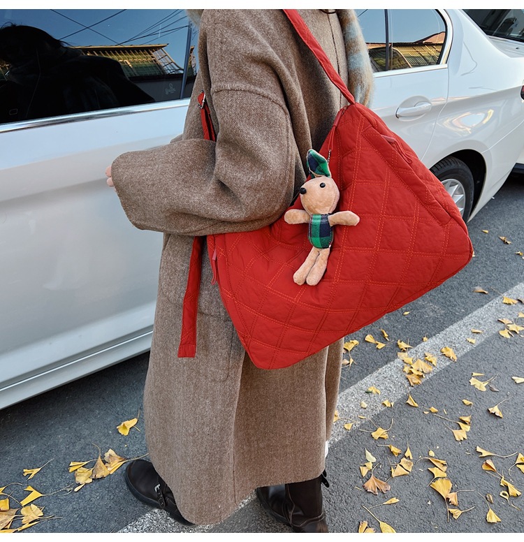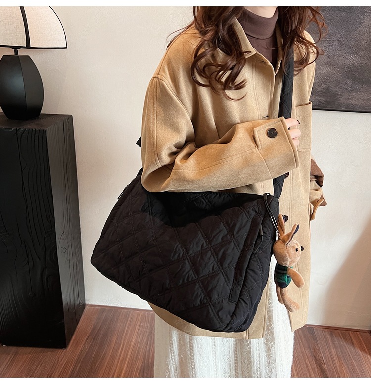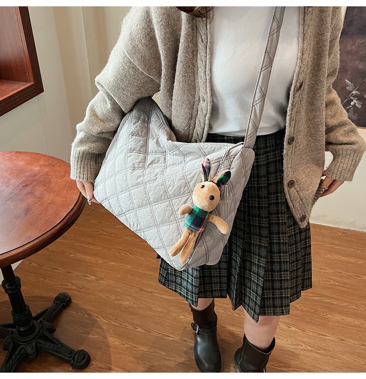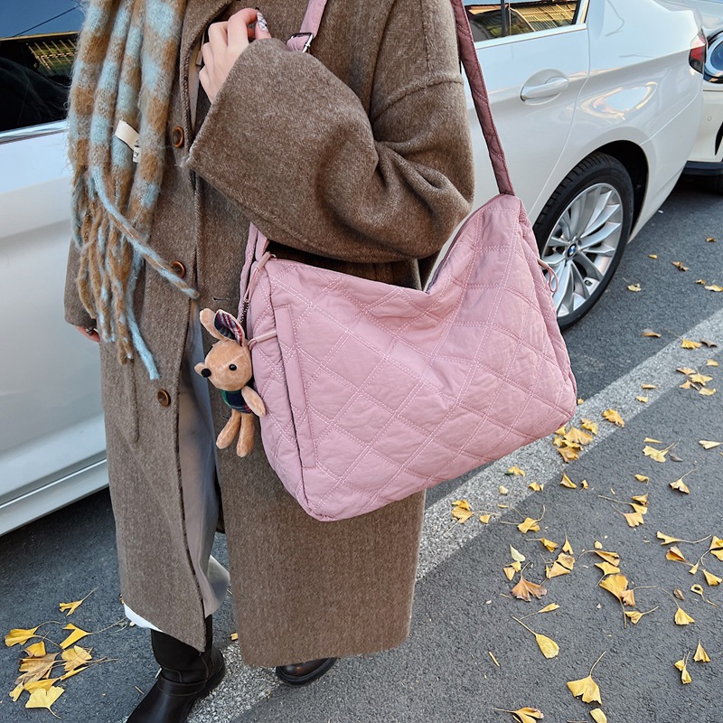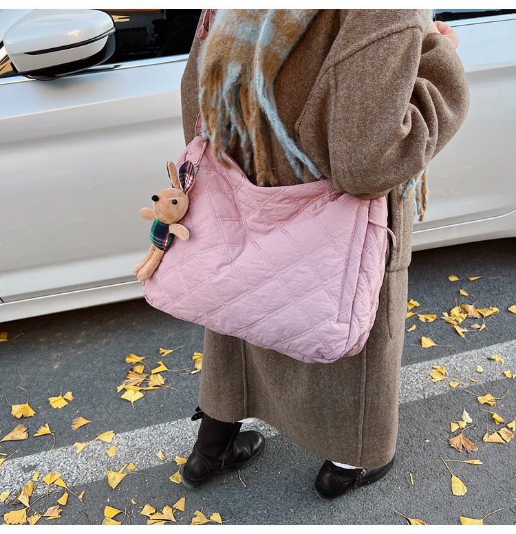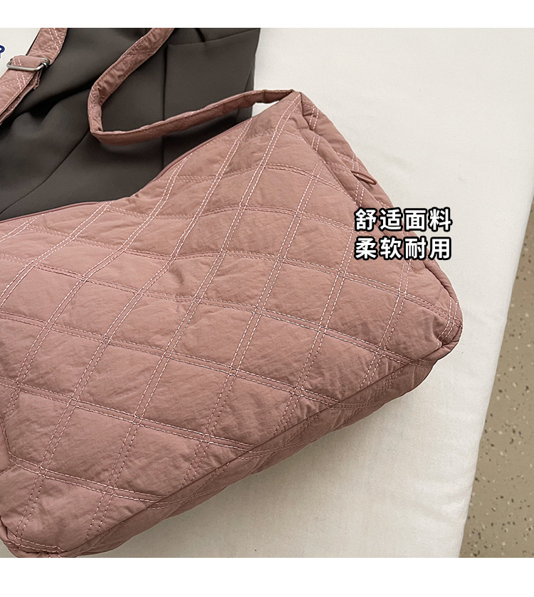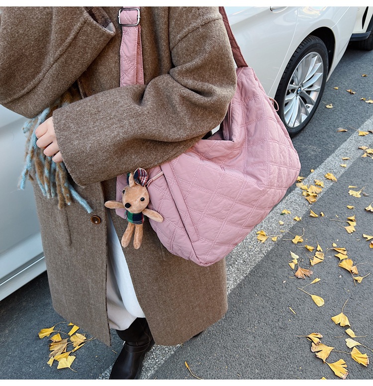 秋冬新款大容量女包韩版绣线菱格羽绒棉服包轻便尼龙包百搭斜挎包