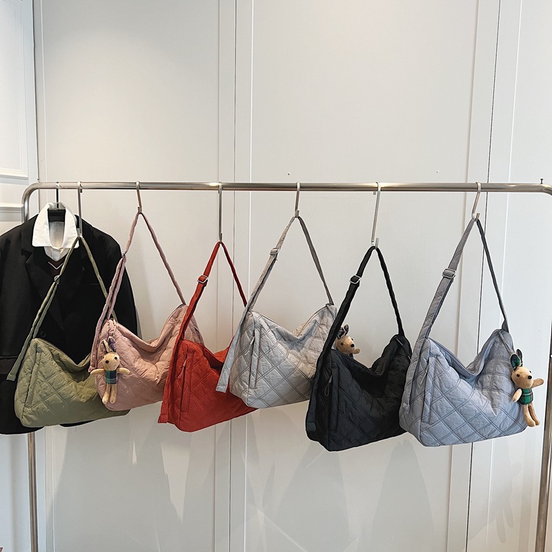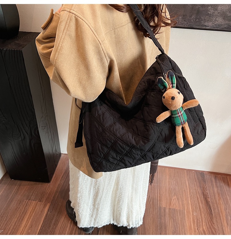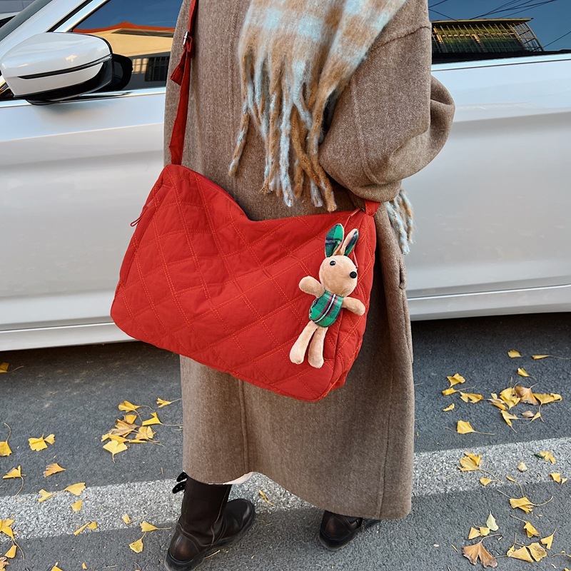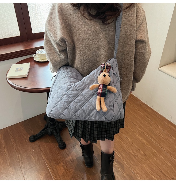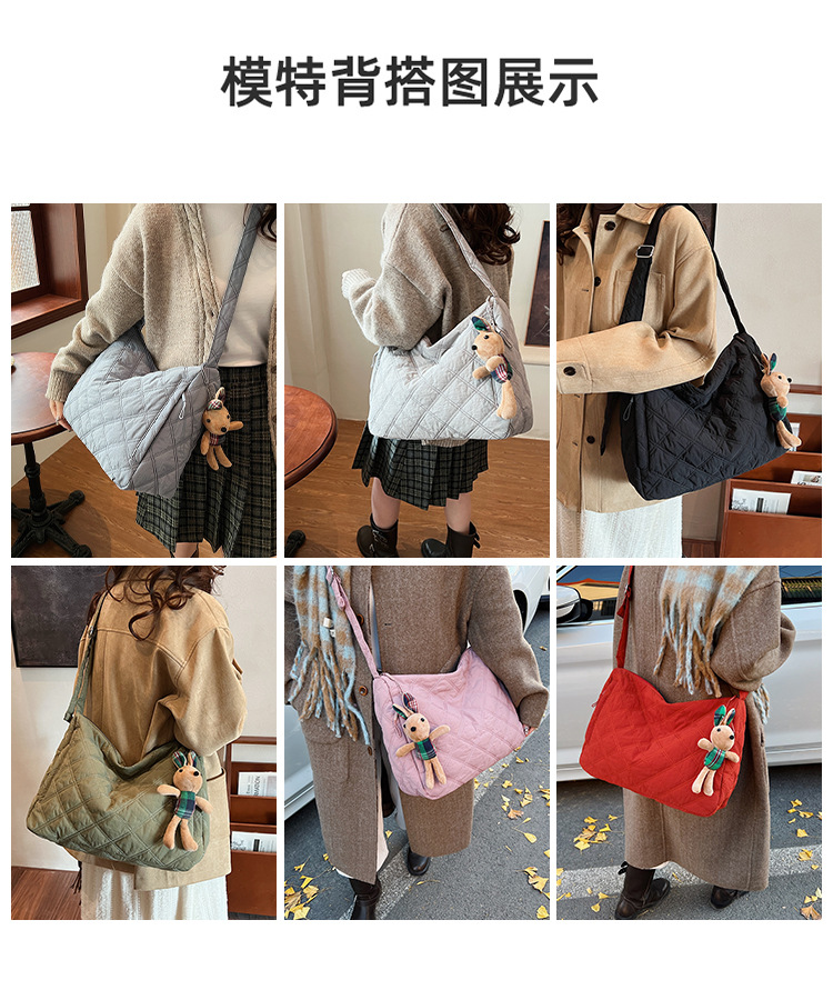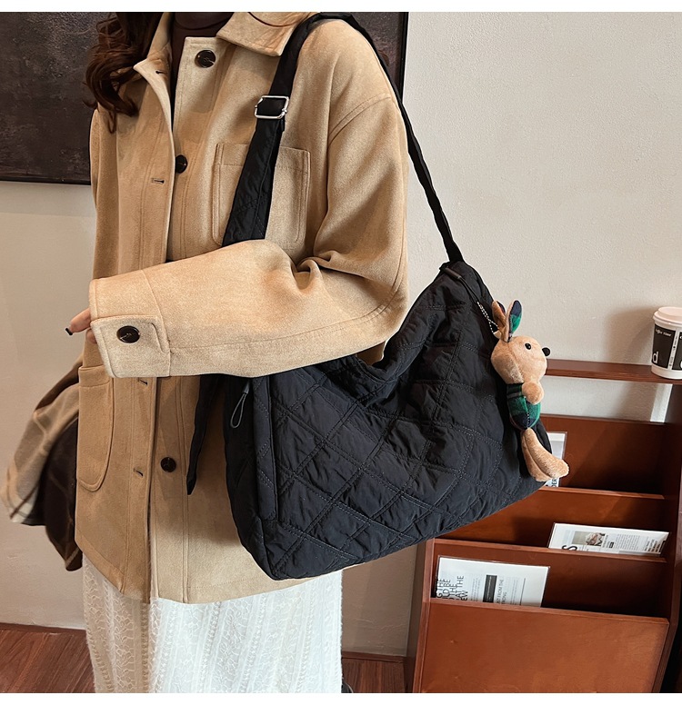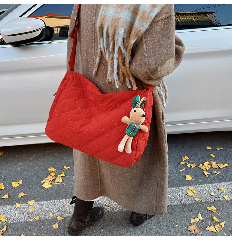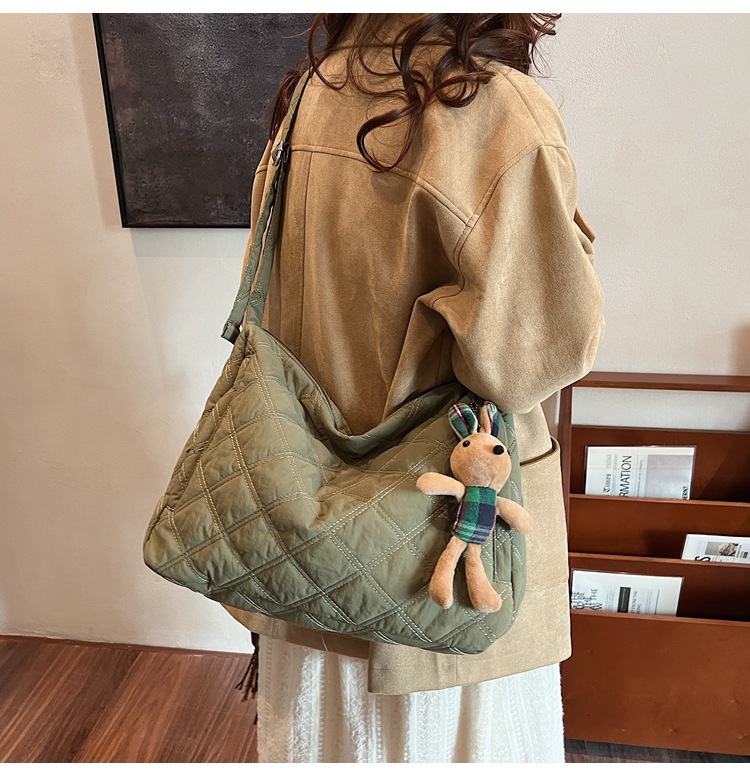 秋冬新款大容量女包韩版绣线菱格羽绒棉服包轻便尼龙包百搭斜挎包