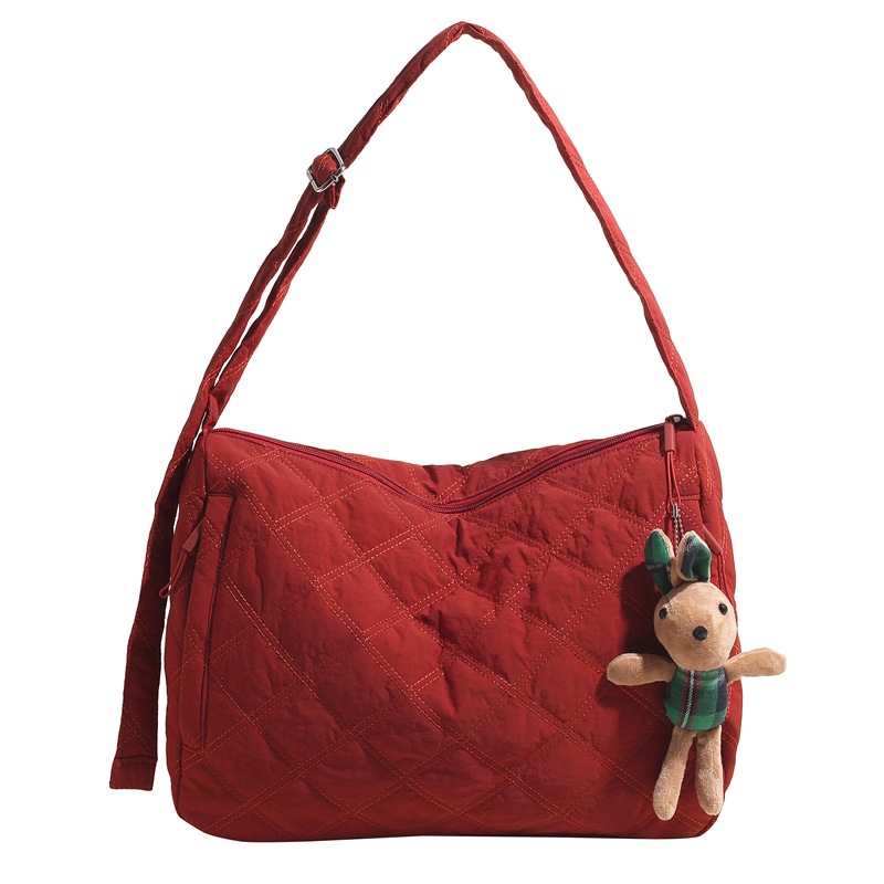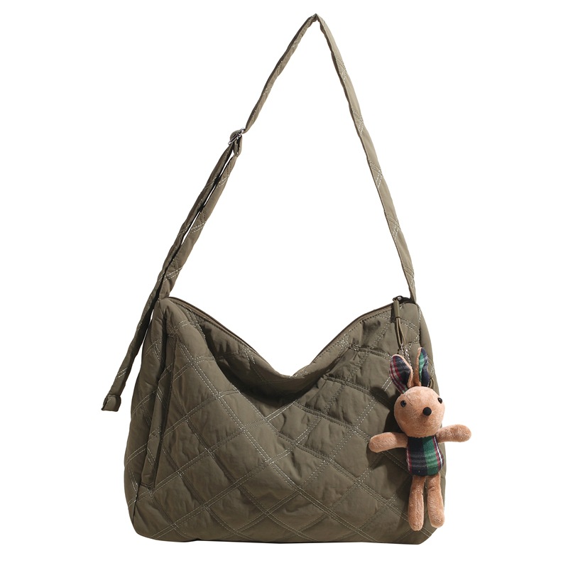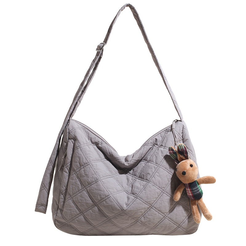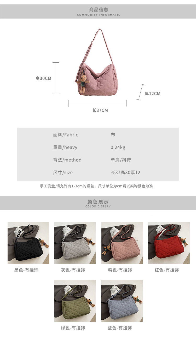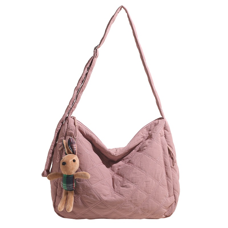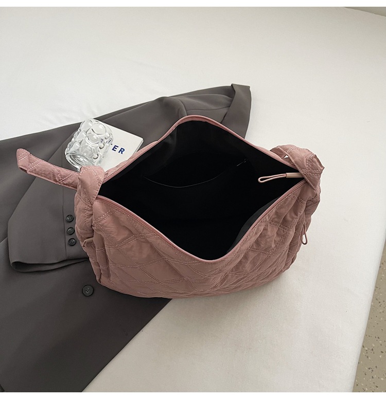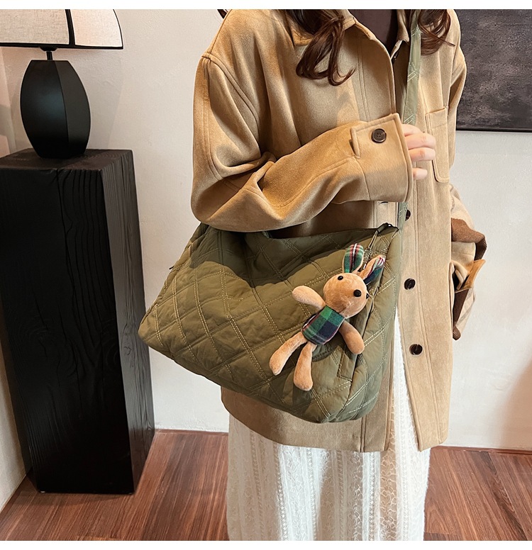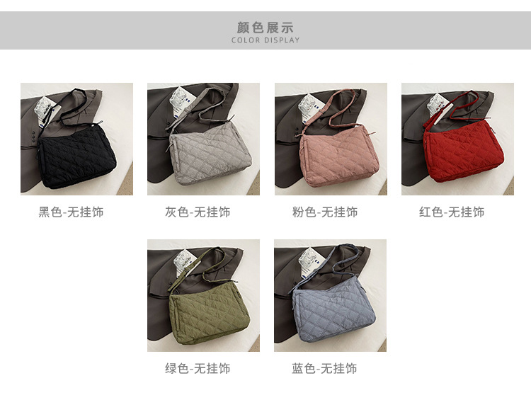 秋冬新款大容量女包韩版绣线菱格羽绒棉服包轻便尼龙包百搭斜挎包