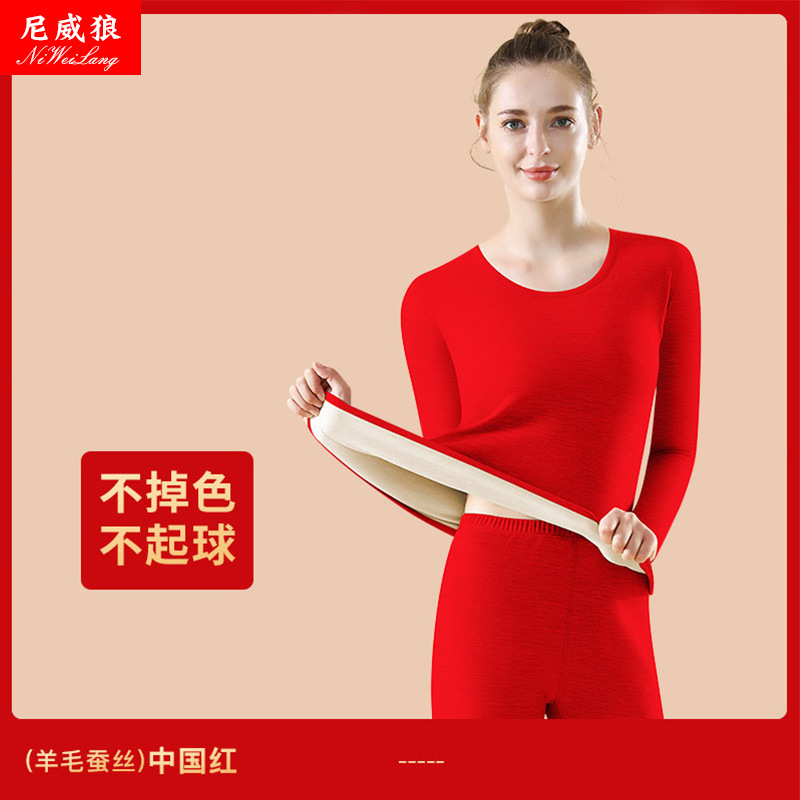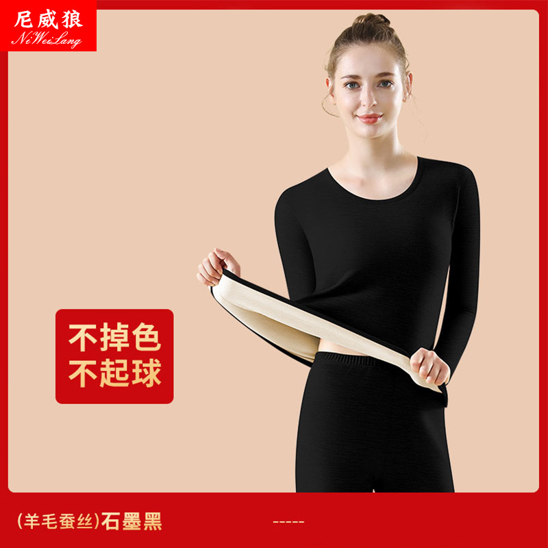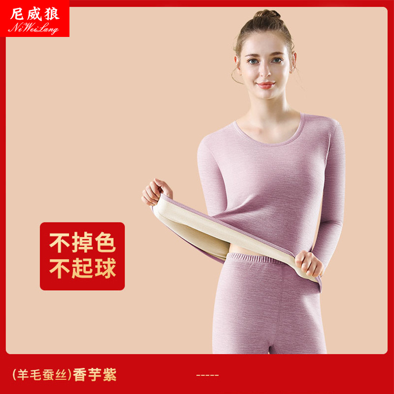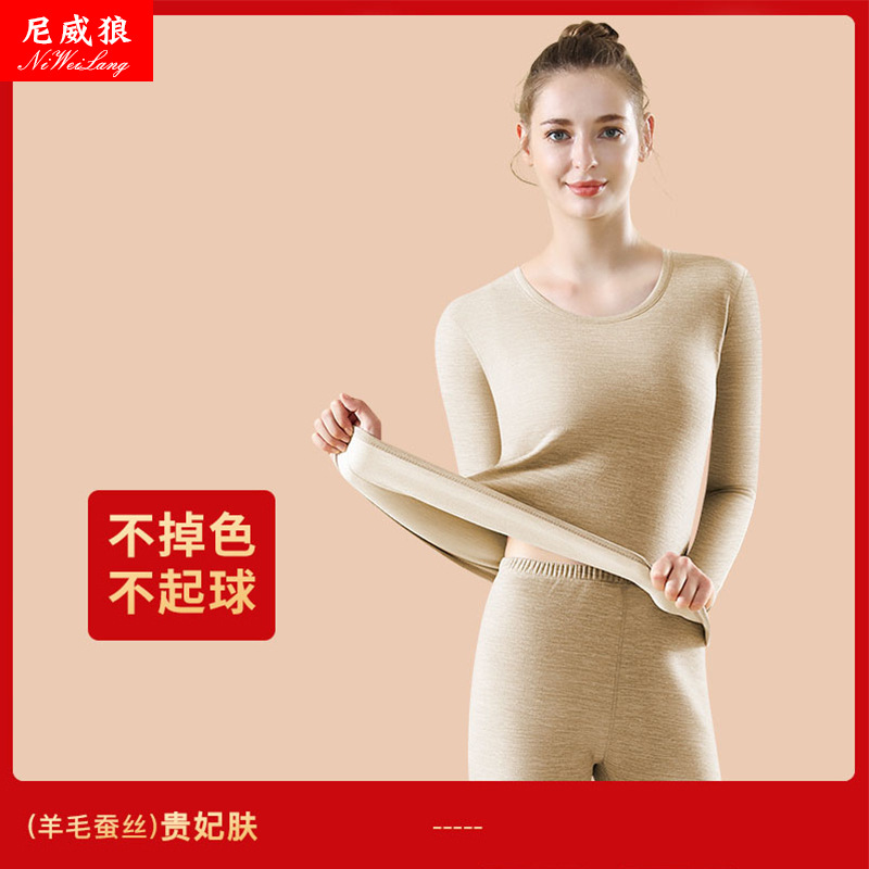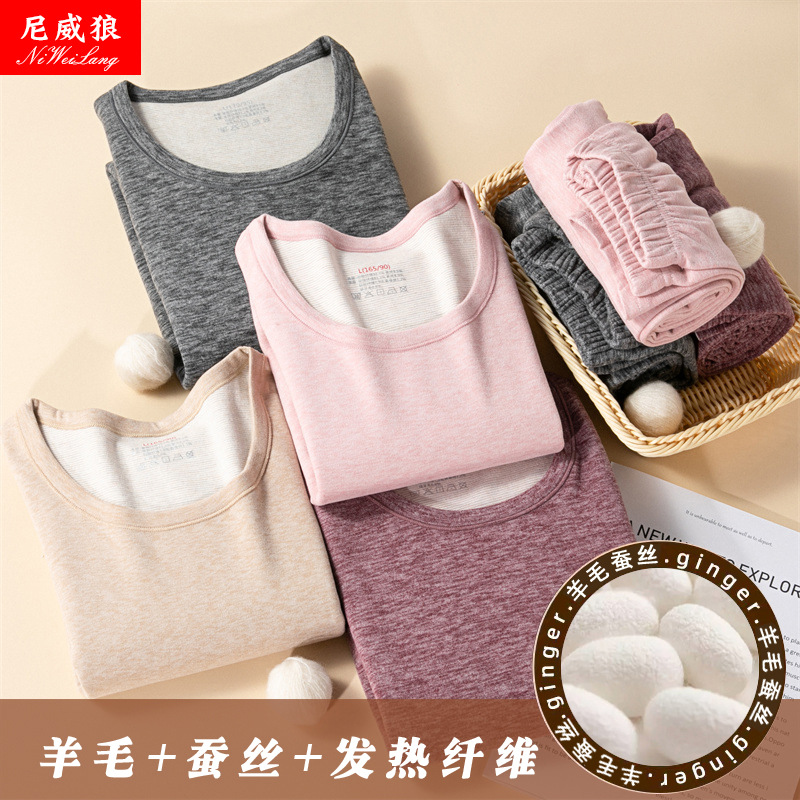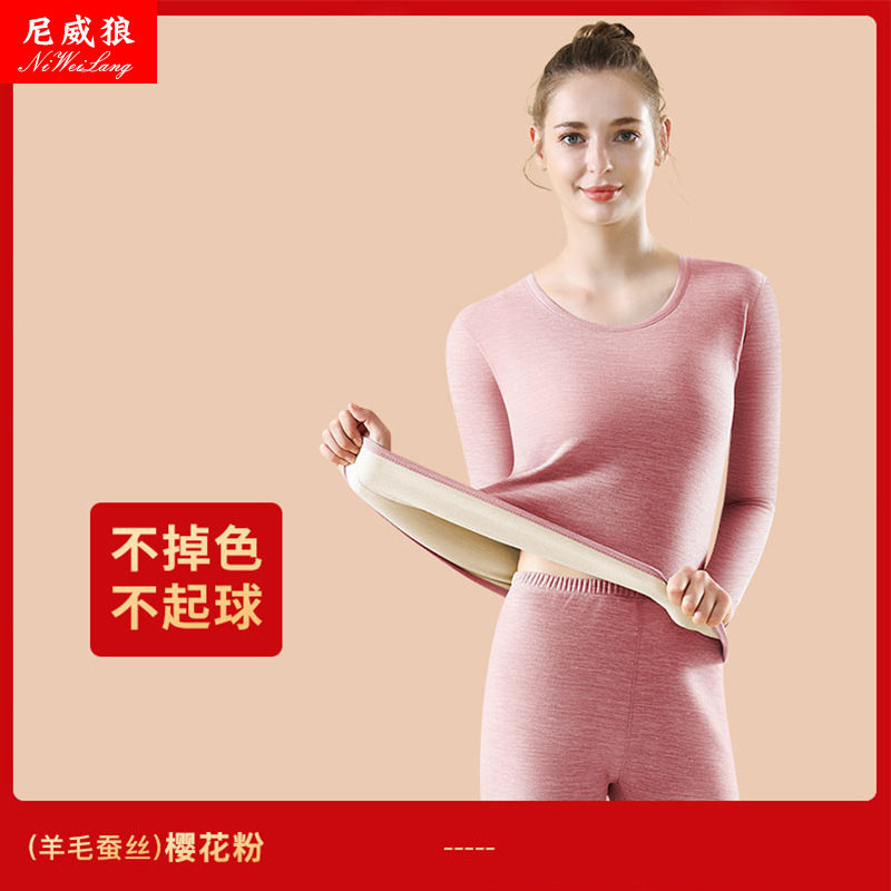 新款羊毛蚕丝男女保暖套装内衣女加绒男女秋衣秋裤套装打底衫批发