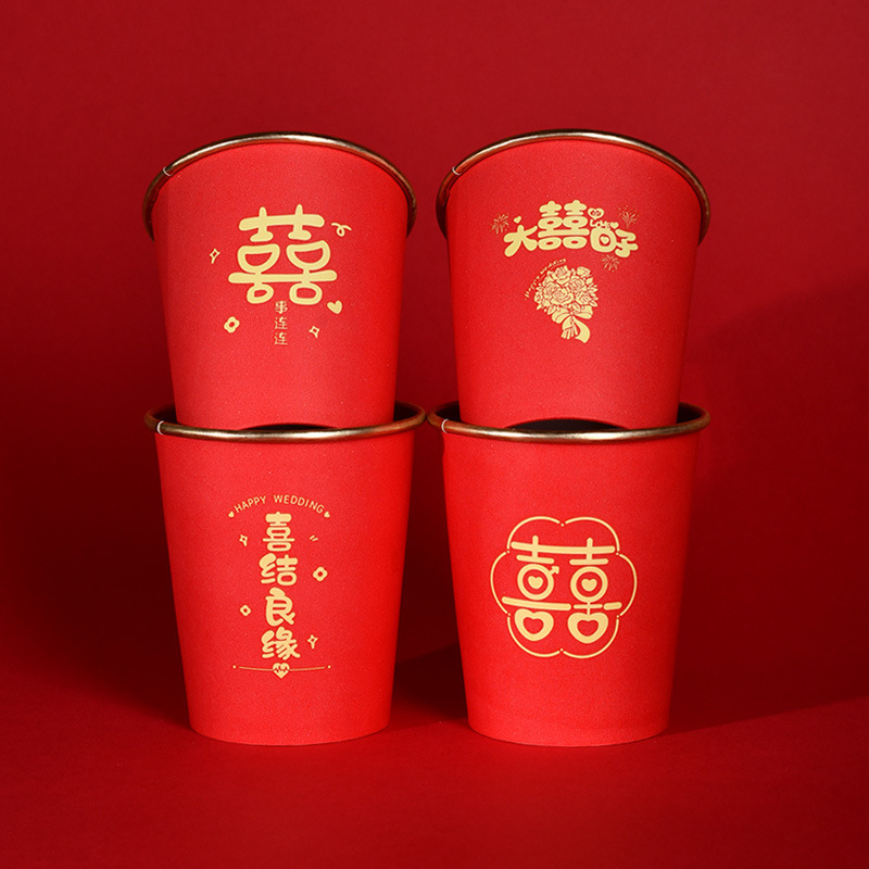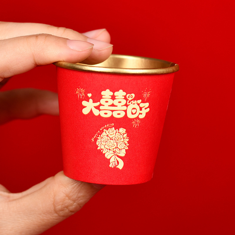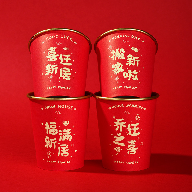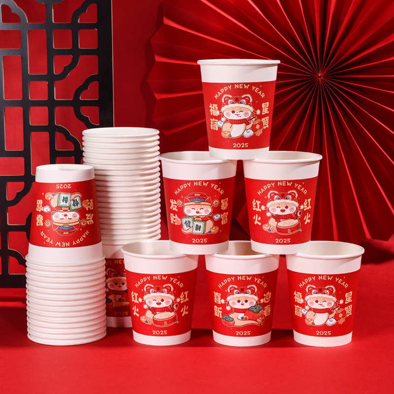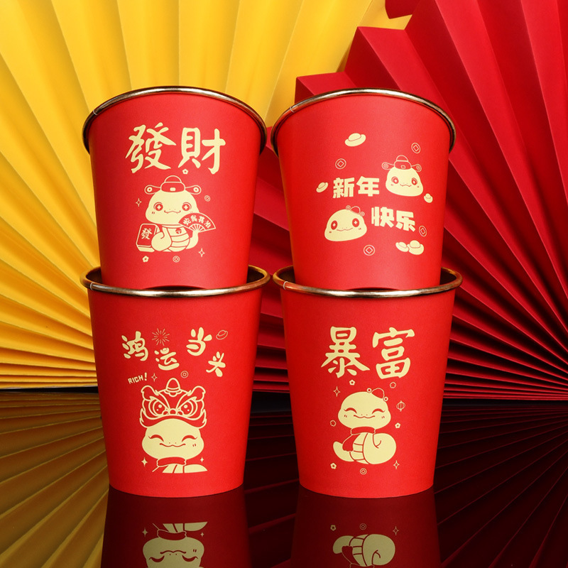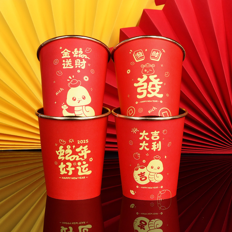2025年蛇年新年一次性纸杯过年喜庆家用杯子加厚金箔水杯春节喜杯