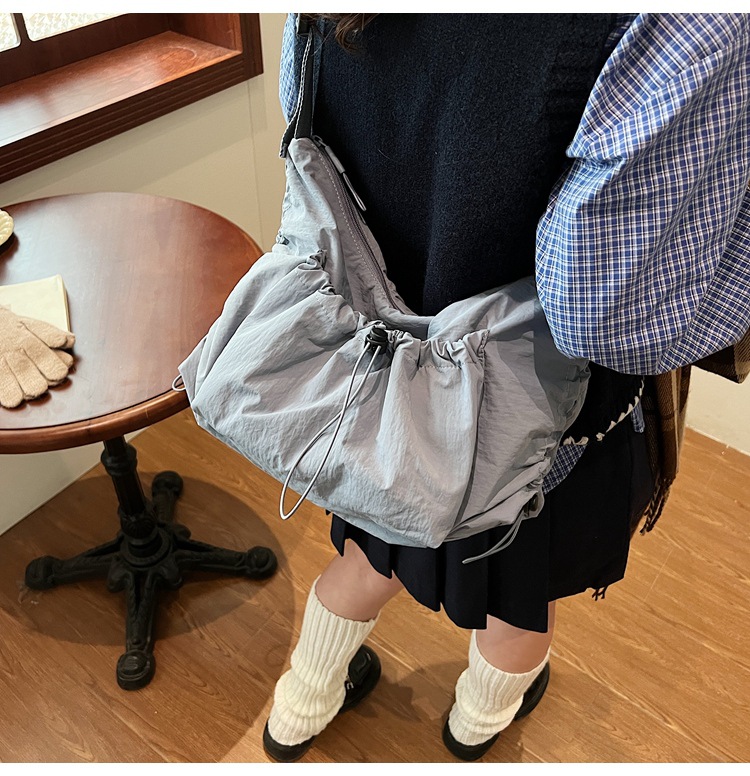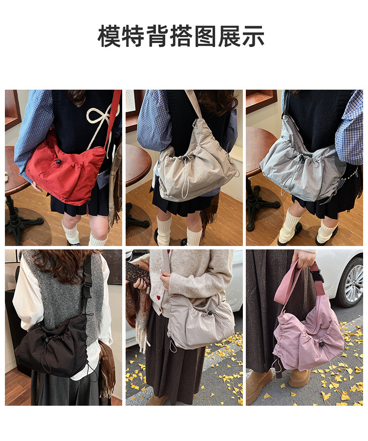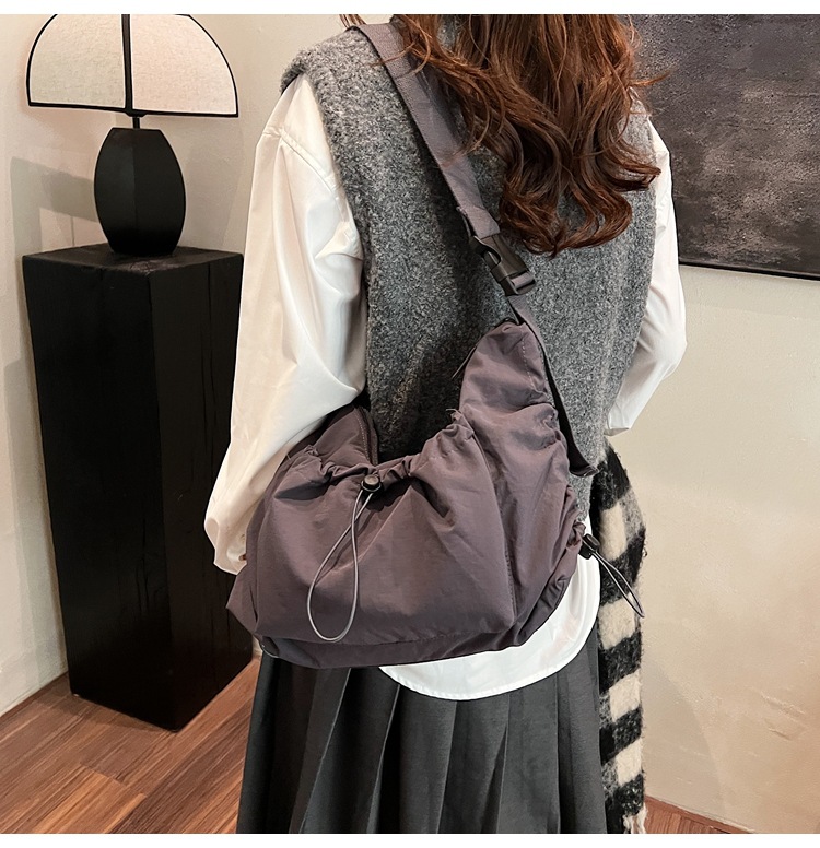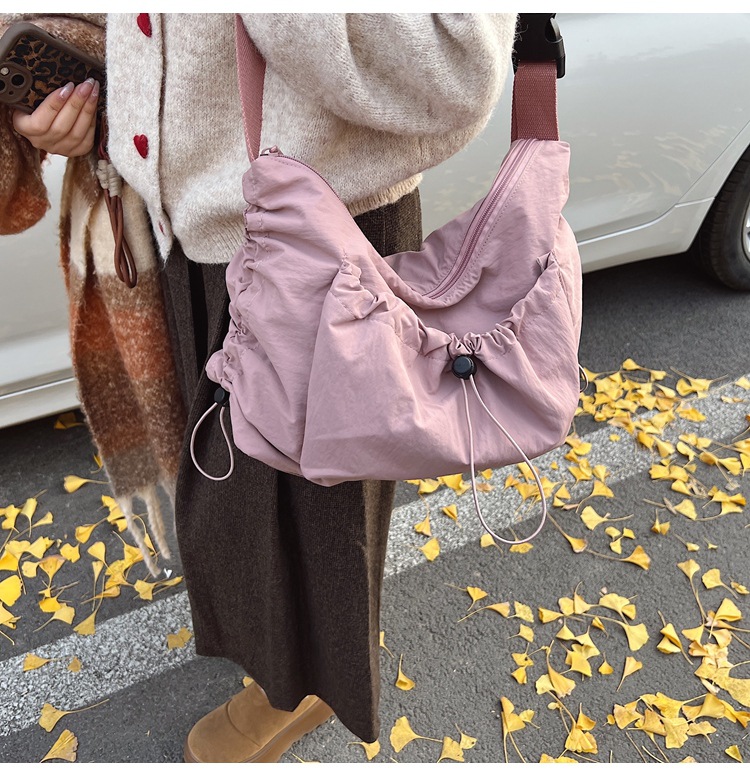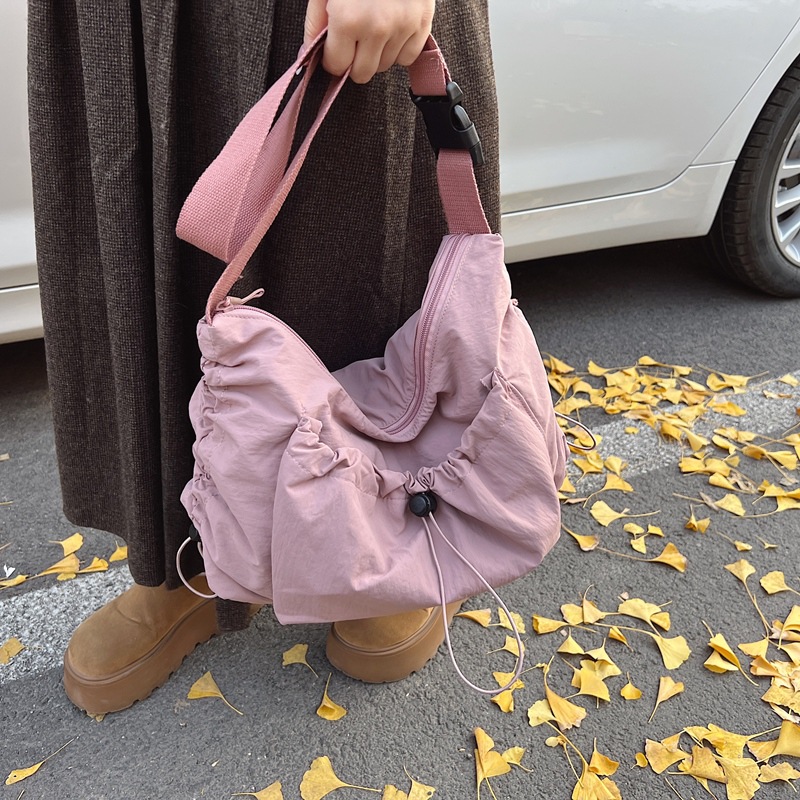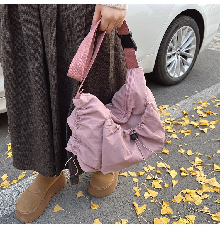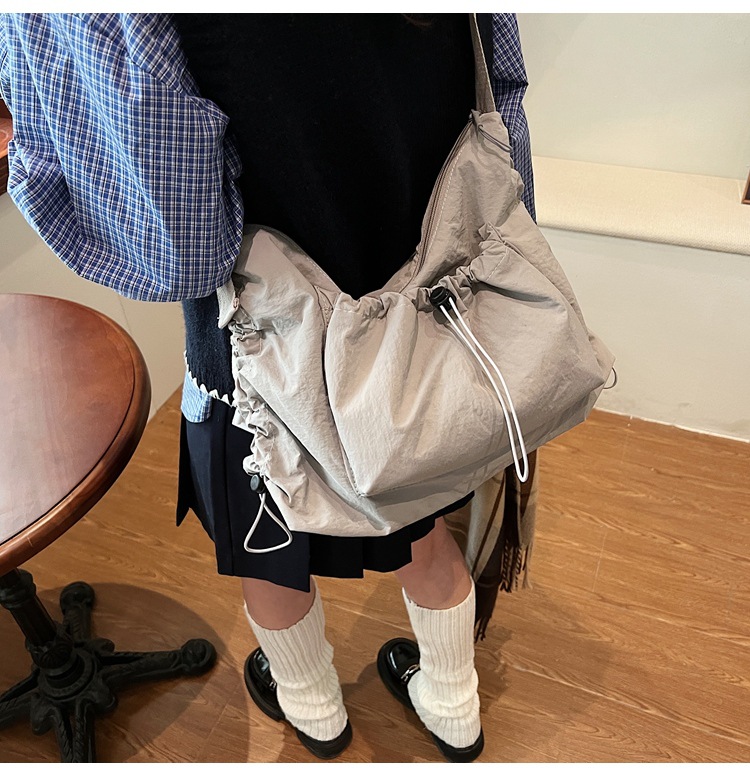 新款女士时尚流行褶皱包包大容量斜挎包设计感韩版学生上课单肩包