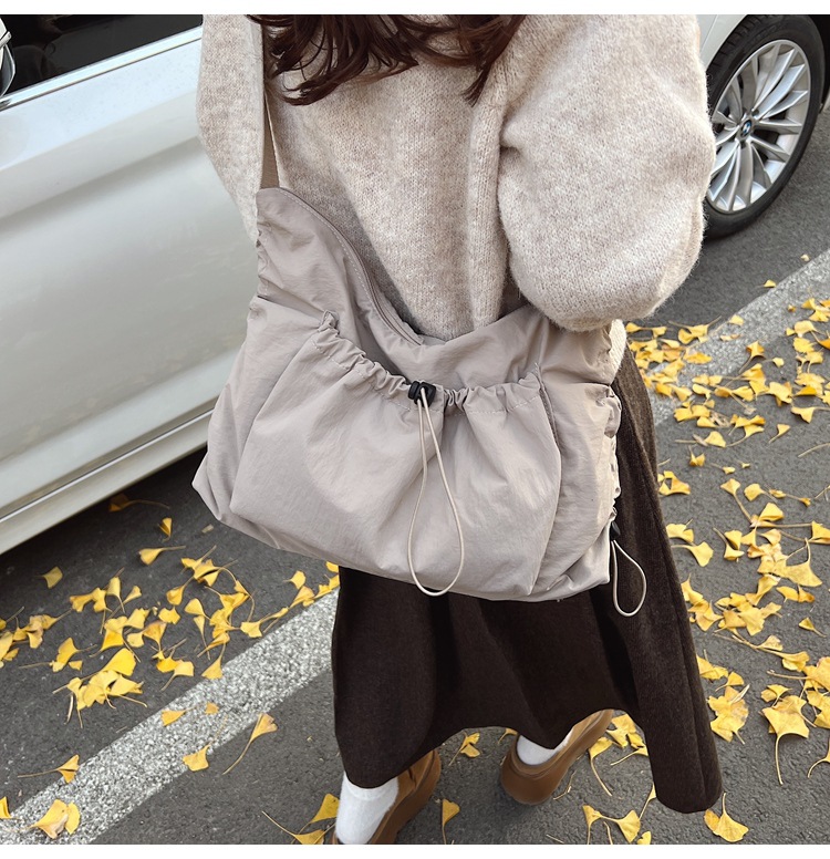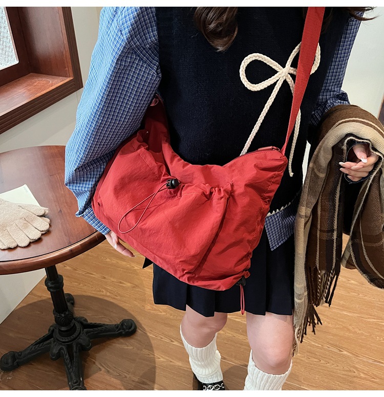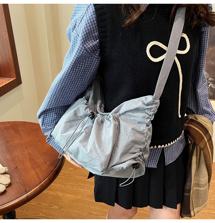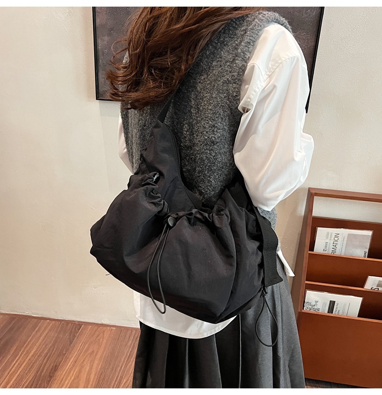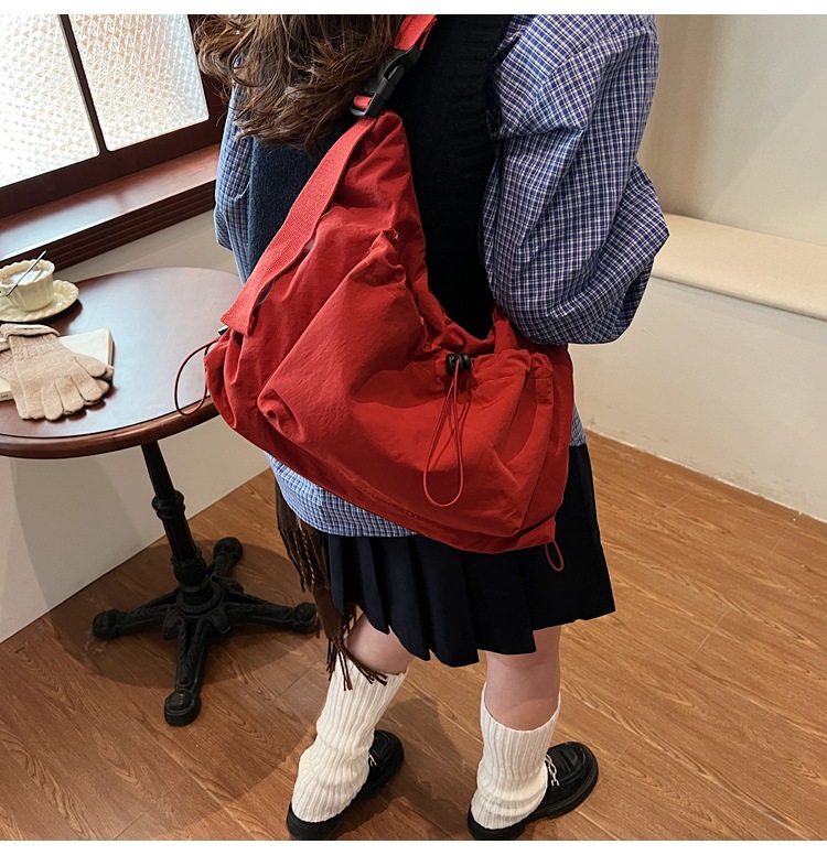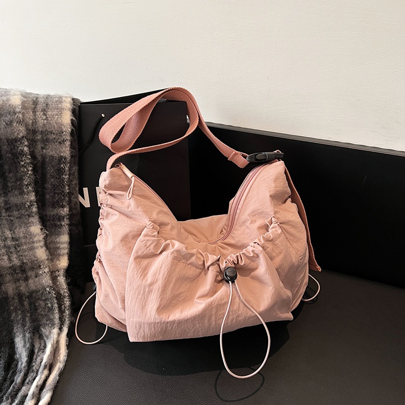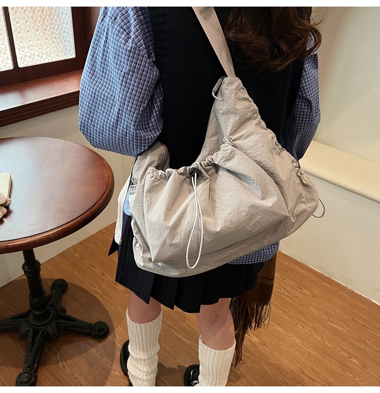 新款女士时尚流行褶皱包包大容量斜挎包设计感韩版学生上课单肩包