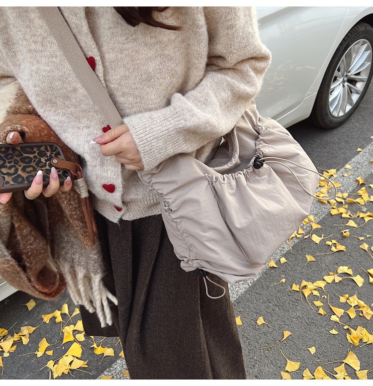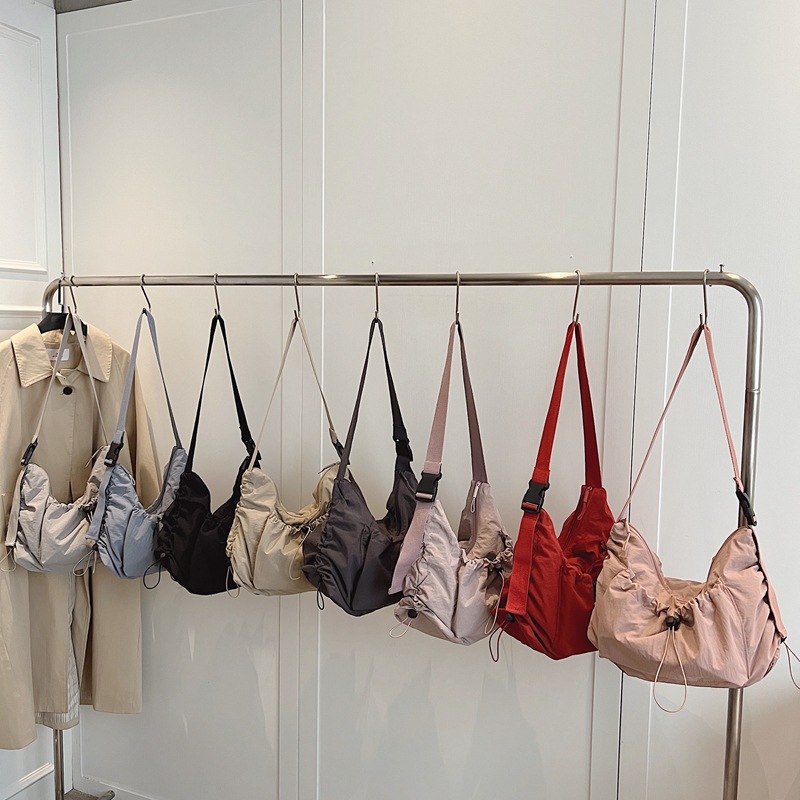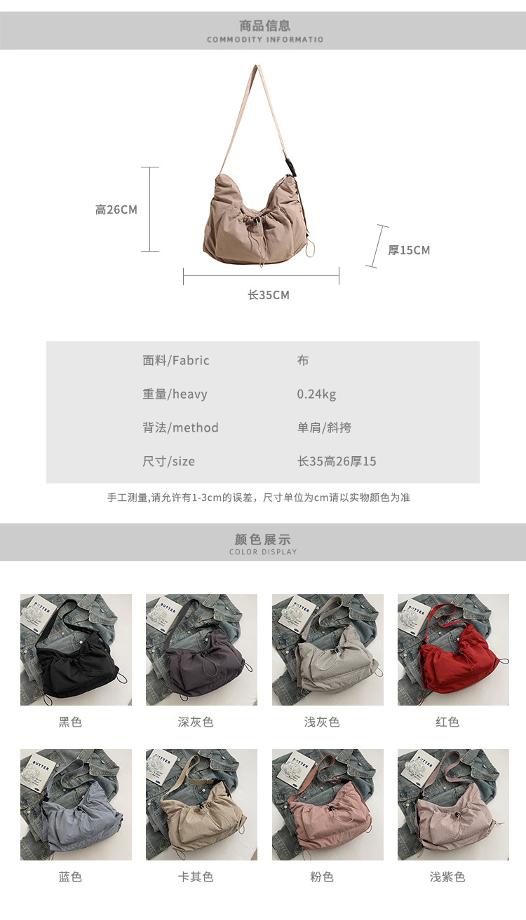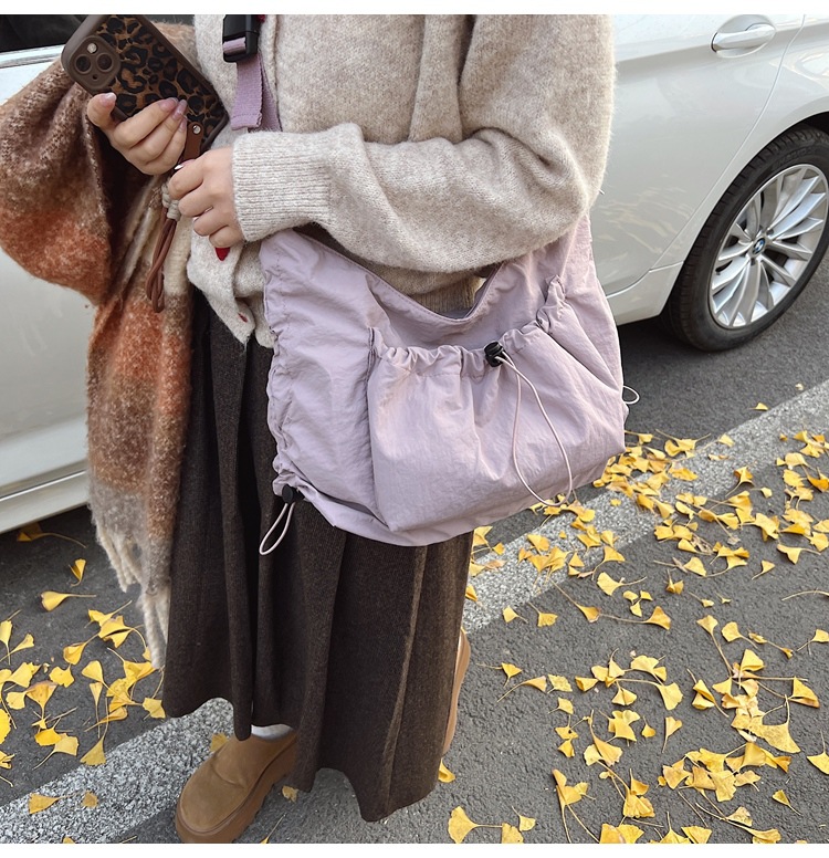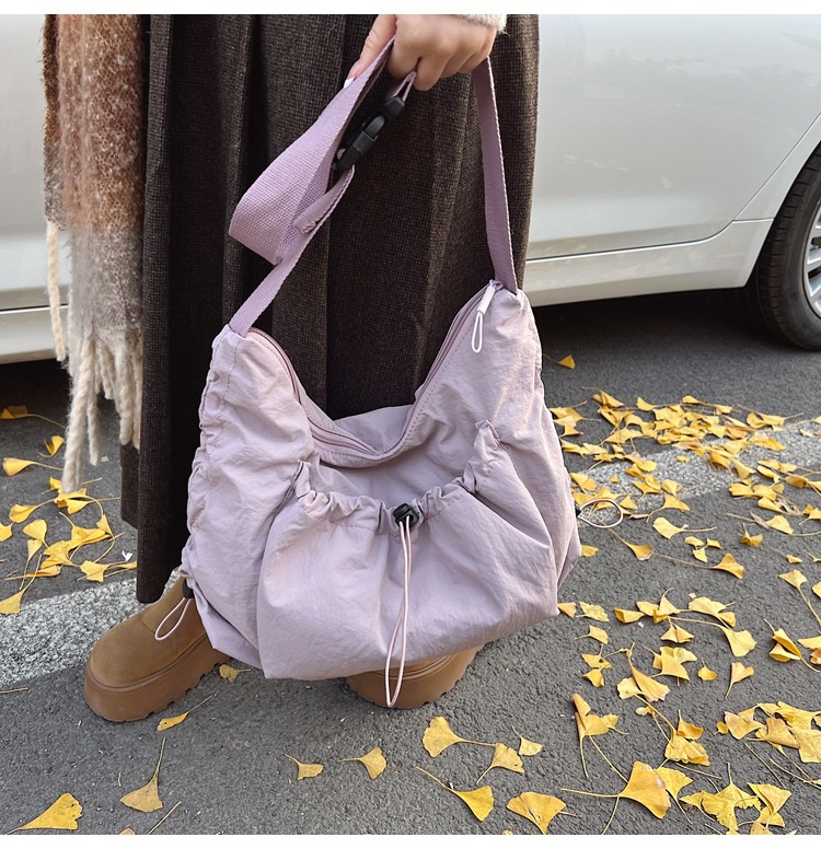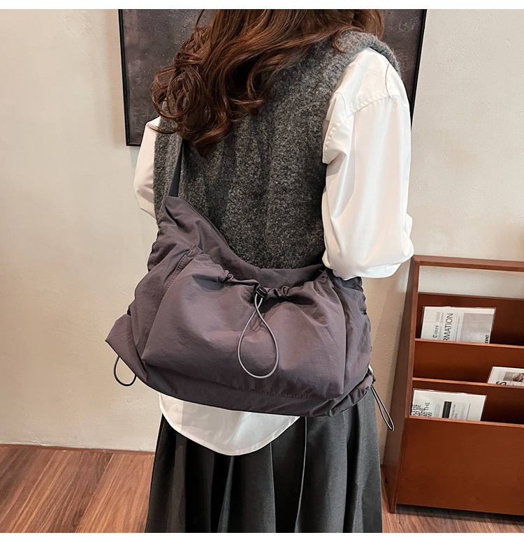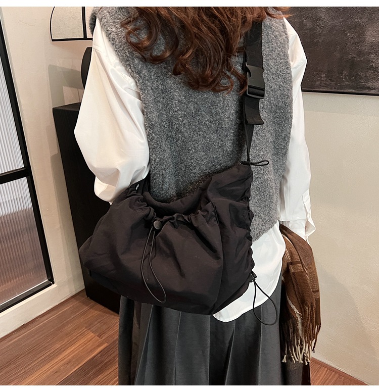 新款女士时尚流行褶皱包包大容量斜挎包设计感韩版学生上课单肩包