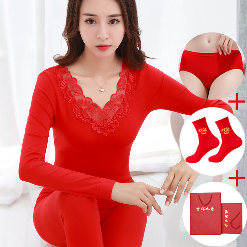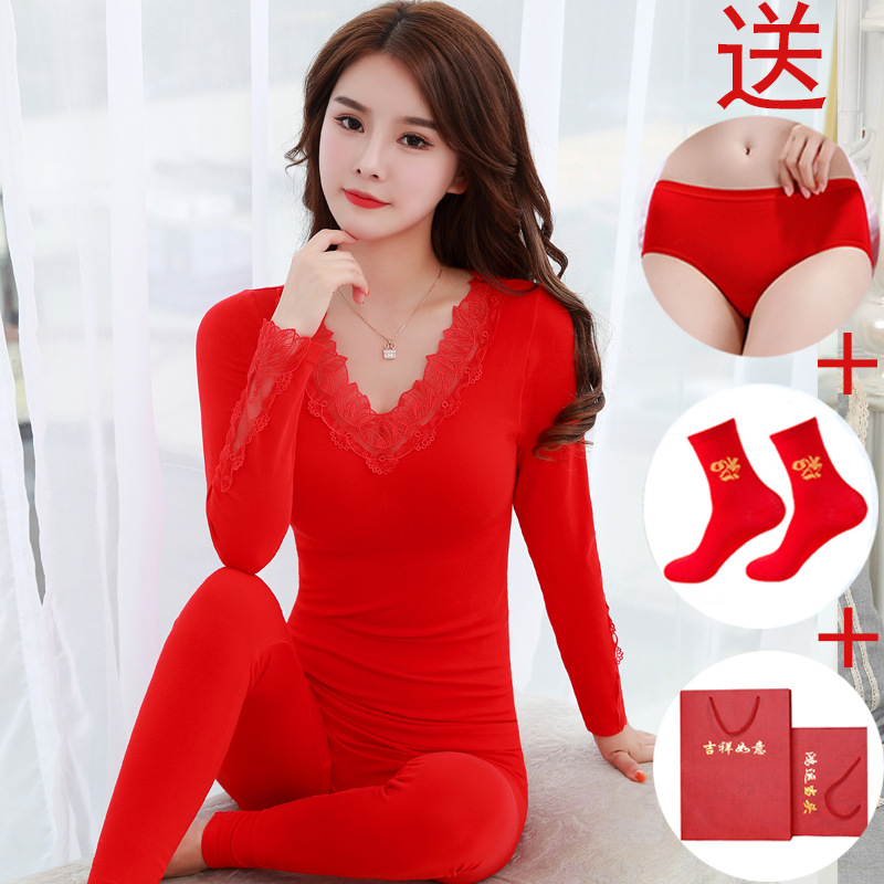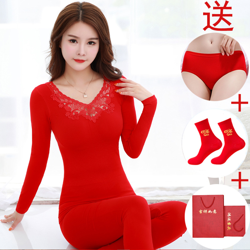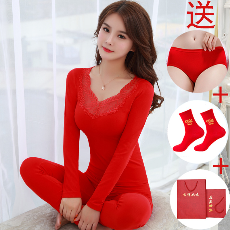 一件代发蛇年本命年大红色秋衣秋裤女士新娘结婚美体保暖内衣套装