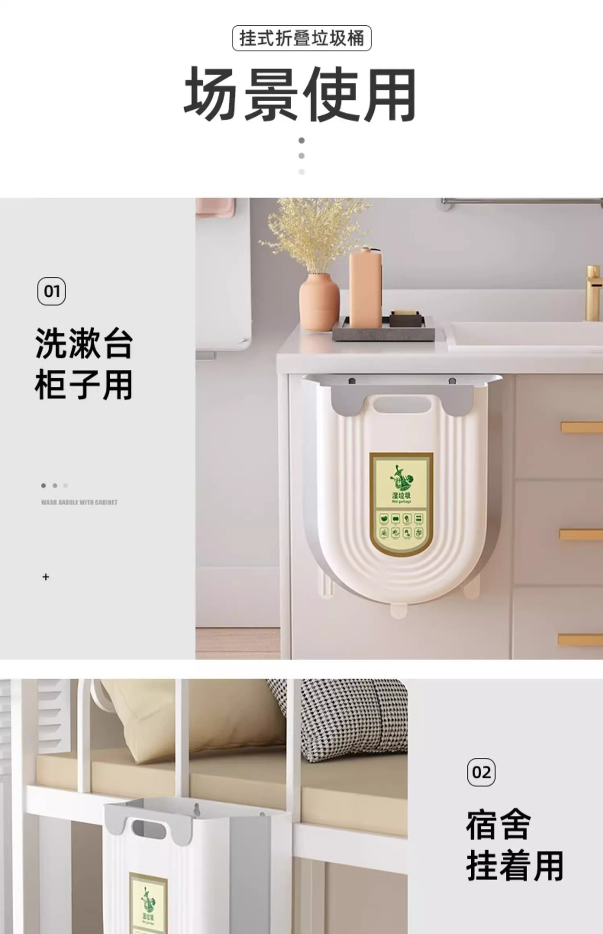 厨房垃圾桶壁挂式可折叠家用厨余橱柜门专用收纳桶卫生间收纳纸篓
