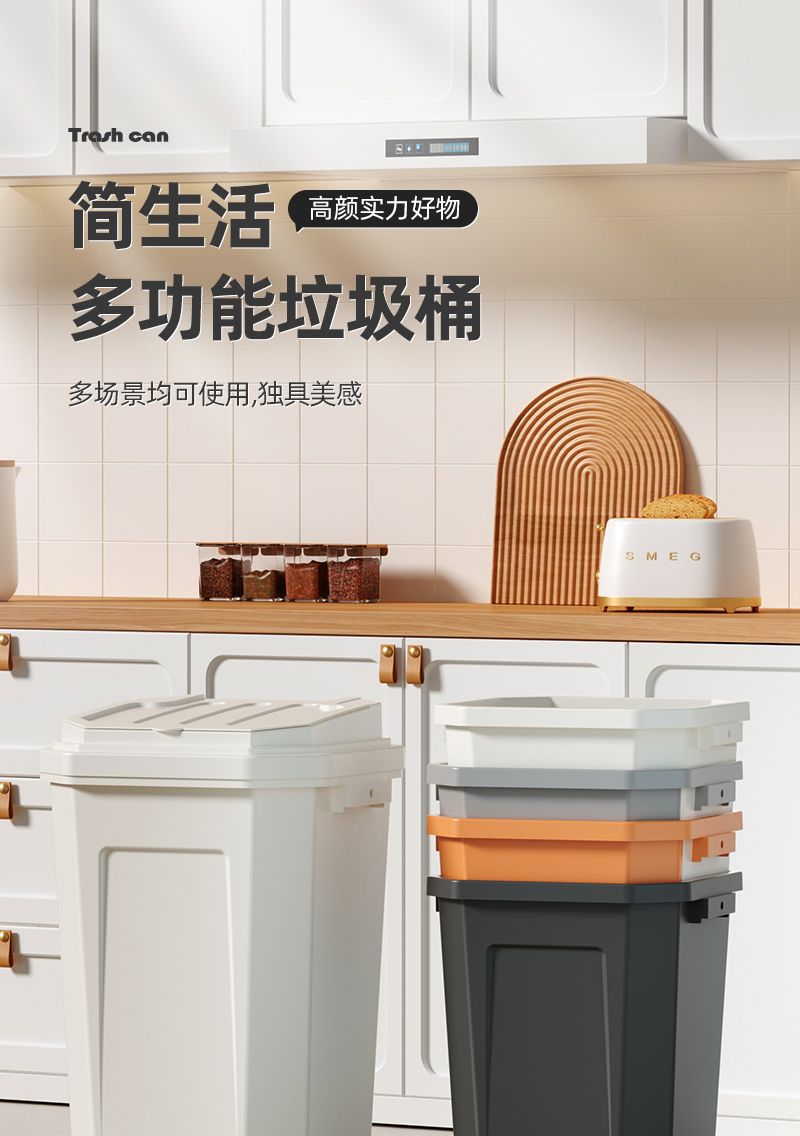 北欧垃圾桶大号厨房加大容量家用2024新款客厅加高超大餐饮商用