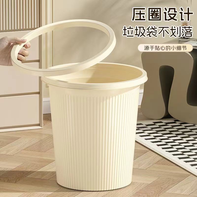 轻奢Ins风居家大号通用垃圾桶无盖条纹压圈纸篓宿舍格调收纳桶
