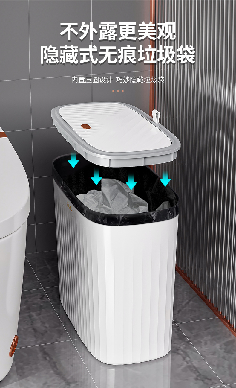 垃圾桶厕所卫生间按压式2023新款家用卫生桶夹缝带盖子小筒窄专用