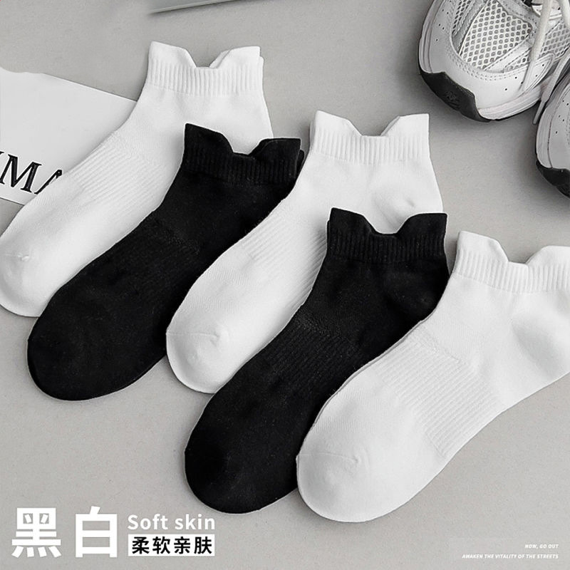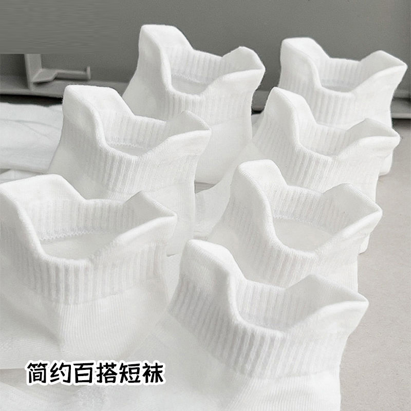 袜子男白色运动短筒袜春夏款双提耳男士纯色低帮黑色夏季男短袜