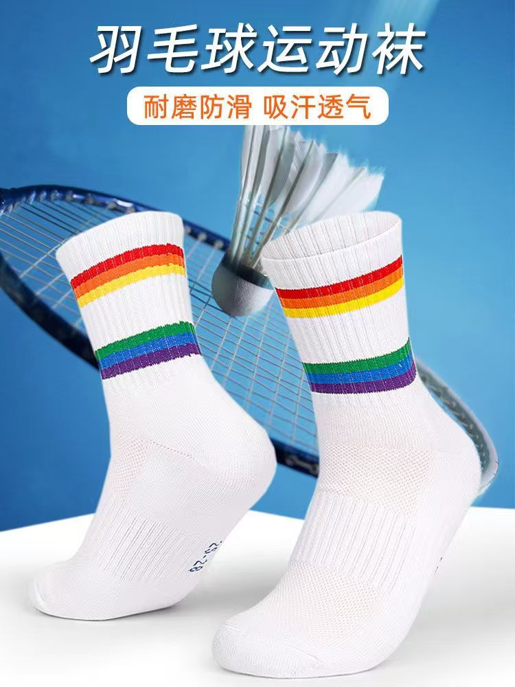 跨境羽毛球袜网眼透气羽毛球网球袜中筒运动袜男女运动袜加厚毛圈