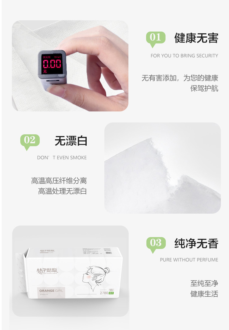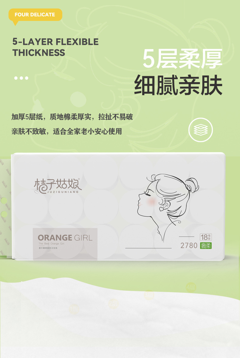 桔子姑娘卷纸4.8斤18大卷家用卫生纸厕所纸巾批发实惠装代发