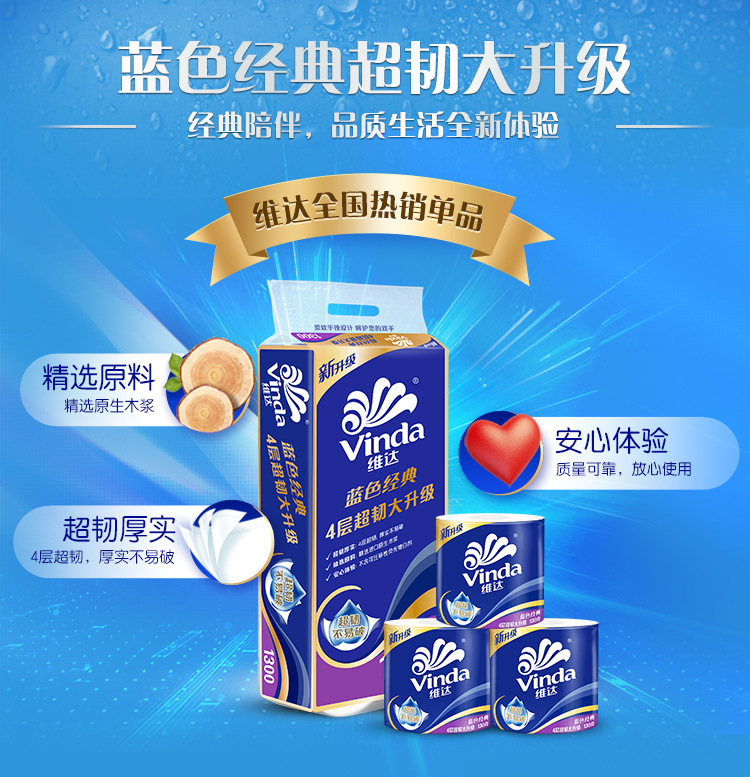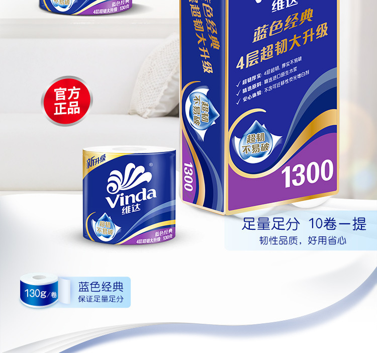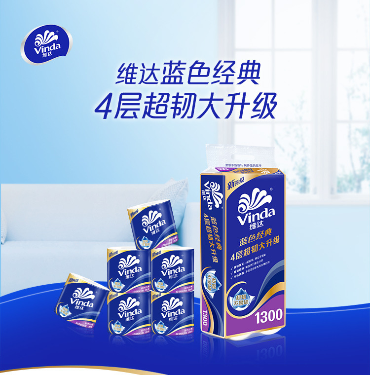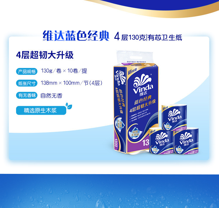 维达卷纸卫生纸4层130克实惠装有芯大卷家用厕所纸巾卫生间手纸