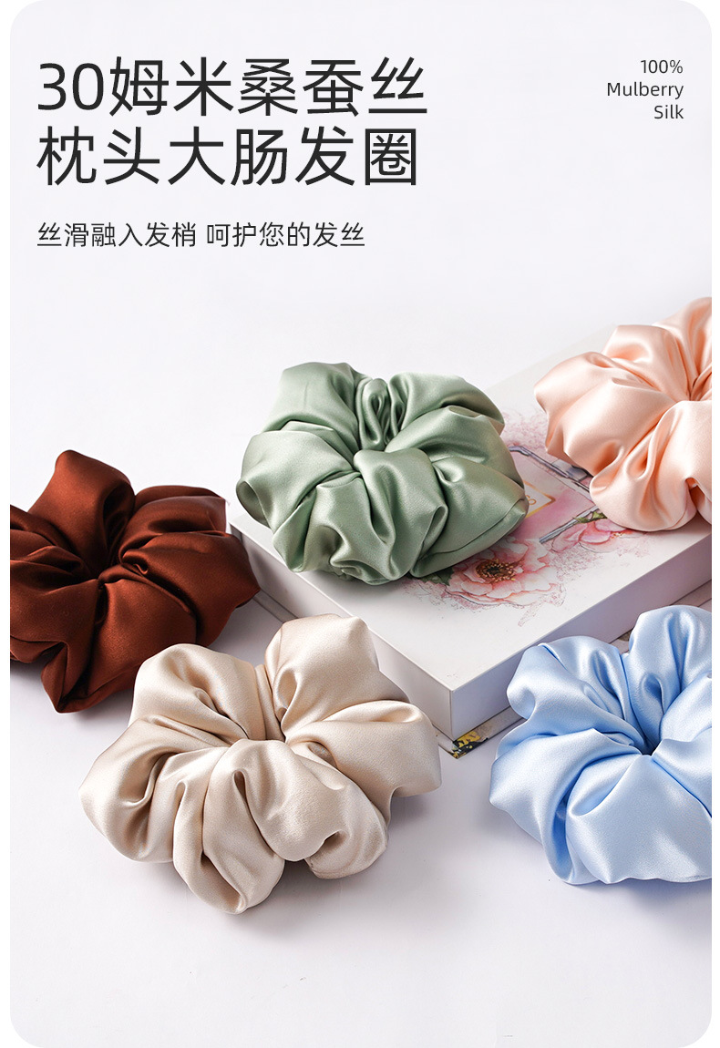 真丝大肠发圈双面桑蚕丝高级感填充发绳网红扎头发超大猪大肠法式