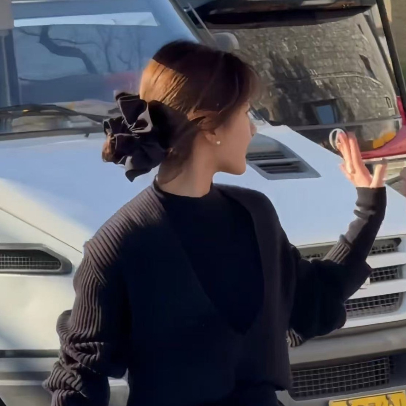 赵露思同款黑色大肠发圈简约百搭丸子头盘发发绳女2024新款高级感