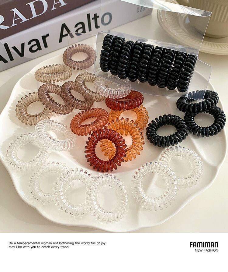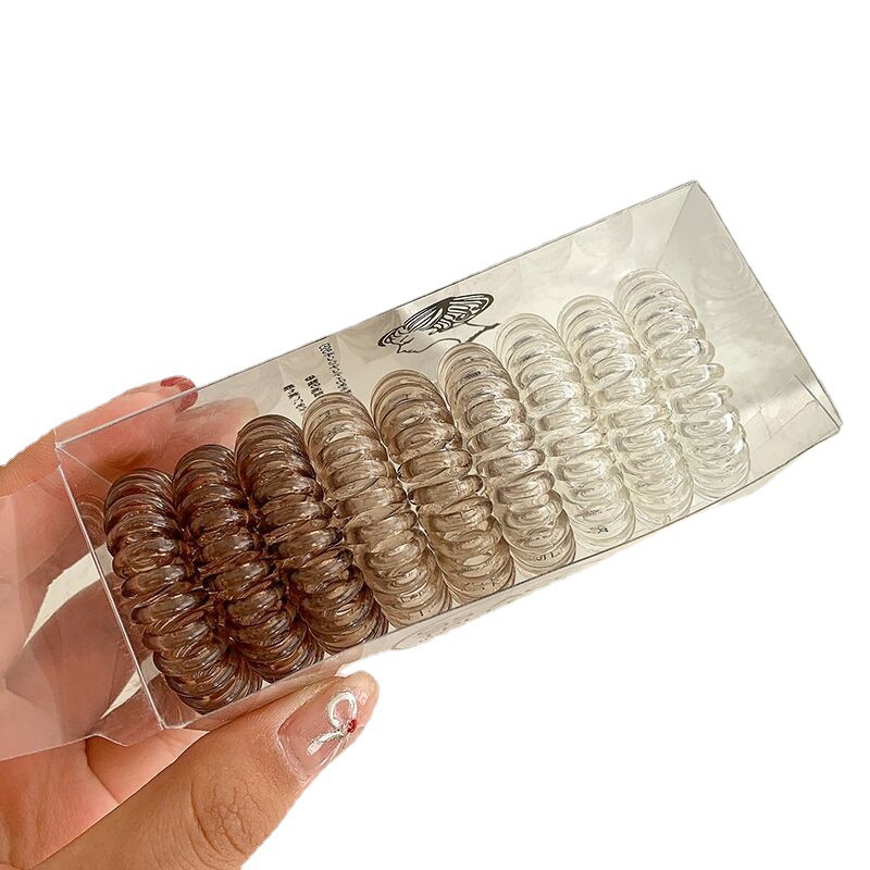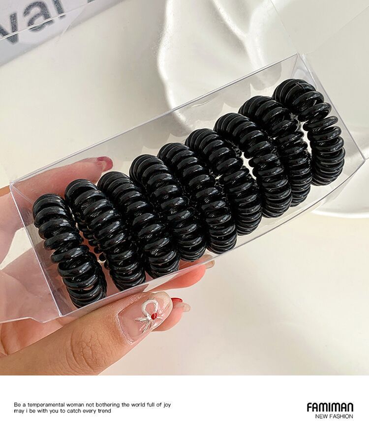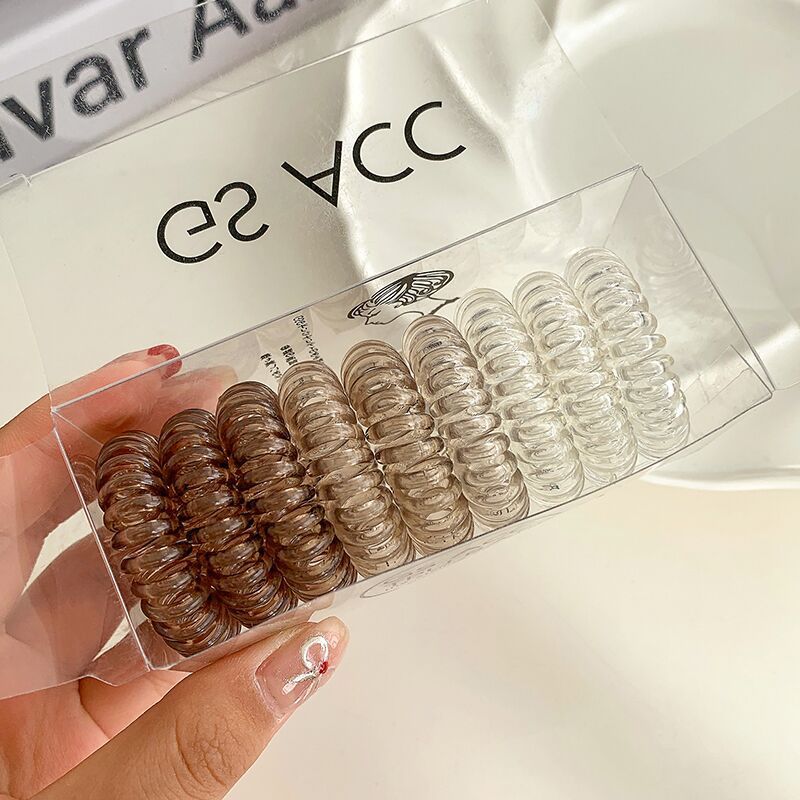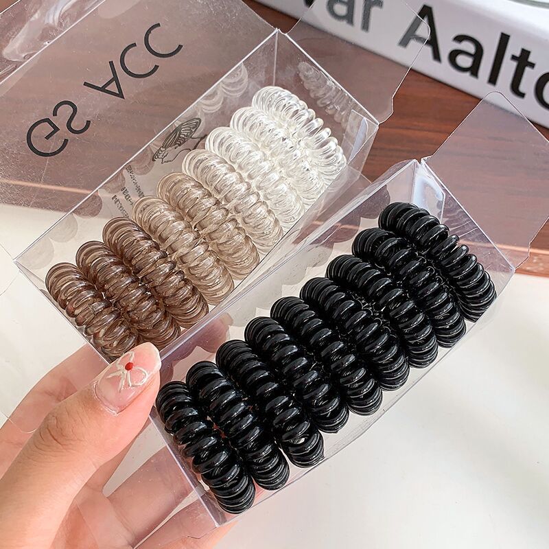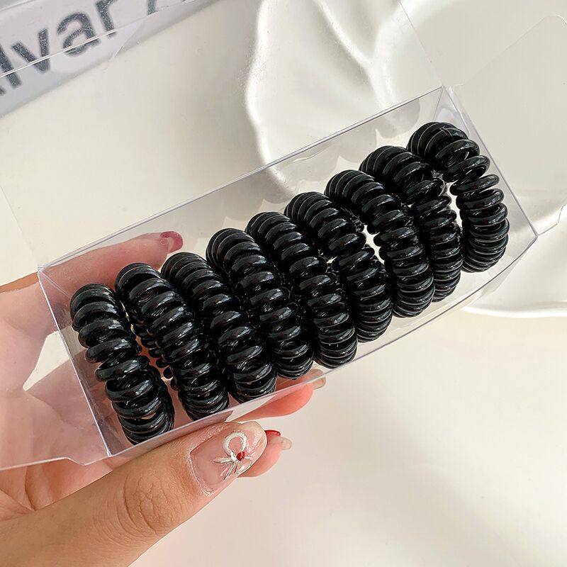 9条装~渐变色电话线发圈盒装百搭黑色高弹力女发饰简约不伤发头饰