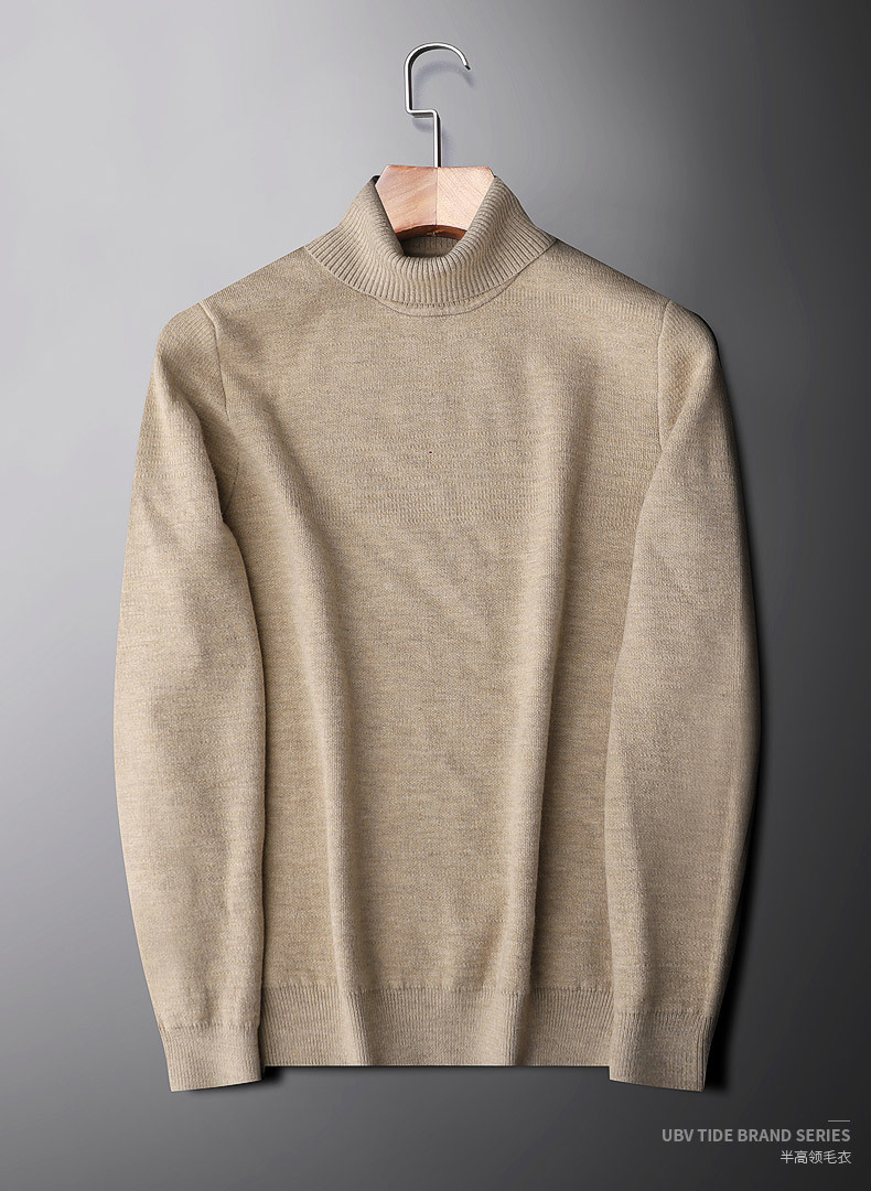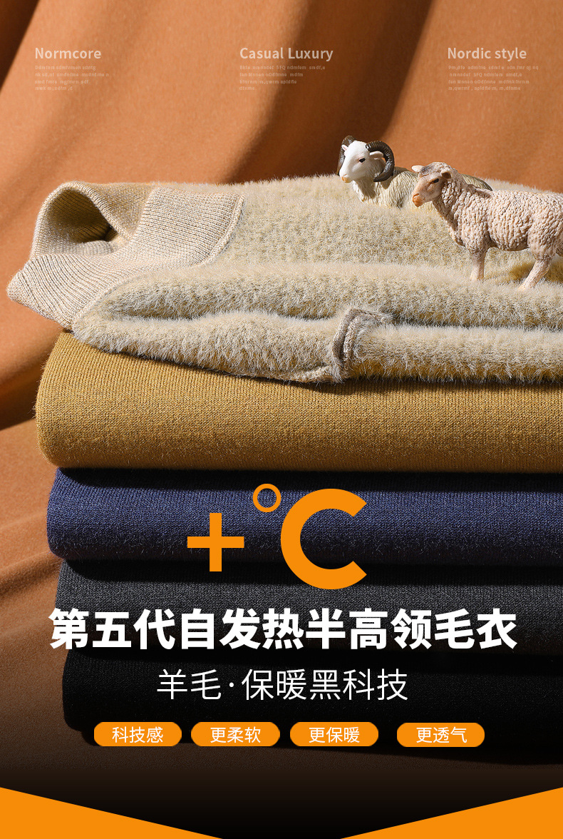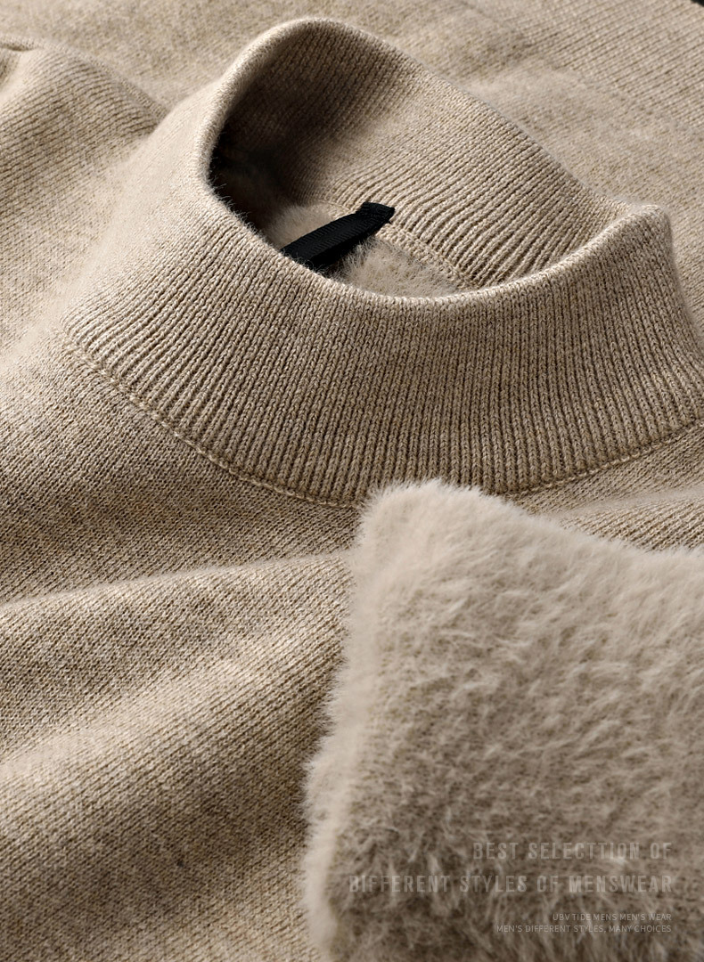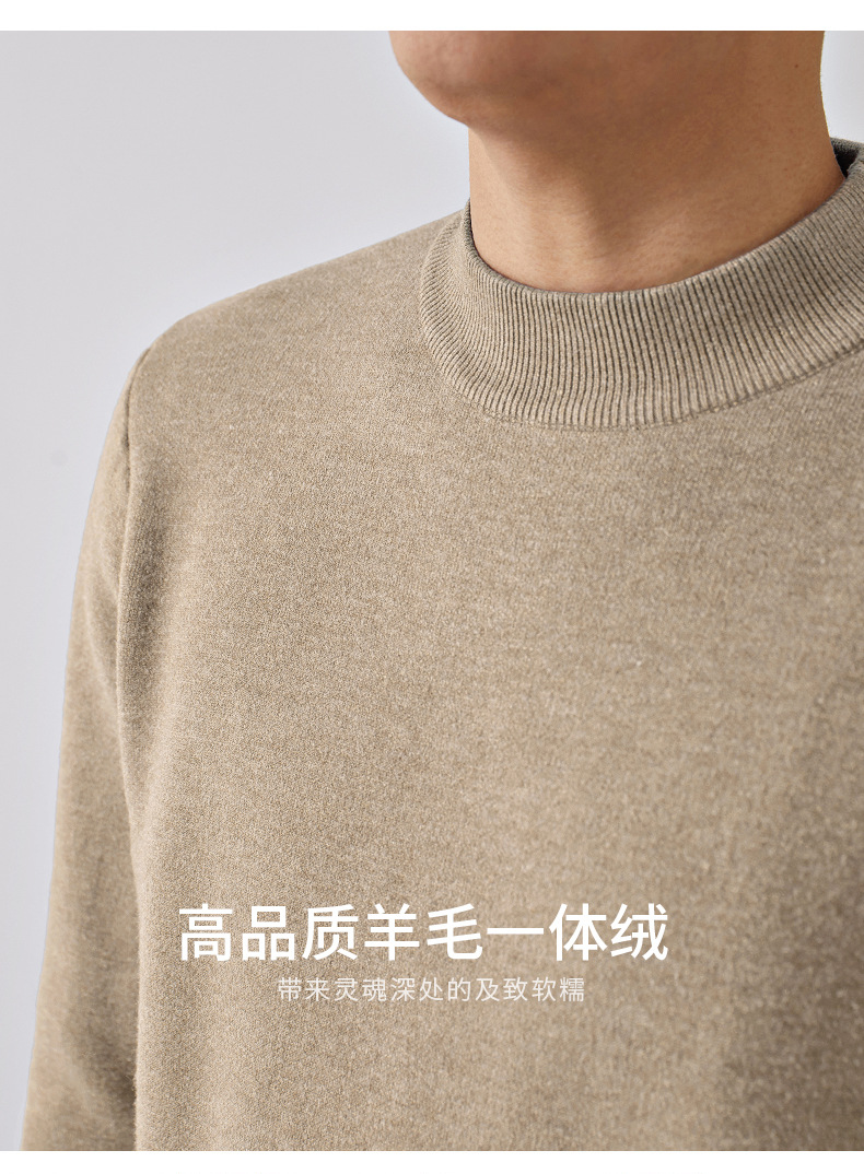轻商务加绒羊毛衫一体绒半高领毛衣男秋冬2023加厚保暖针织衫1688