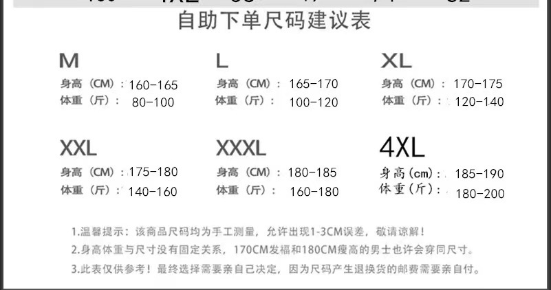 | 190/4XL 推荐180-200斤 | USD $0.0 | 5028 piece available |