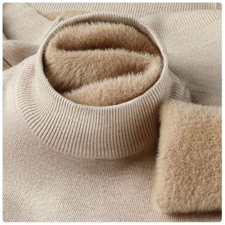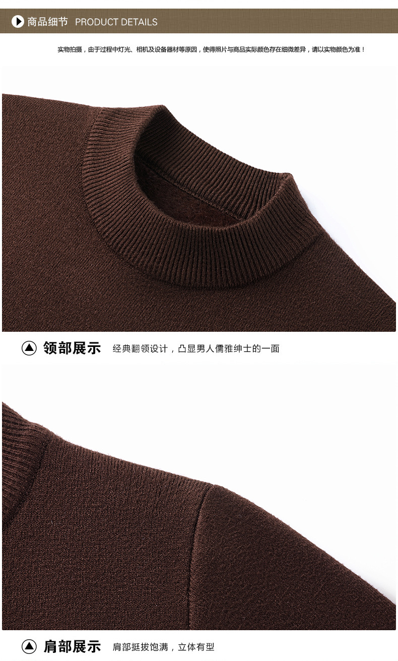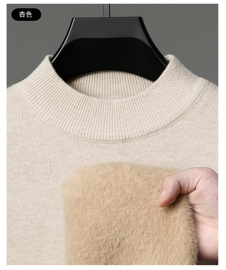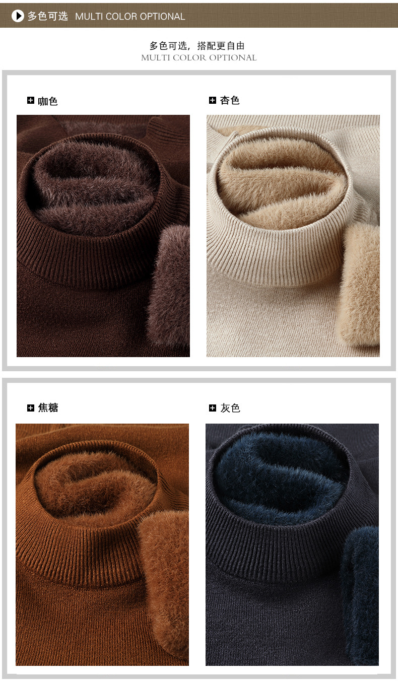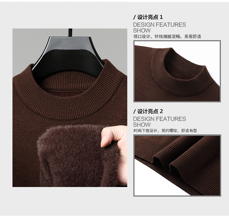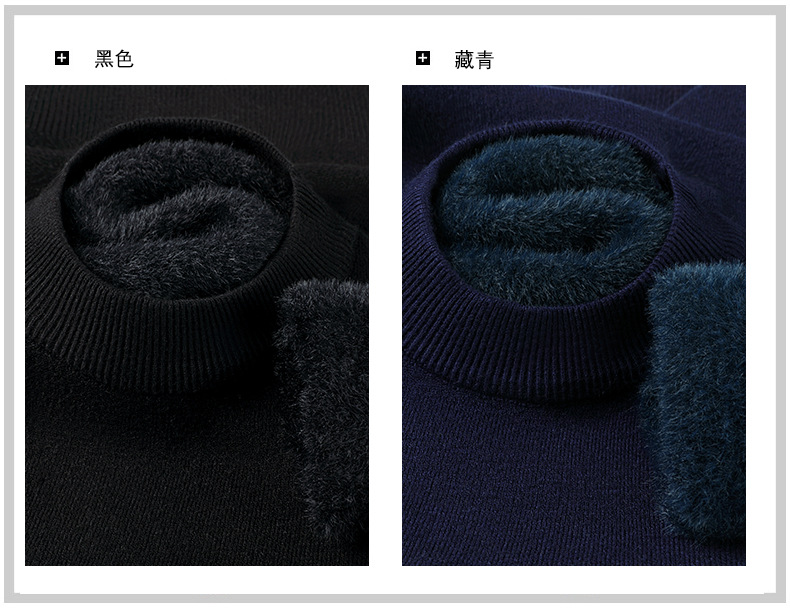 冬季新品男士羊毛衫加绒一体绒长袖男士毛衣半高领保暖百搭毛衣男