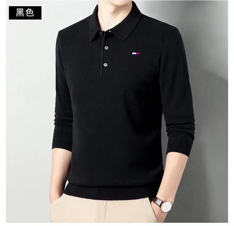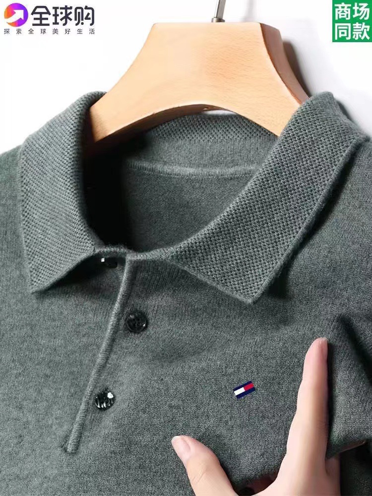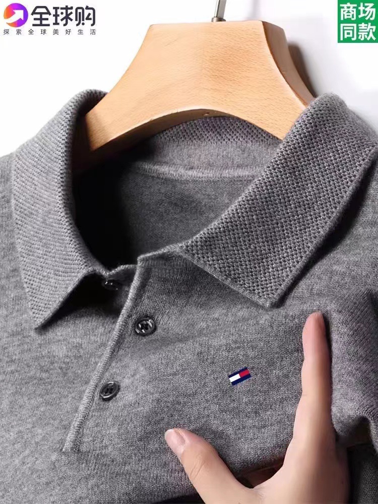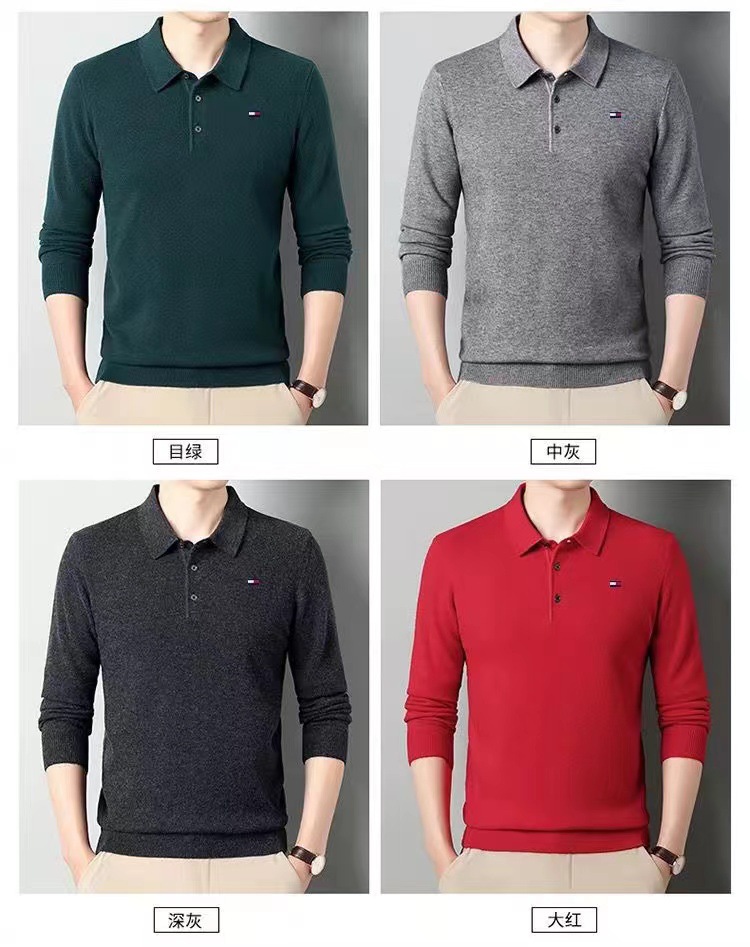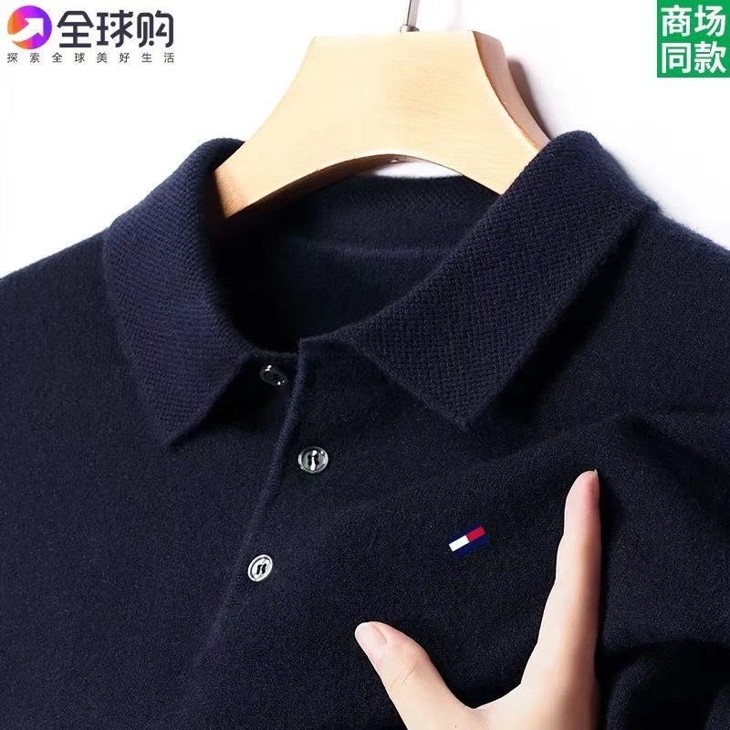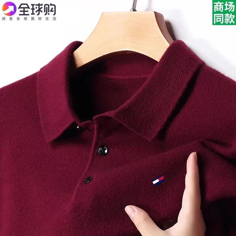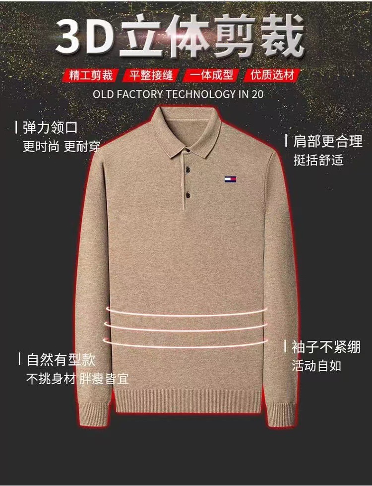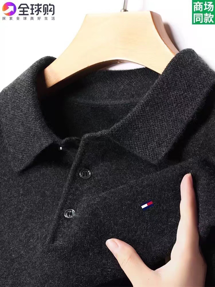 汤米tommy羊毛衫男士加肥加大码保暖翻领打底针织衫羊绒衫毛线衣