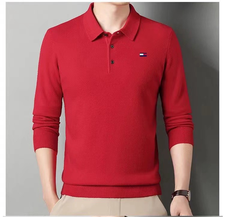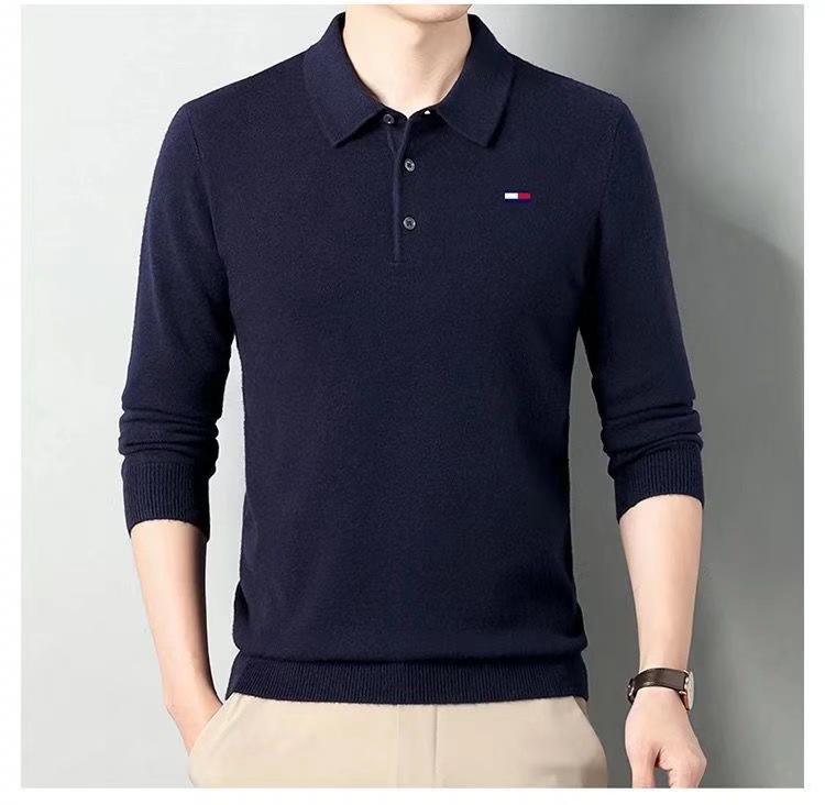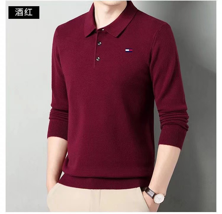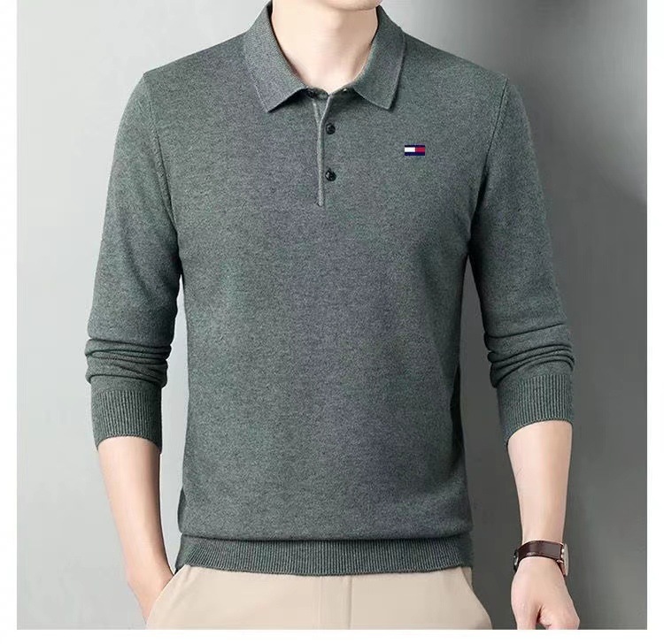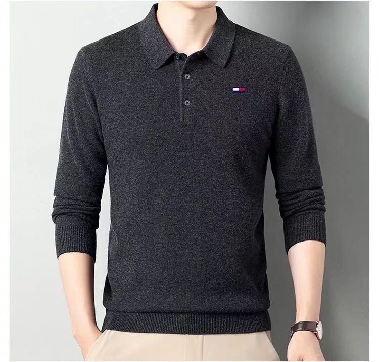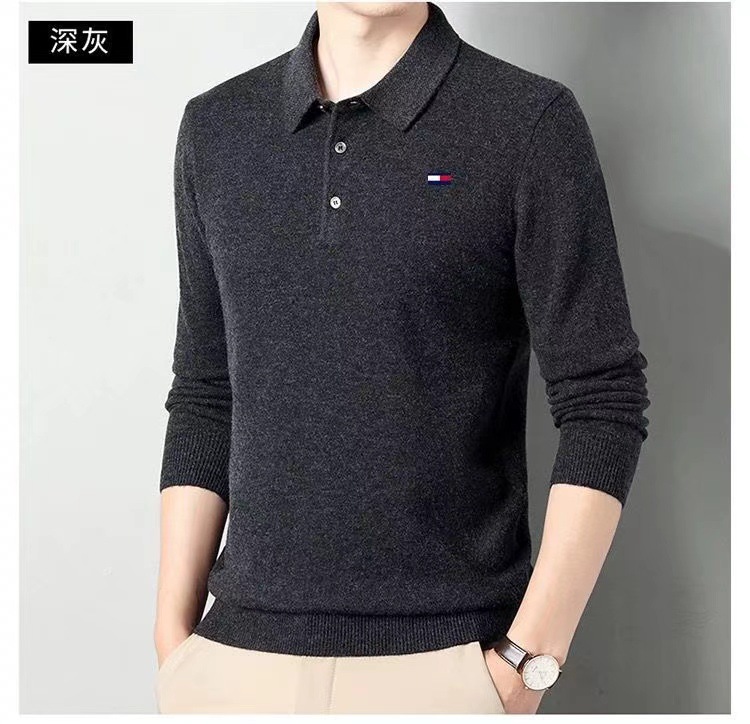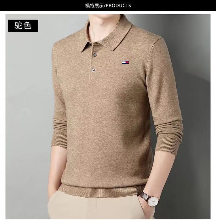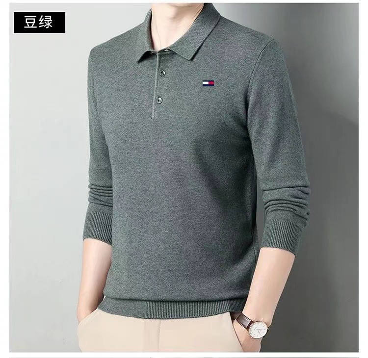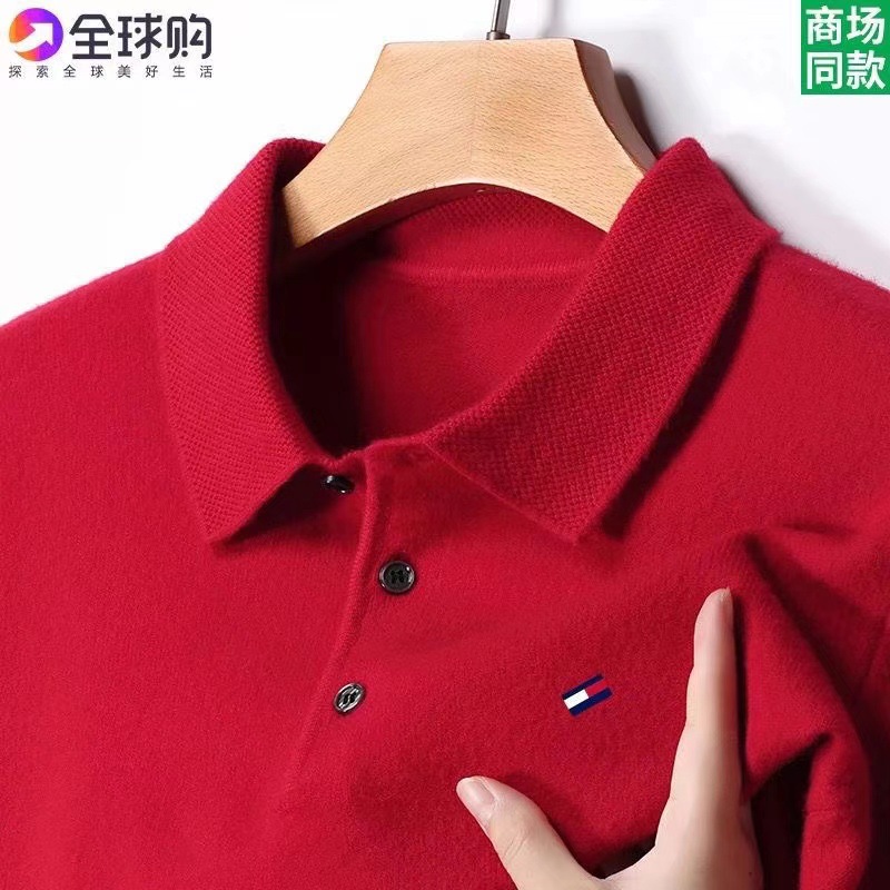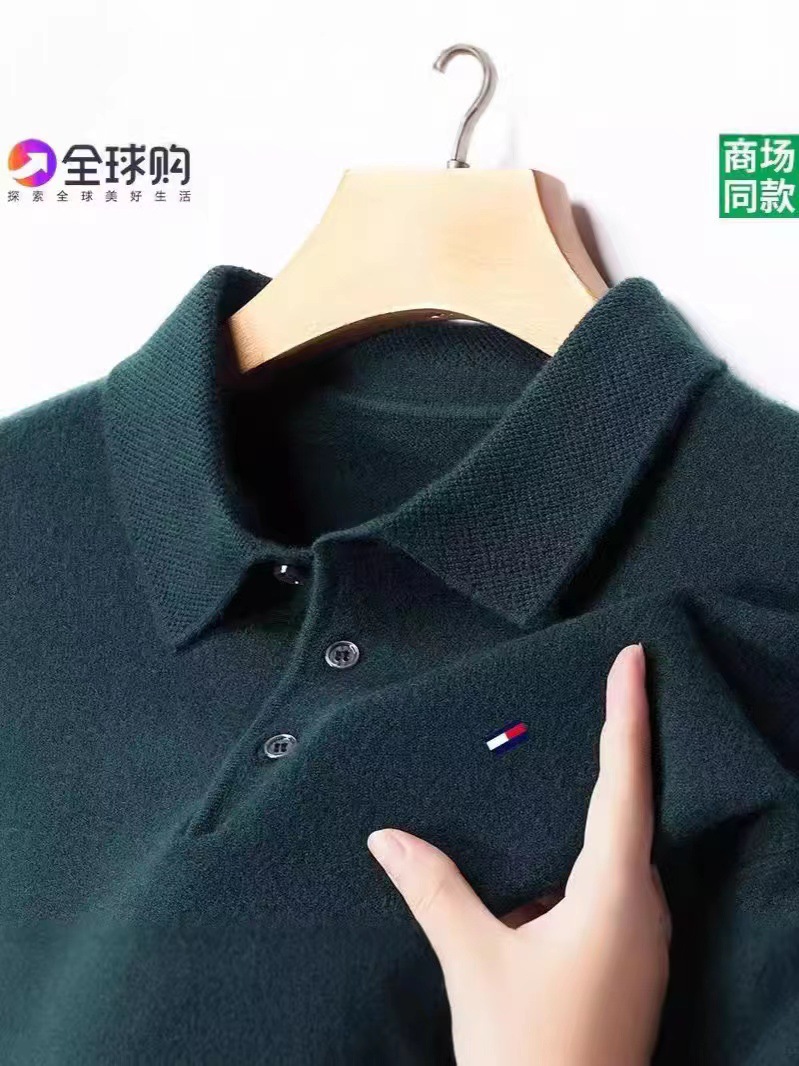 汤米tommy羊毛衫男士加肥加大码保暖翻领打底针织衫羊绒衫毛线衣