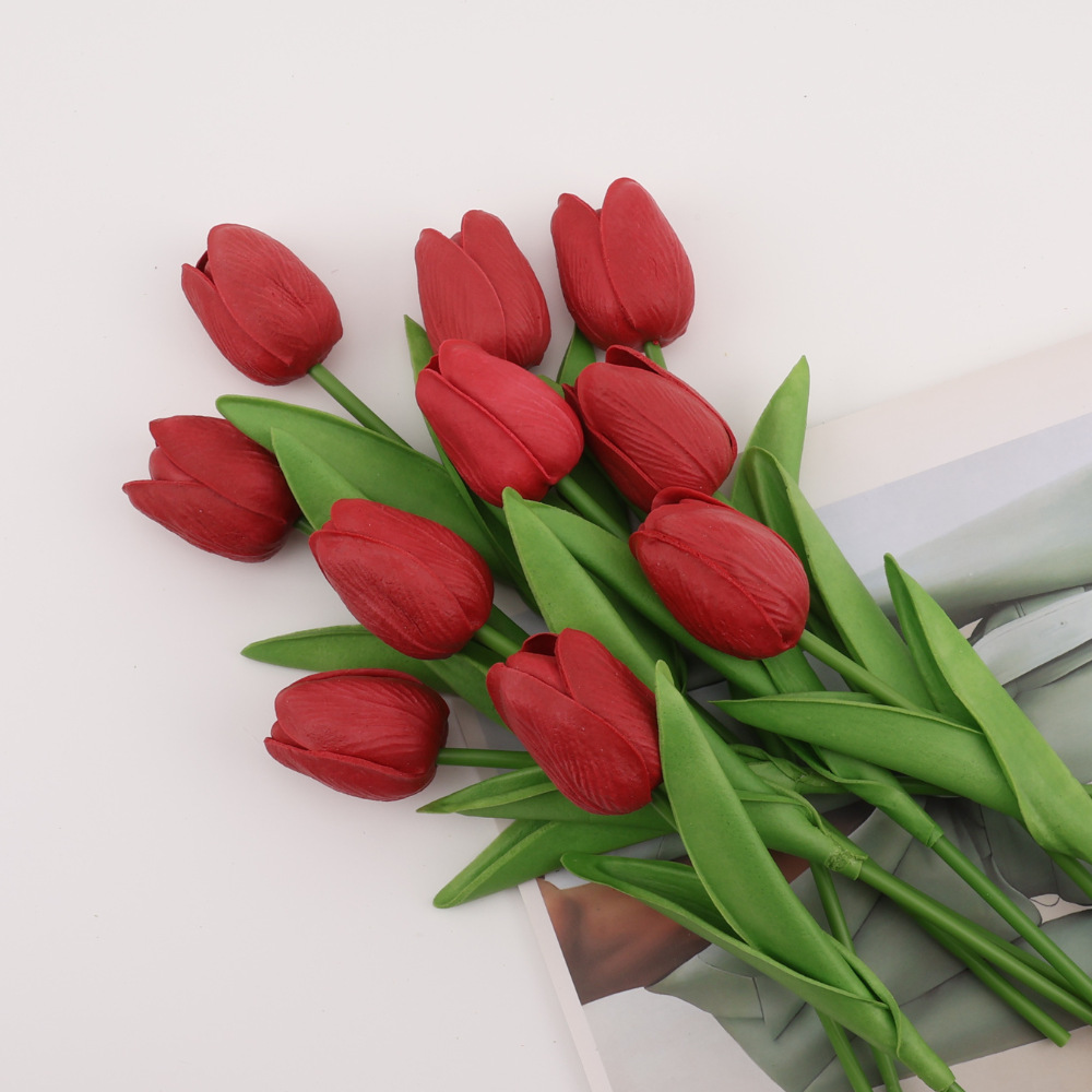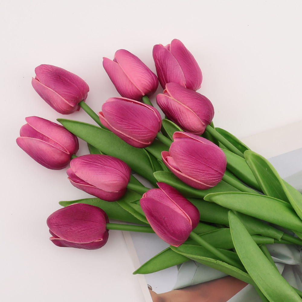 跨境亚马逊仿真花湿感郁金香花束家居PU假花摆件婚庆婚礼装饰布置