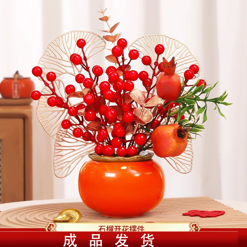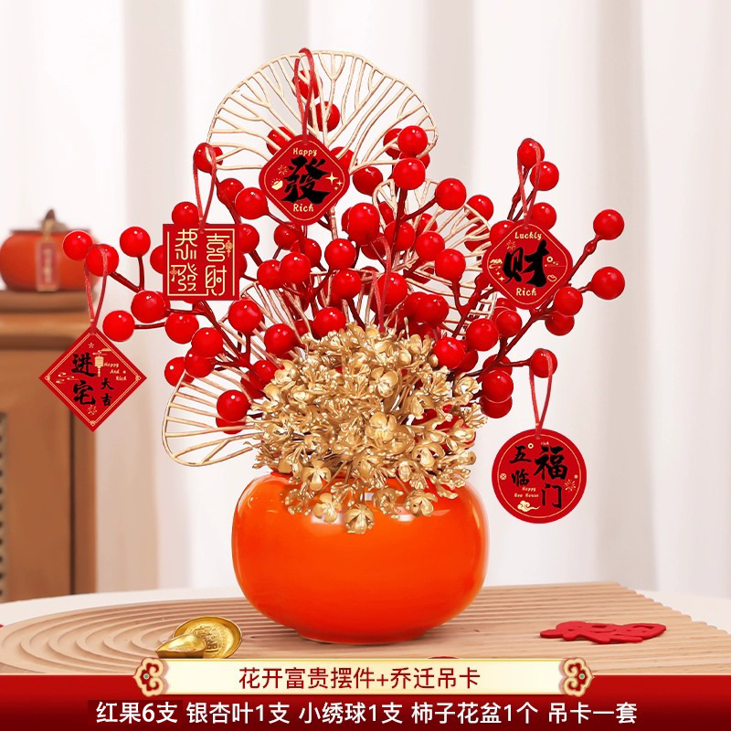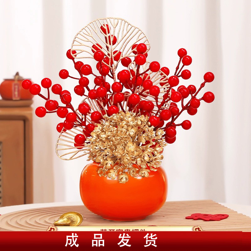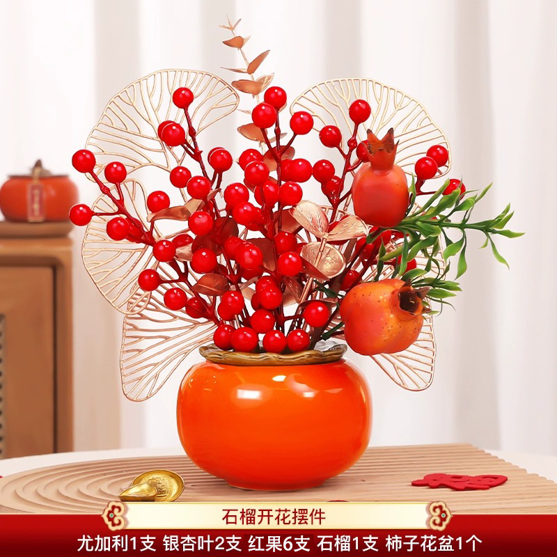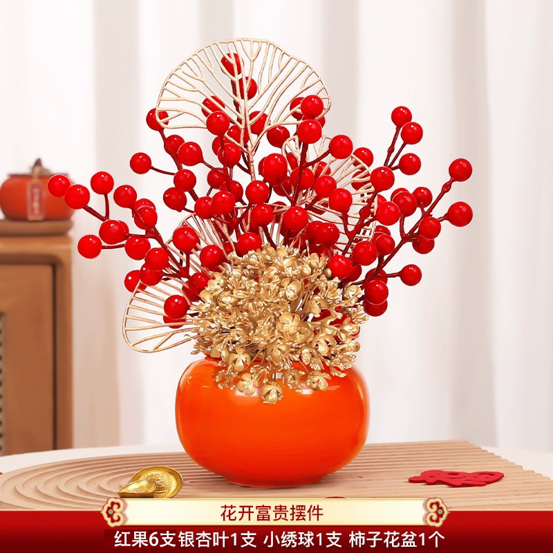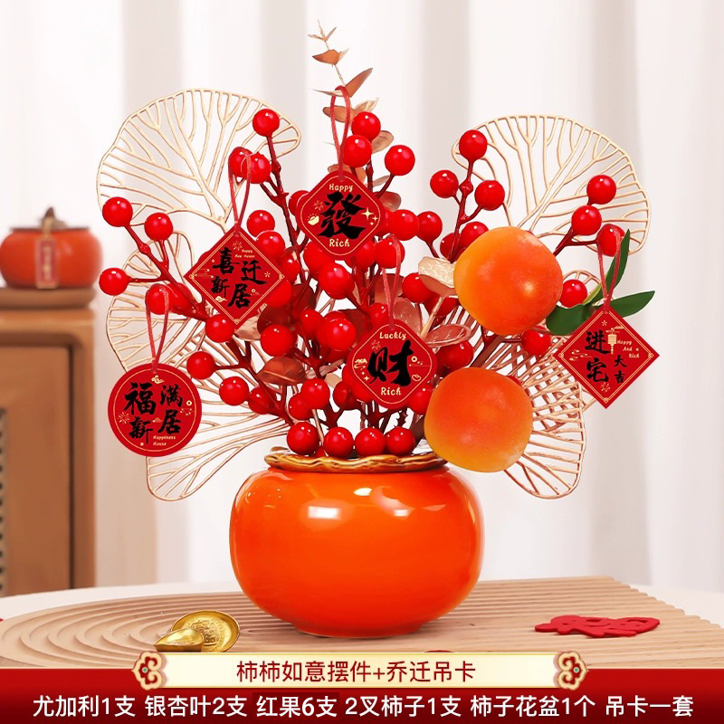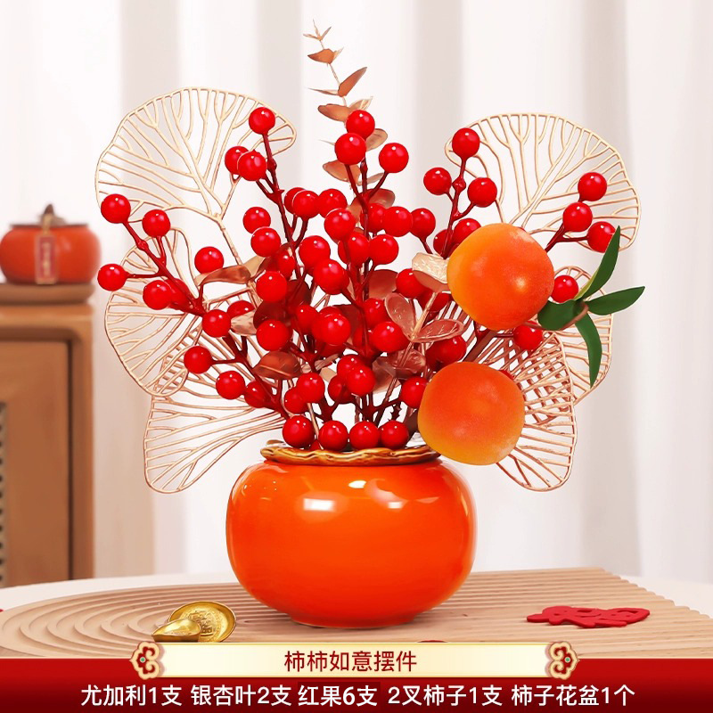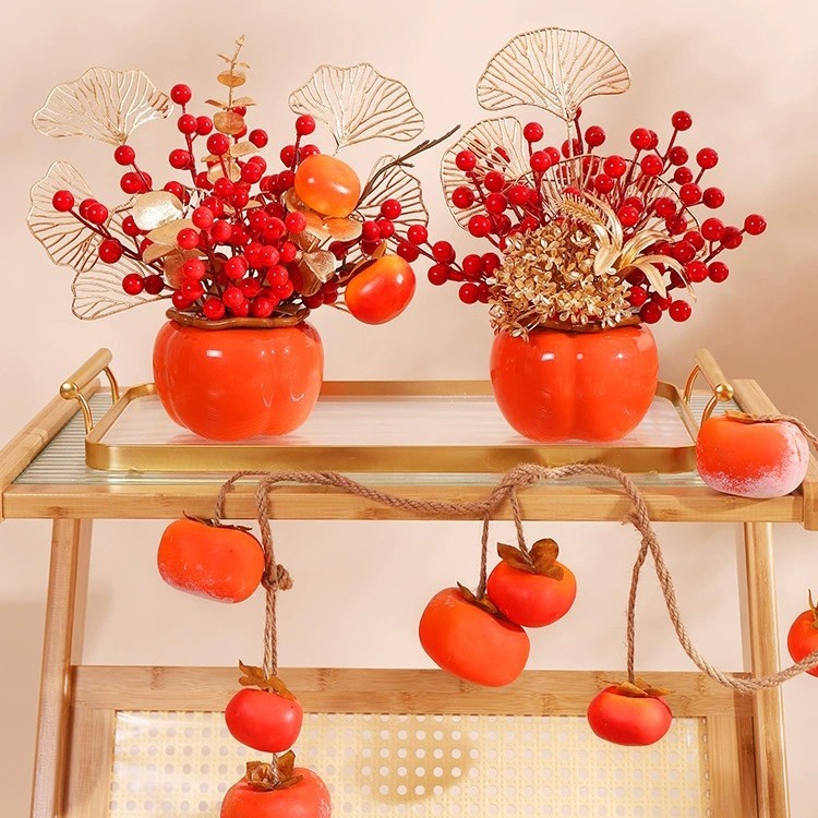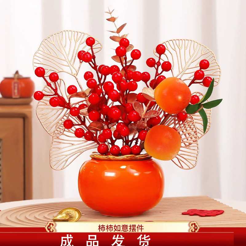 柿柿如意柿子仿真花客厅摆件玄关电视桌背景墙装饰品乔迁之喜搬家