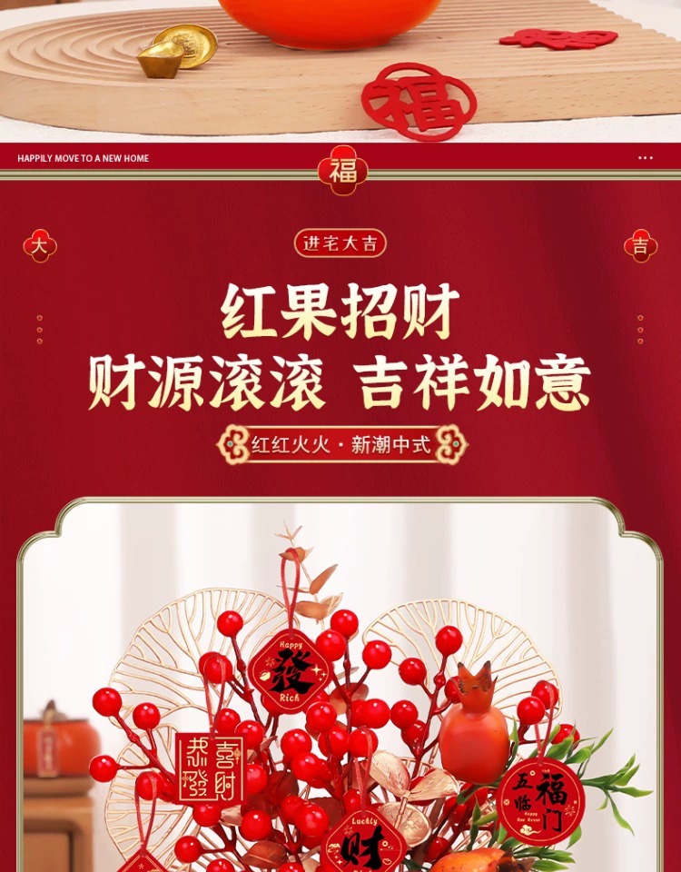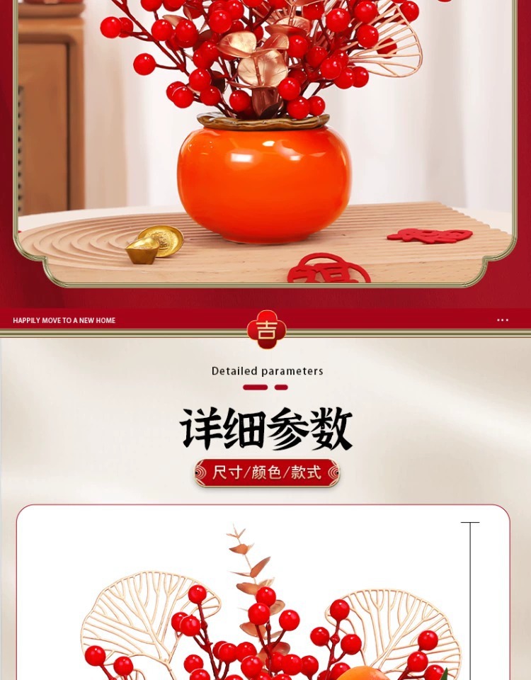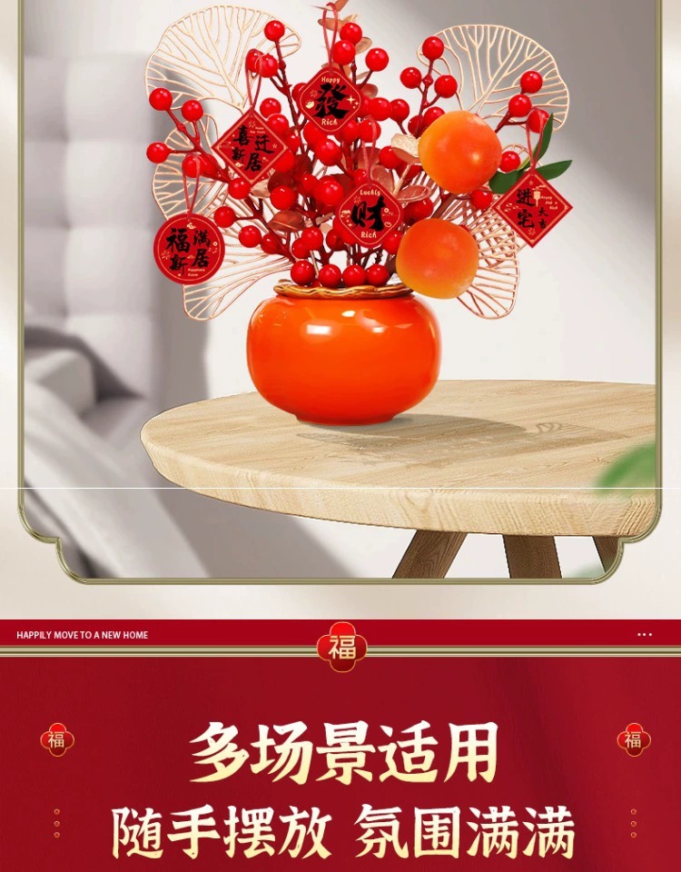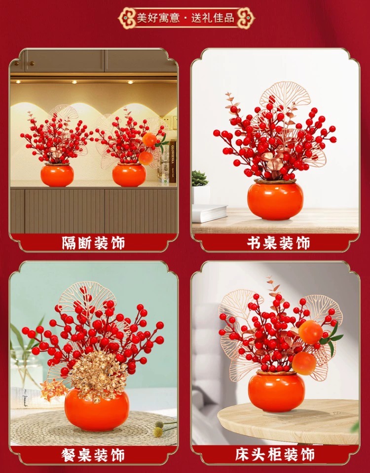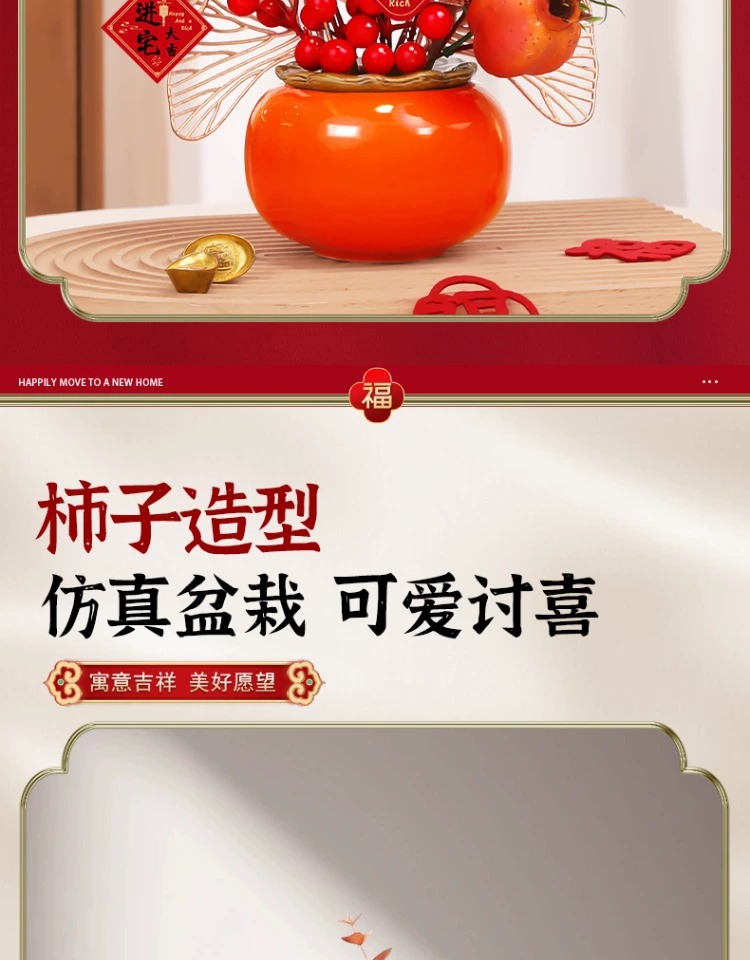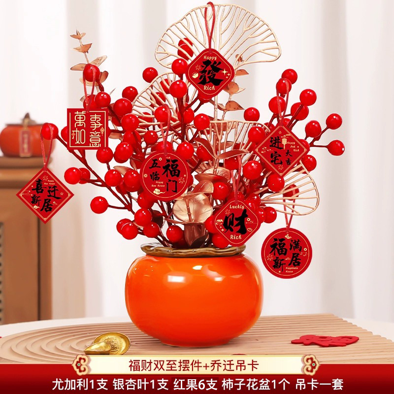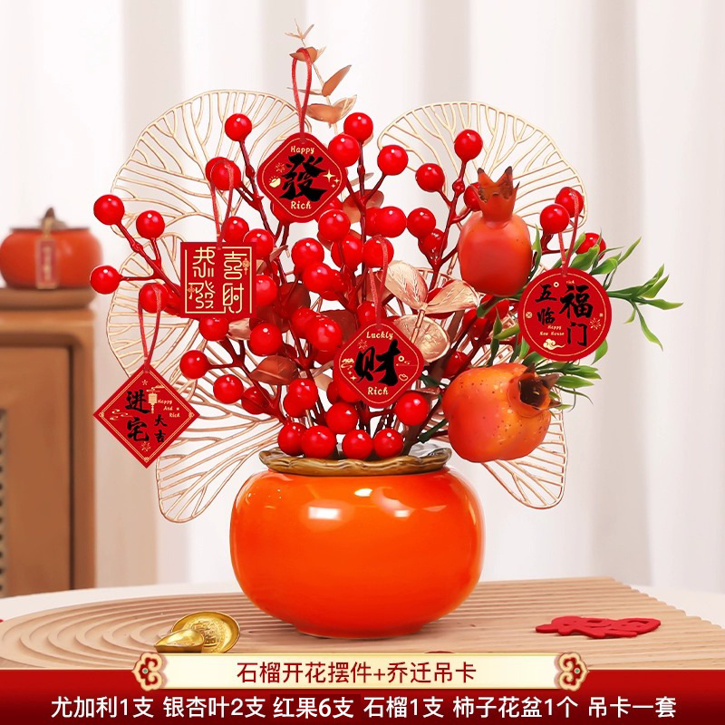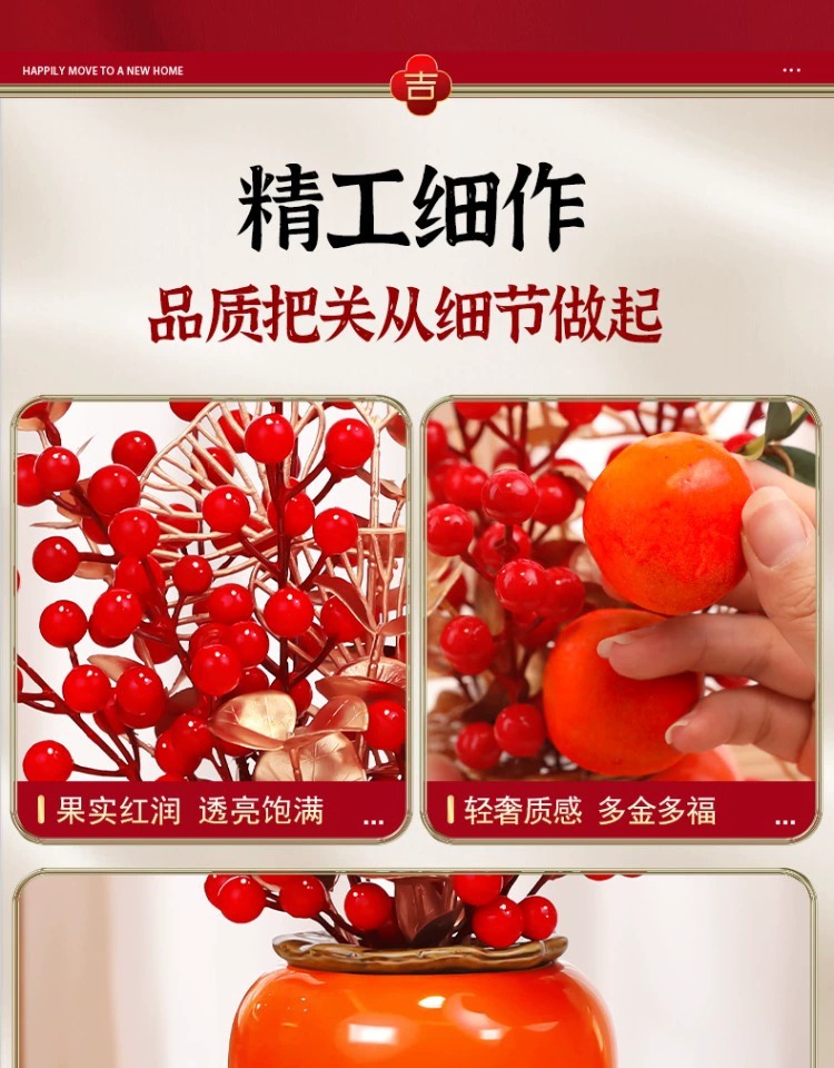 柿柿如意柿子仿真花客厅摆件玄关电视桌背景墙装饰品乔迁之喜搬家