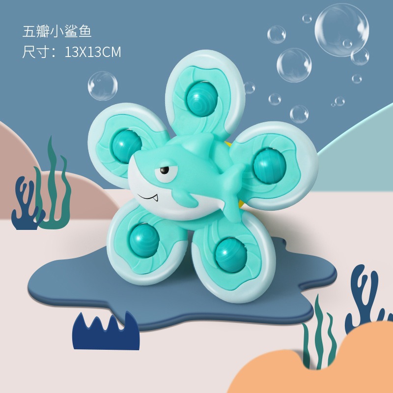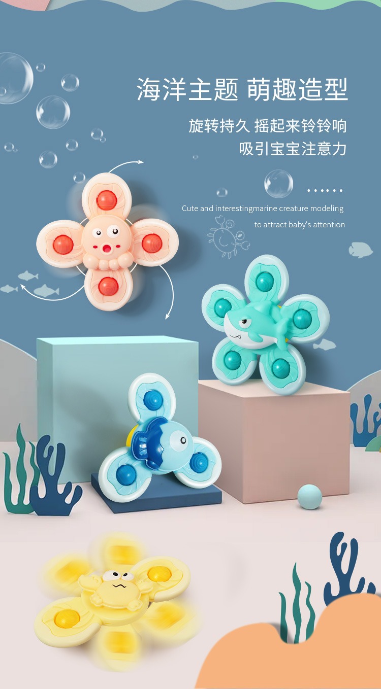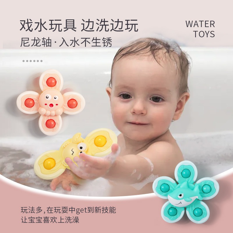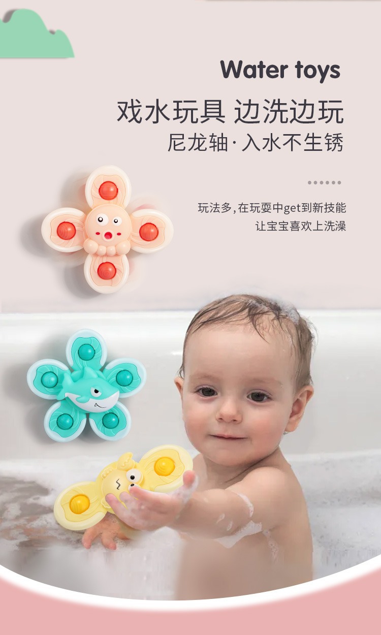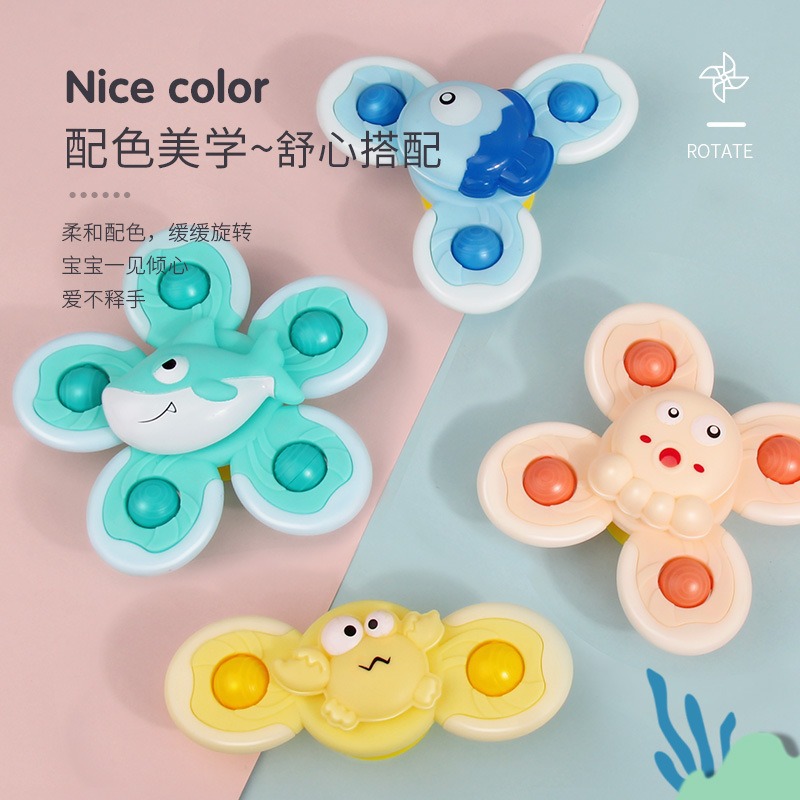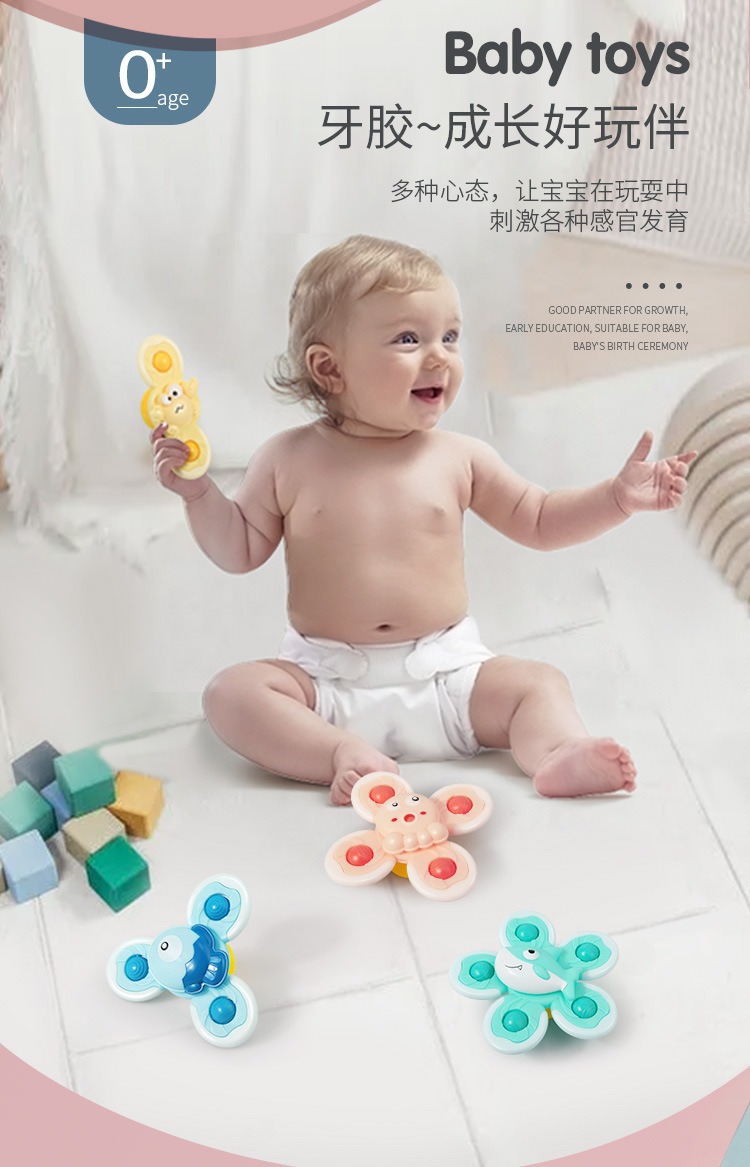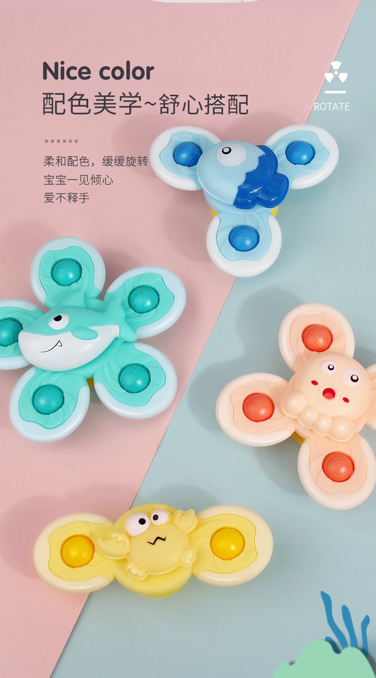 跨境婴儿吸盘转转乐玩具宝宝摇铃益智安抚卡通戏水旋转手指尖陀螺