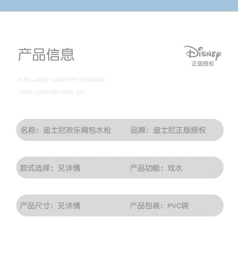 迪士尼 儿童水枪抽拉式大容量背包水枪 喷水枪男女孩戏水玩具批发