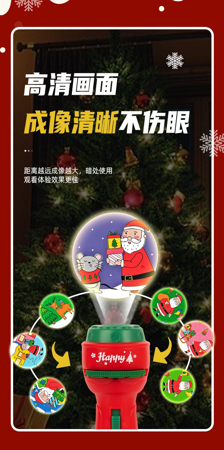 跨境圣诞儿童投影手电筒发光玩具早教识图认知趣味卡通投影仪批发