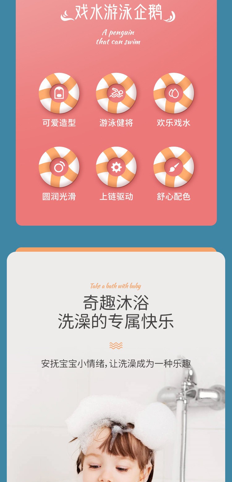 儿童戏水玩具发条上链小乌龟宝宝洗澡浴室企鹅喷水小海豚漂浮玩具