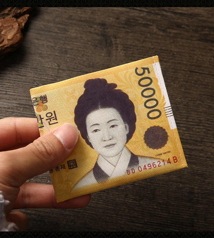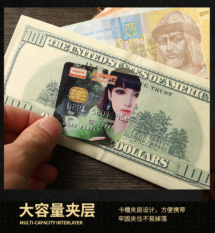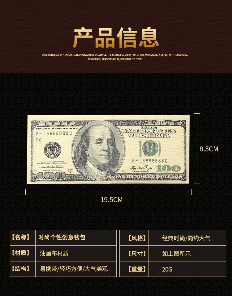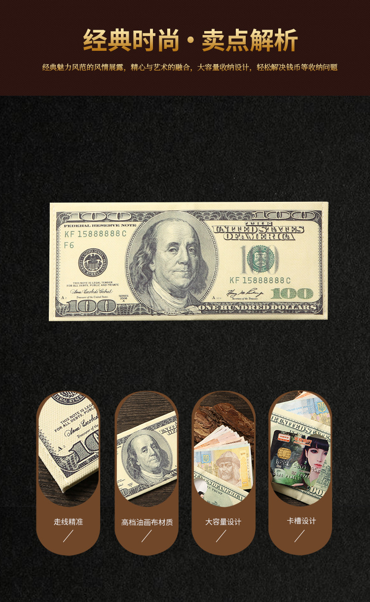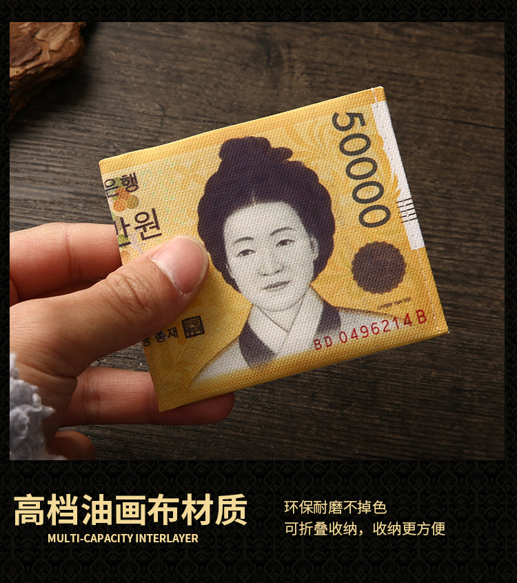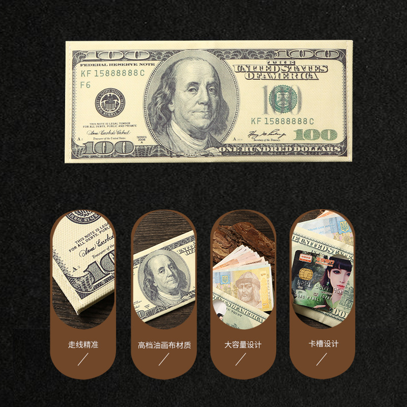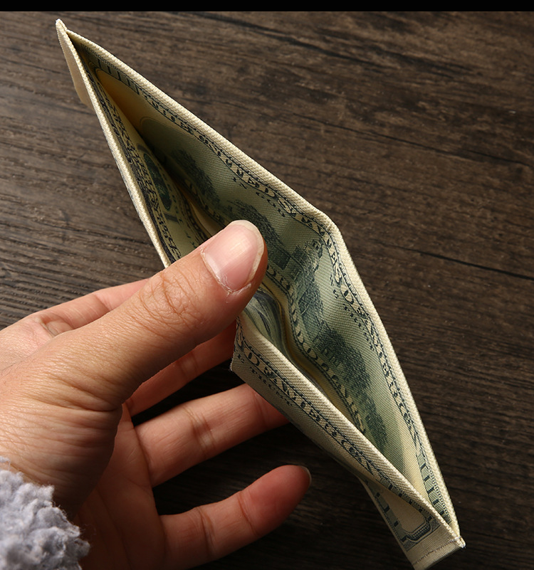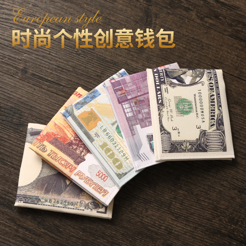 创意钱包男跨境美元印花各国钱币图案帆布短款钱夹卡包现货可定
