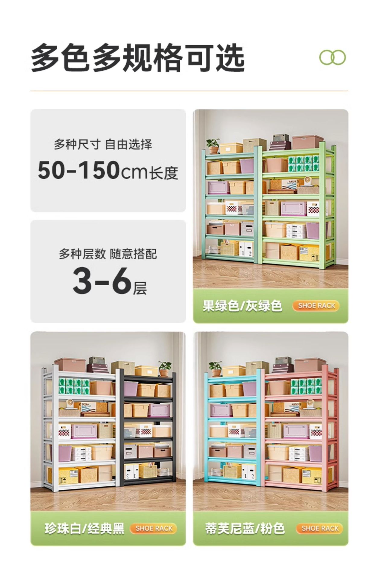 家用置物架多层收纳架书架杂物间整理架地下室可加洞洞板落地货架
