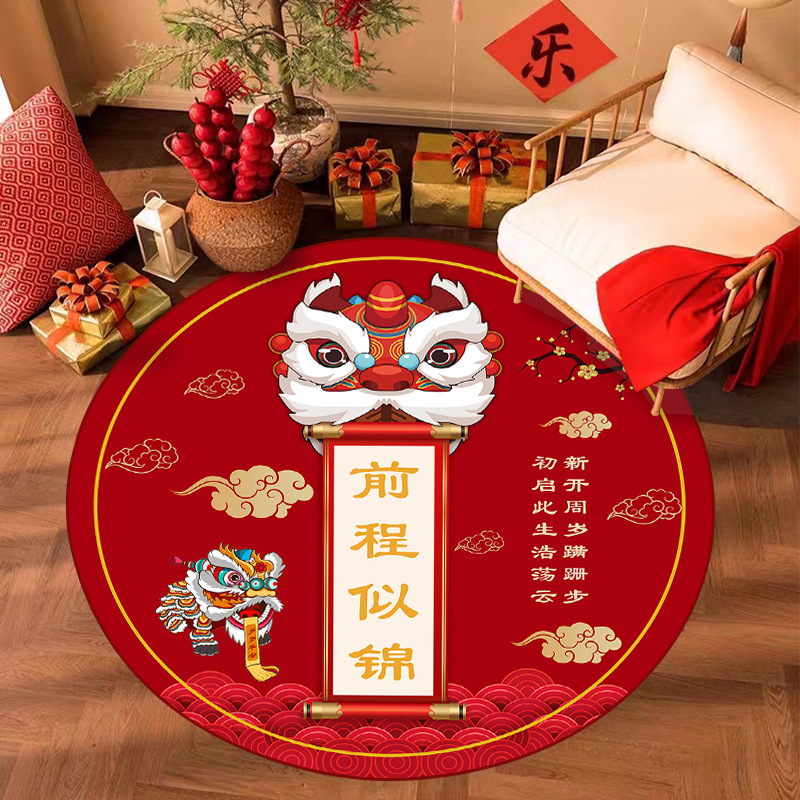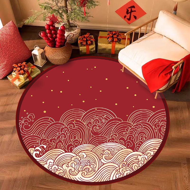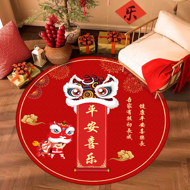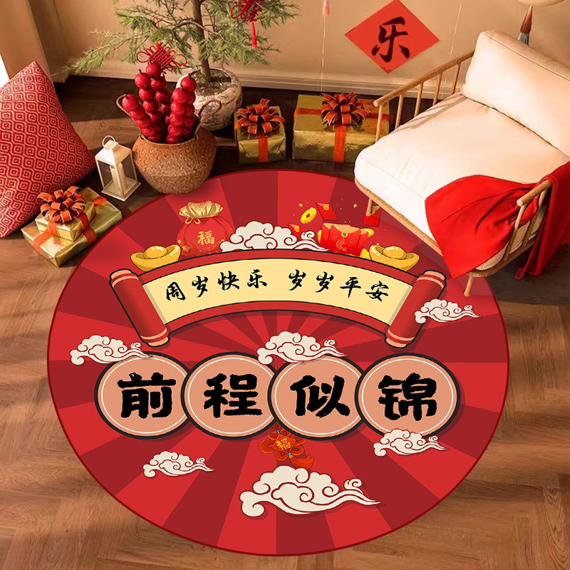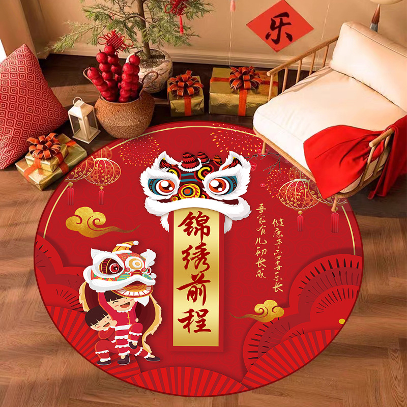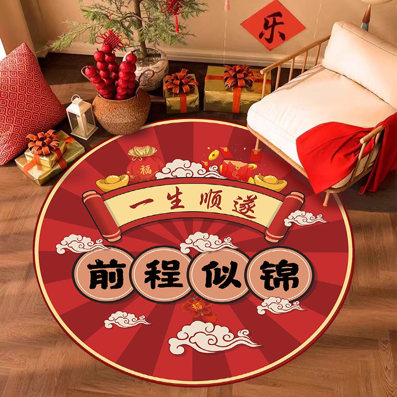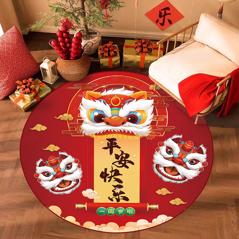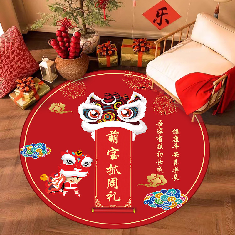 周岁抓周儿童房地毯圆形可爱家用客厅地垫中国风宝宝礼水晶绒毯