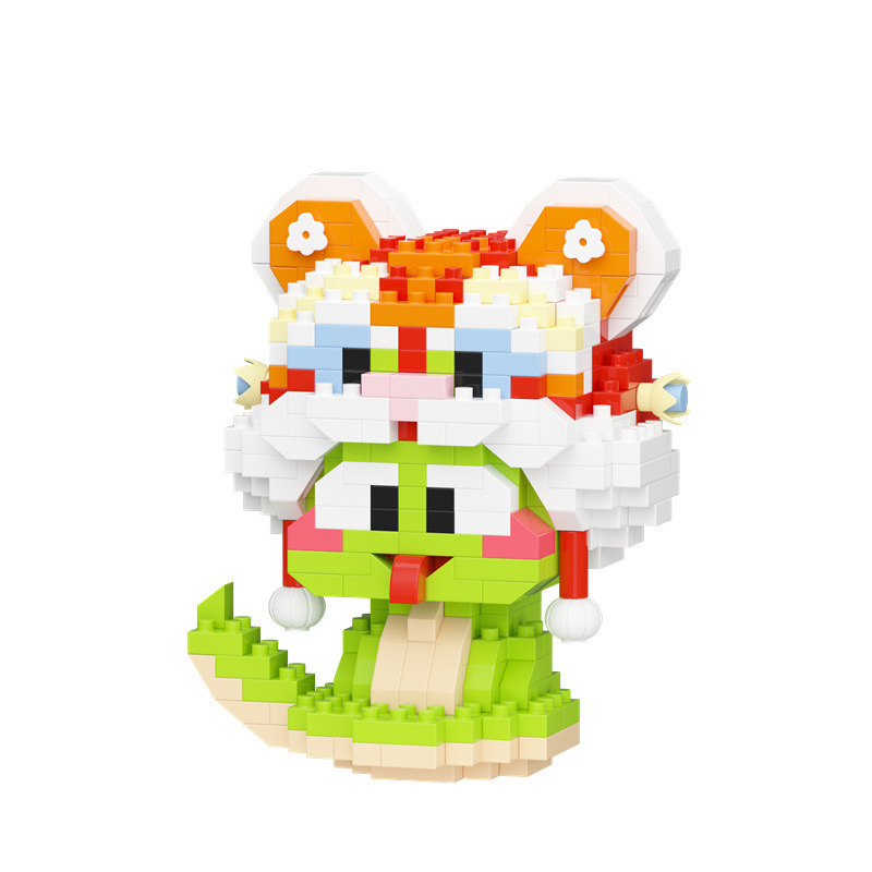 蛇年吉祥物公仔玩偶兼容乐高财神醒狮拼装积木儿童益智玩具摆件