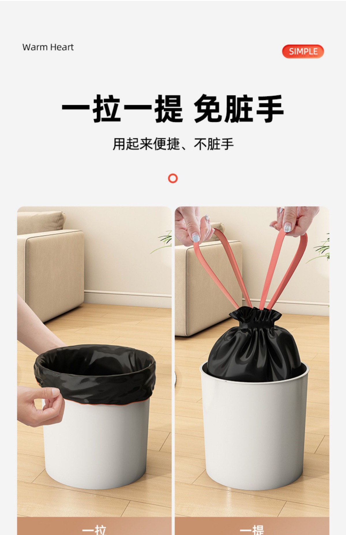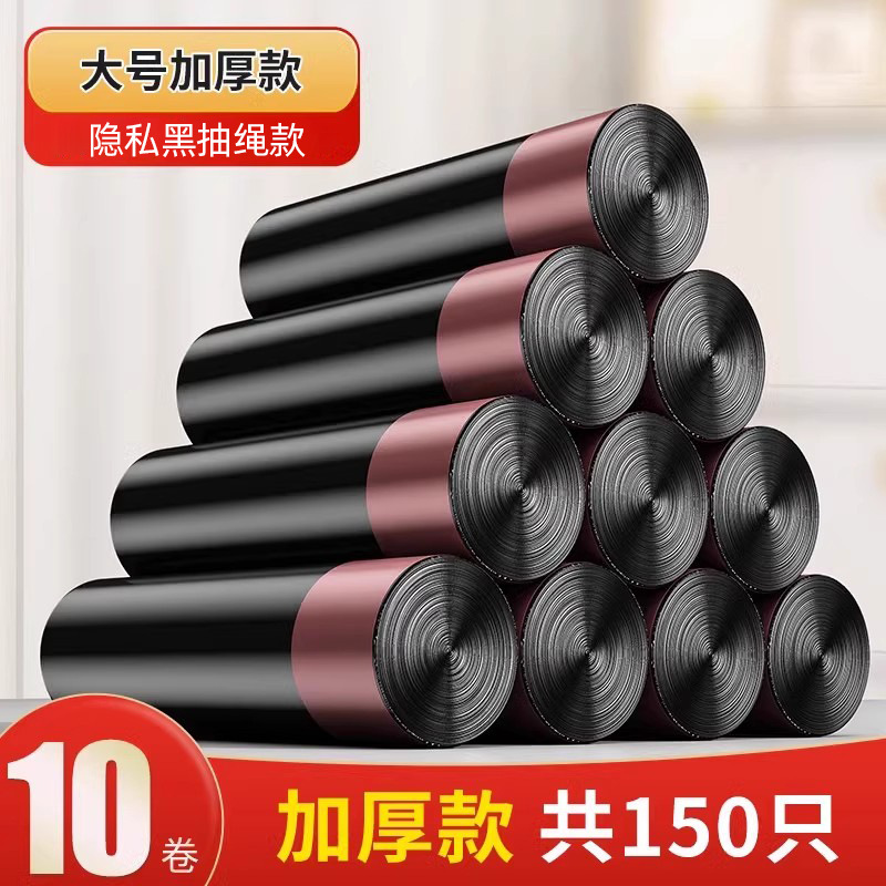厨余抽绳式垃圾袋家用特厚厨房卫生间大号手提加厚黑色塑料袋