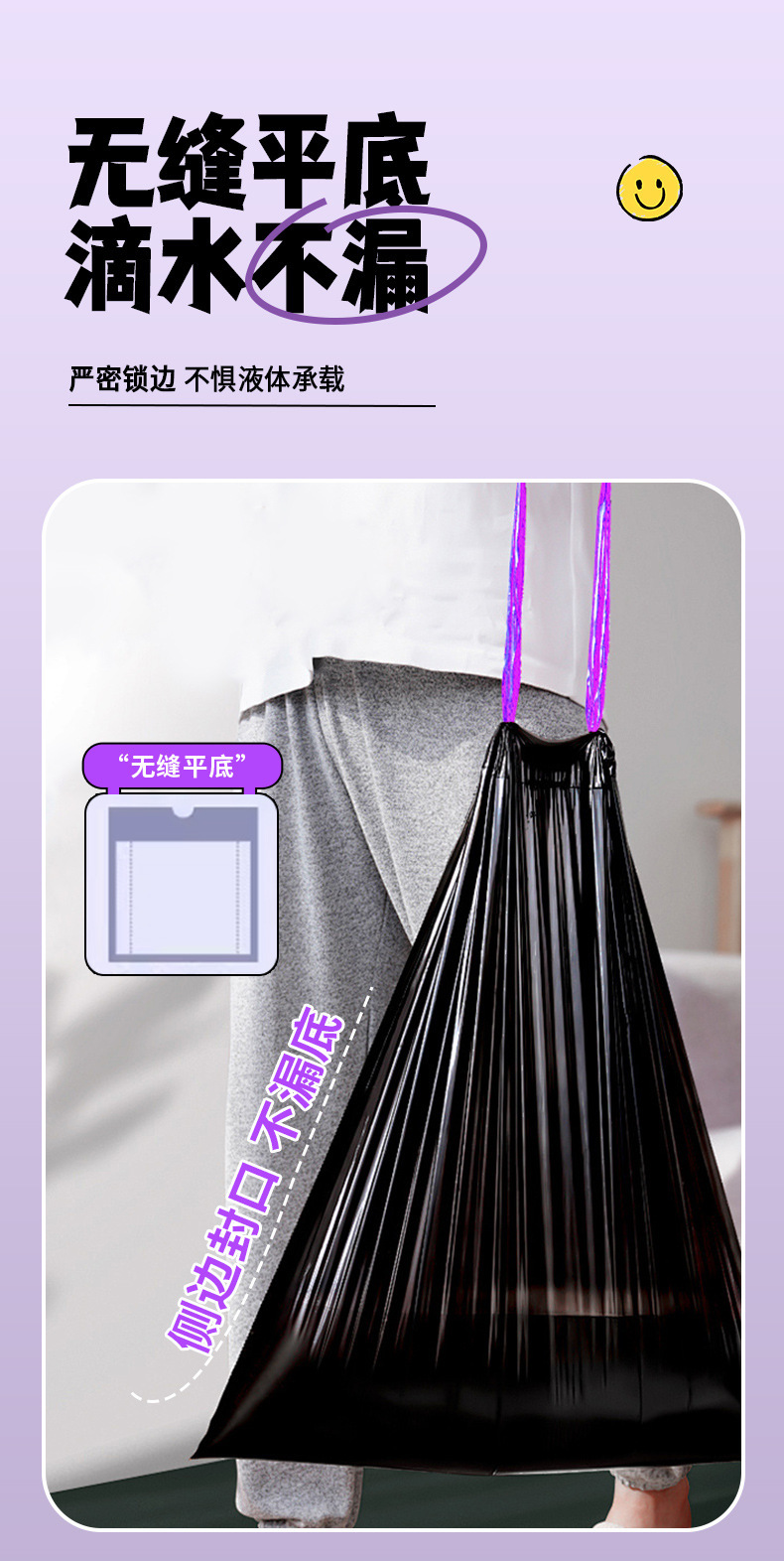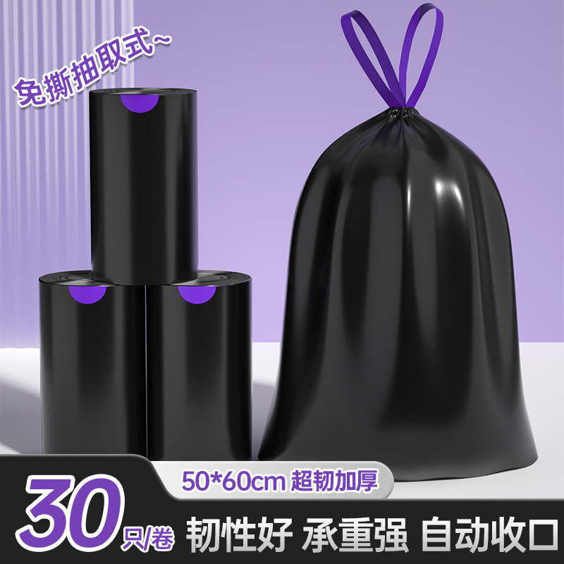 免撕手提收口式黑色拉级塑料袋抽绳垃圾袋加厚家用厨房垃圾代发