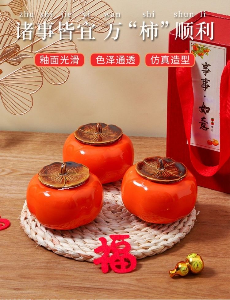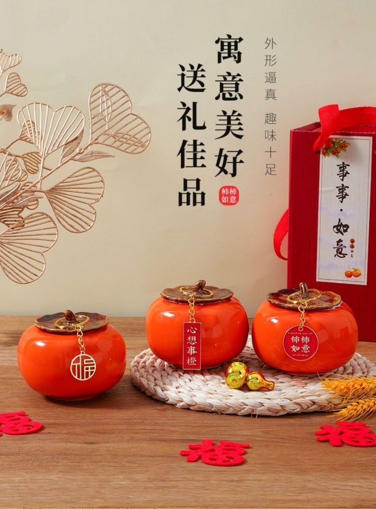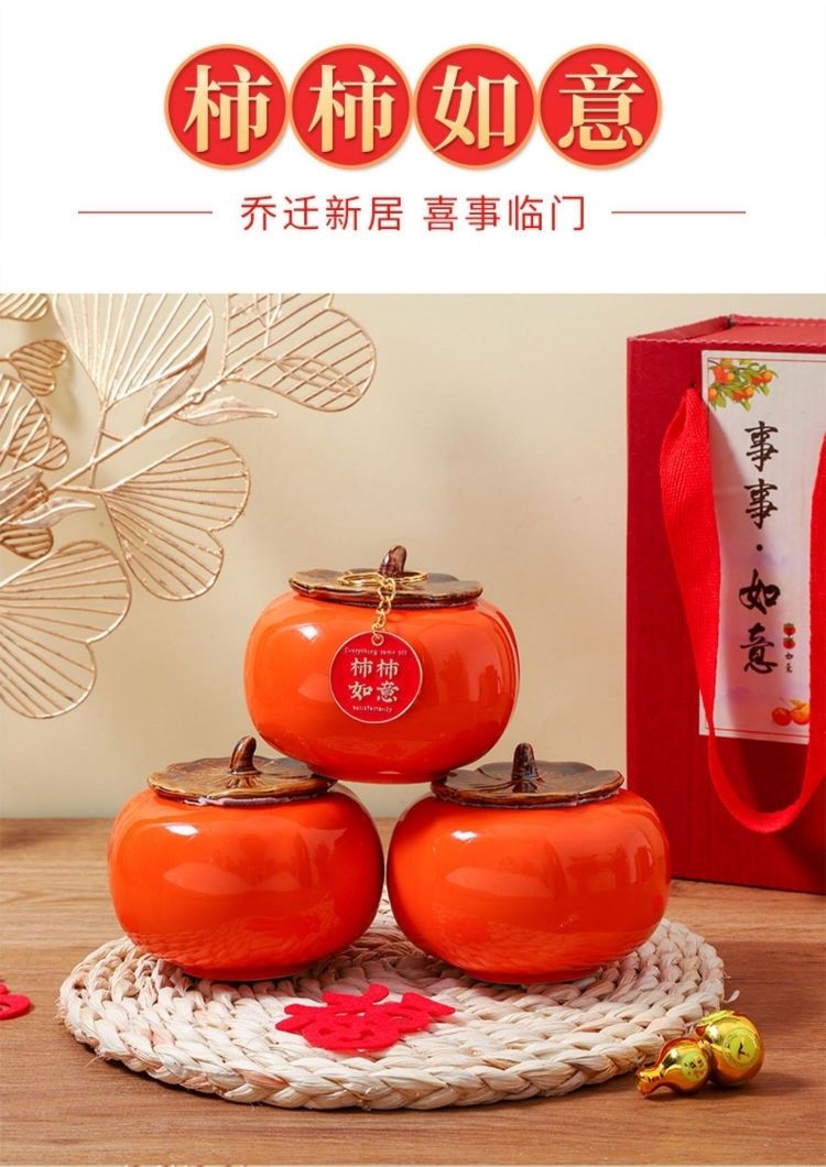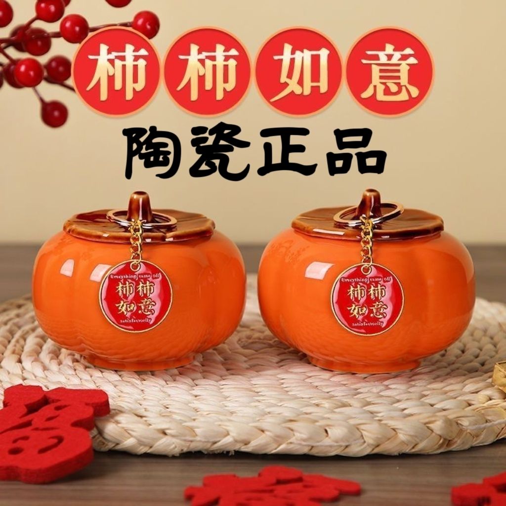乔迁之喜装饰陶瓷柿子送礼柿柿如意客厅桌面摆件新居入宅新家必备