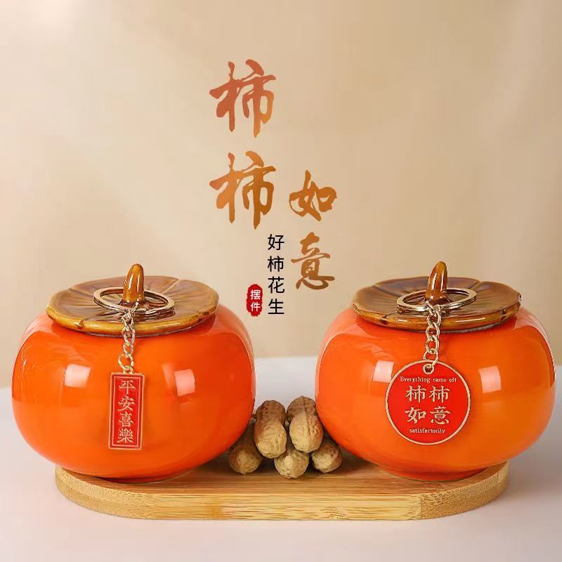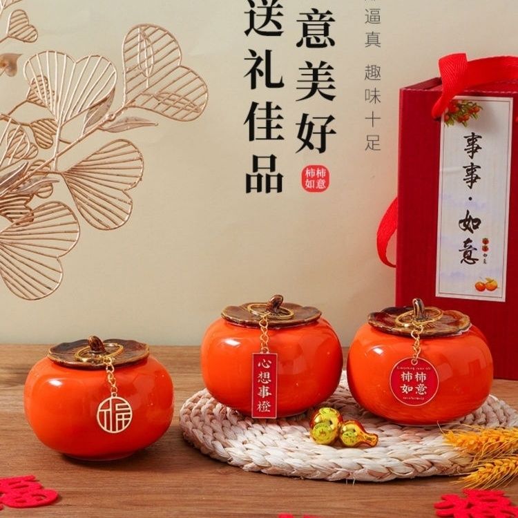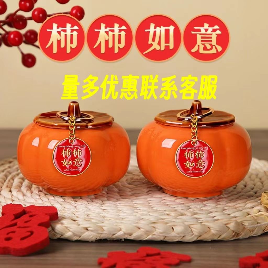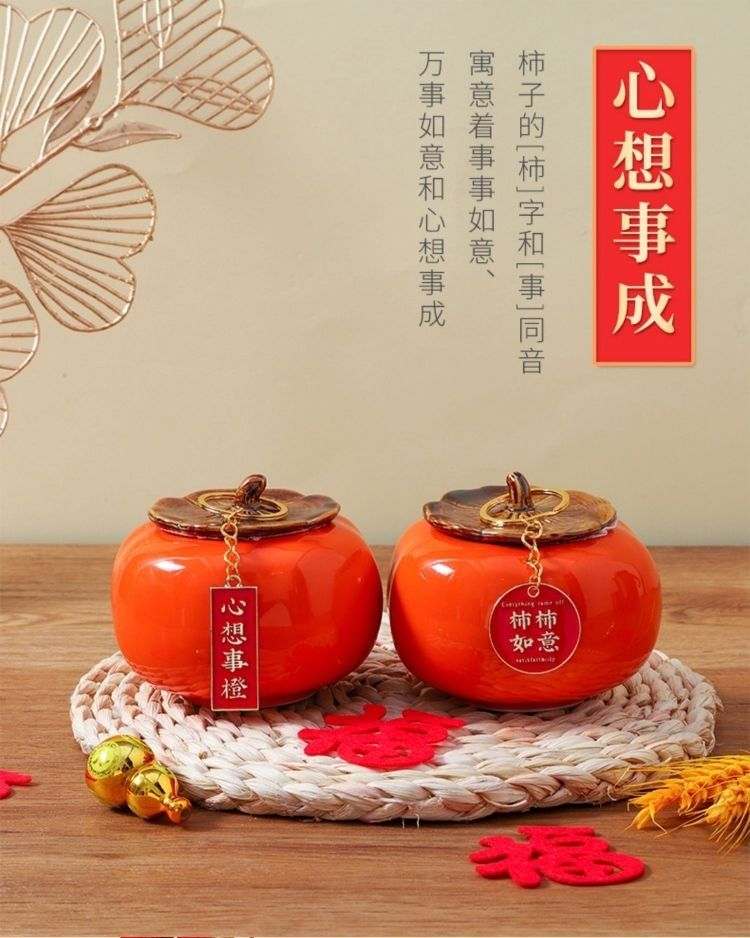 乔迁之喜装饰陶瓷柿子送礼柿柿如意客厅桌面摆件新居入宅新家必备