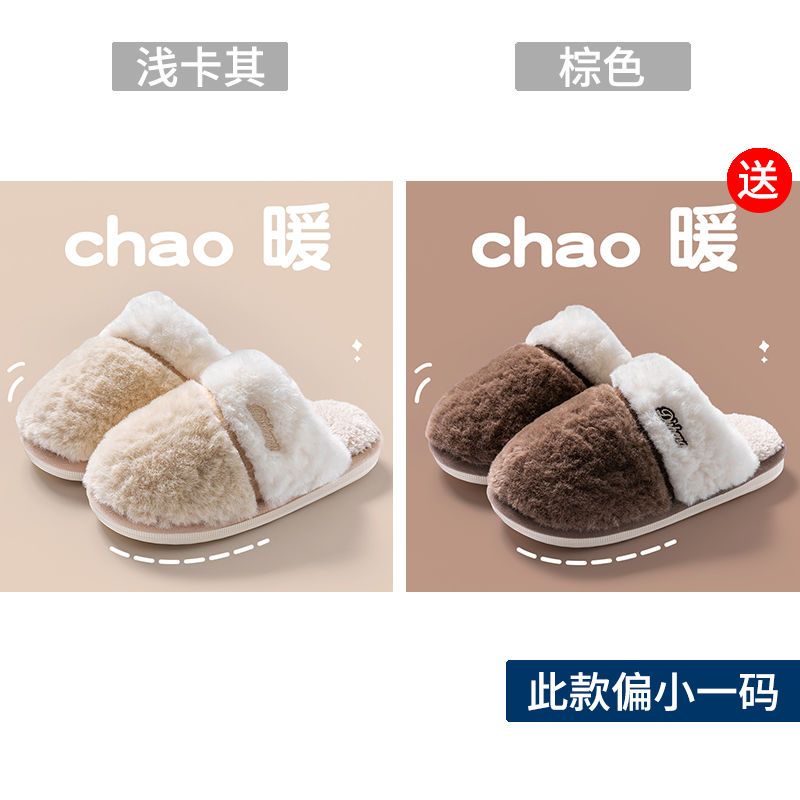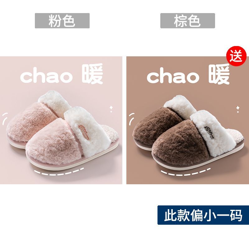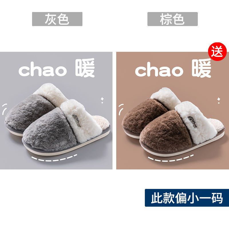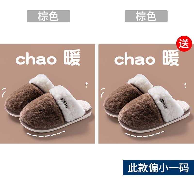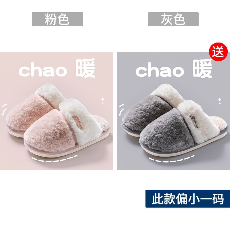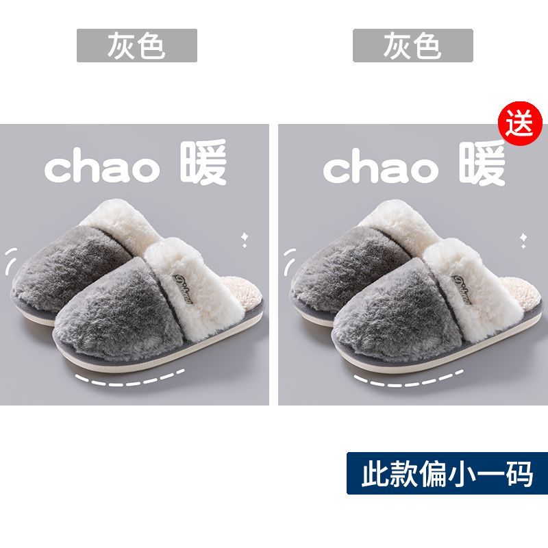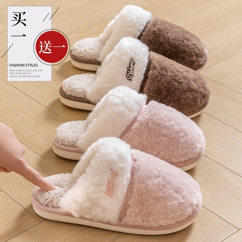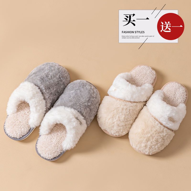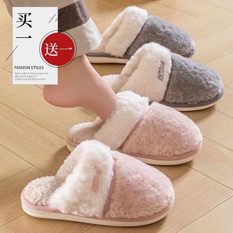买一送一棉拖鞋女冬居家包跟情侣室内厚底防滑保暖月子毛毛拖鞋男