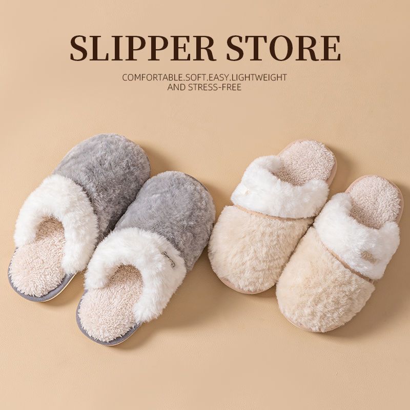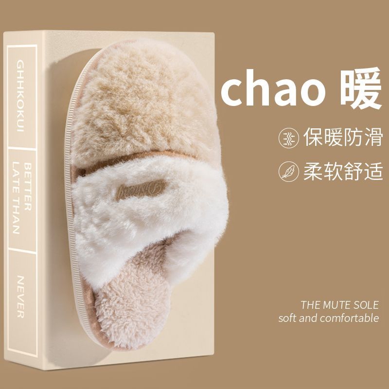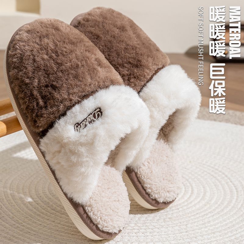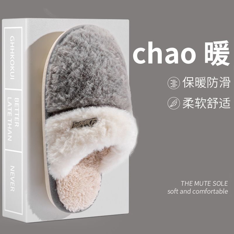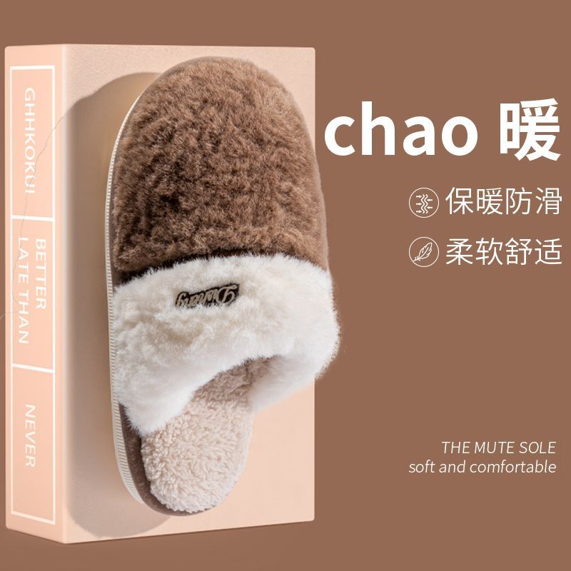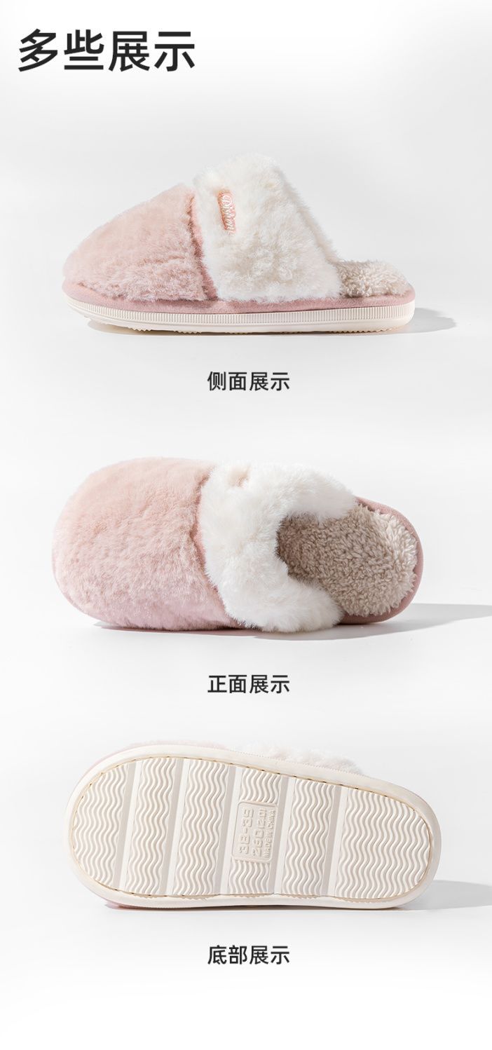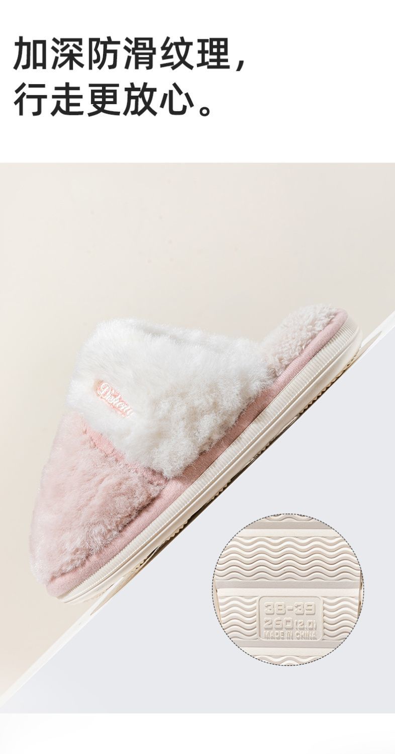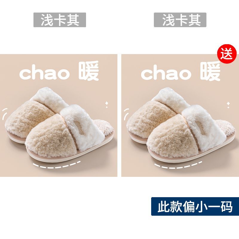 买一送一棉拖鞋女冬居家包跟情侣室内厚底防滑保暖月子毛毛拖鞋男