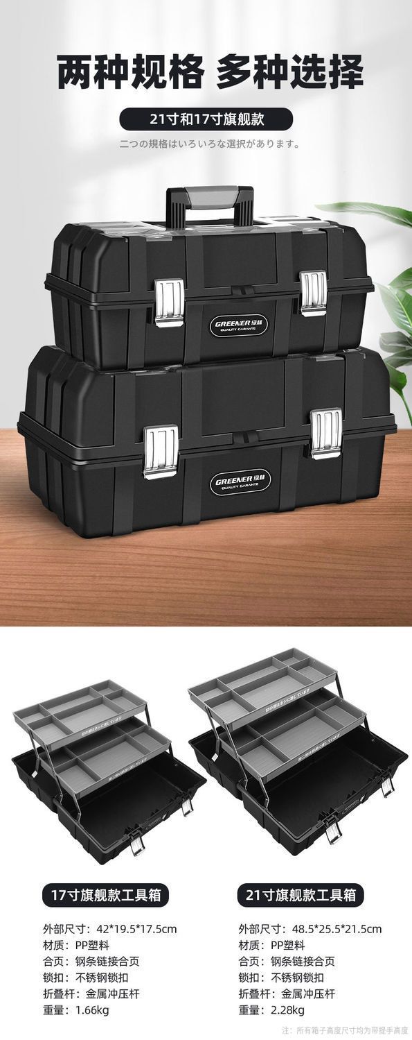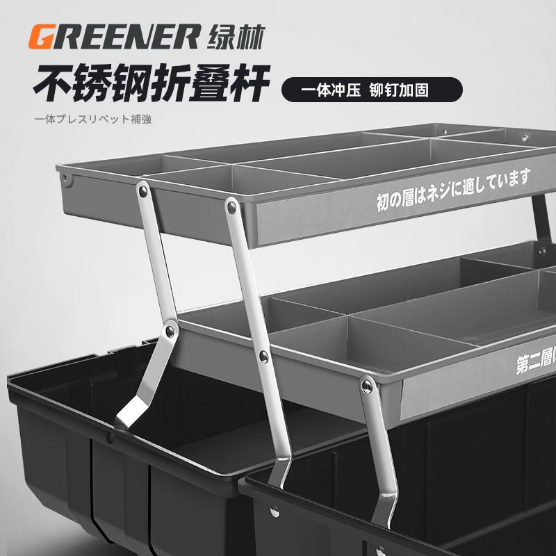 绿林工具箱三层折叠收纳箱多功能家用电工维修五金工具手提式空箱