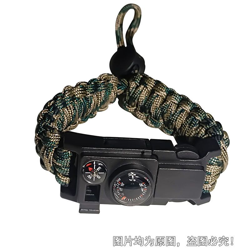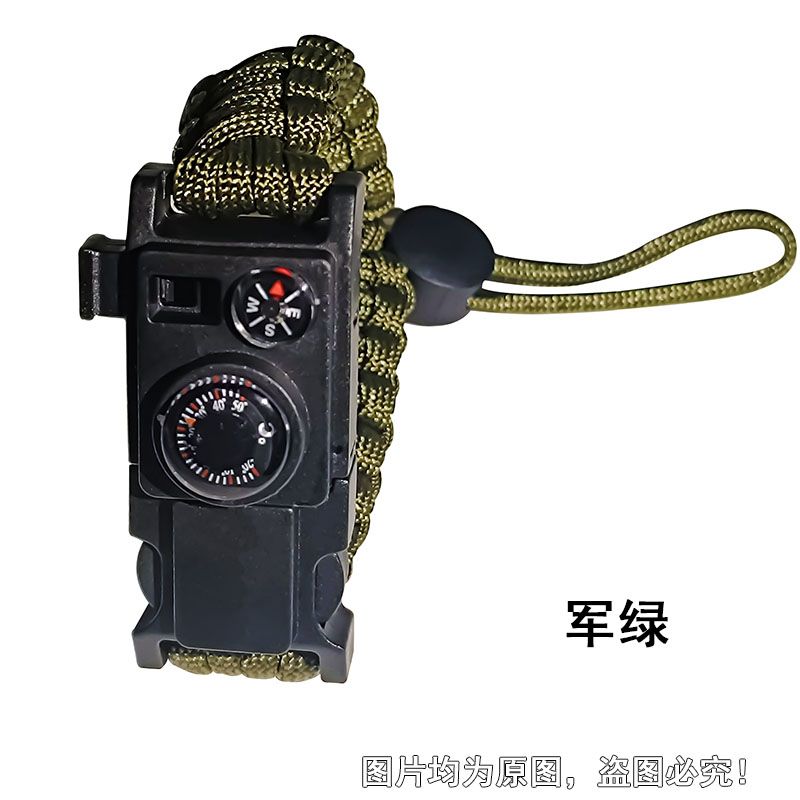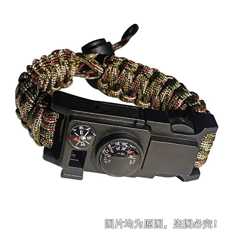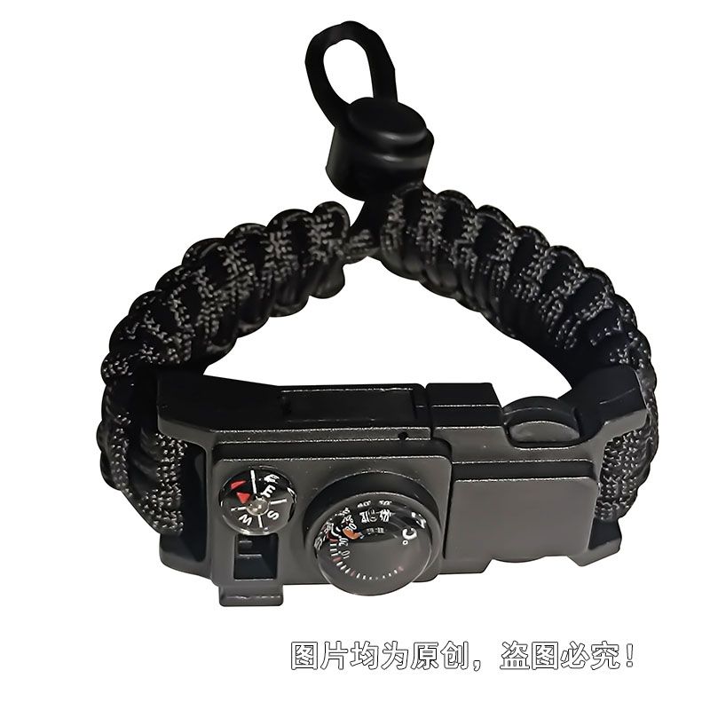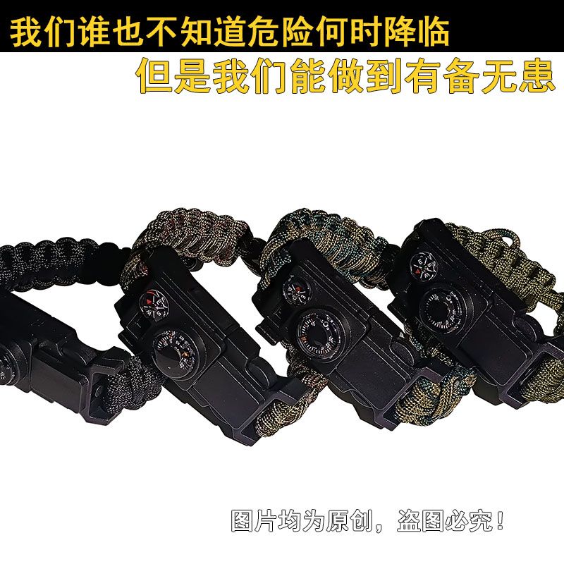 10合1战狼手链绳户外多功能求 生手环男指南针打火石温度计伞绳编