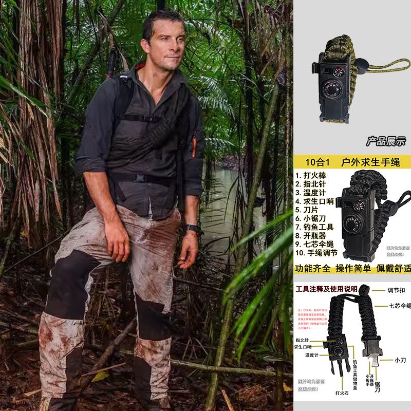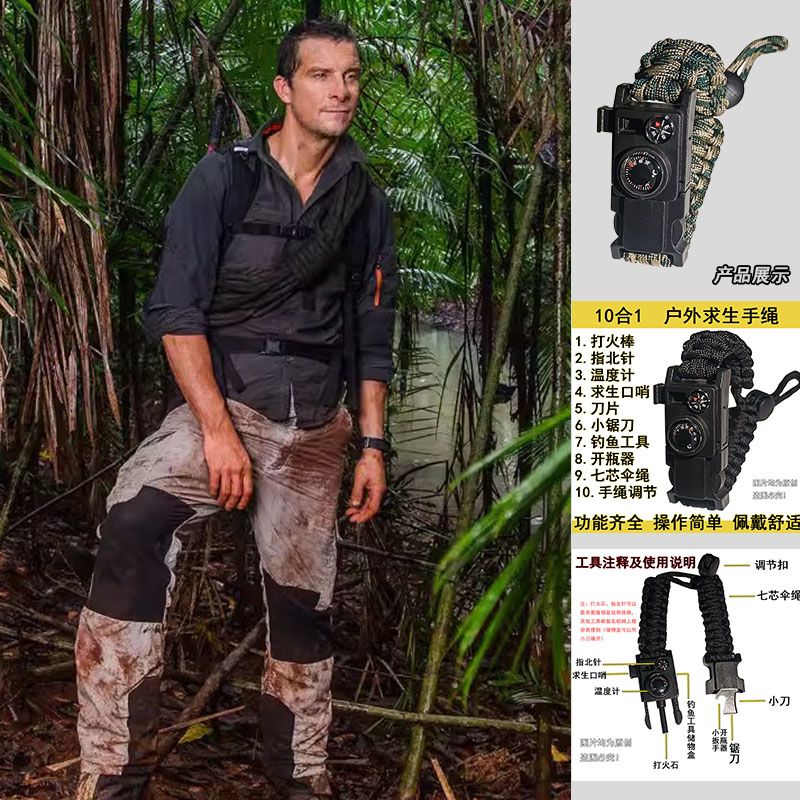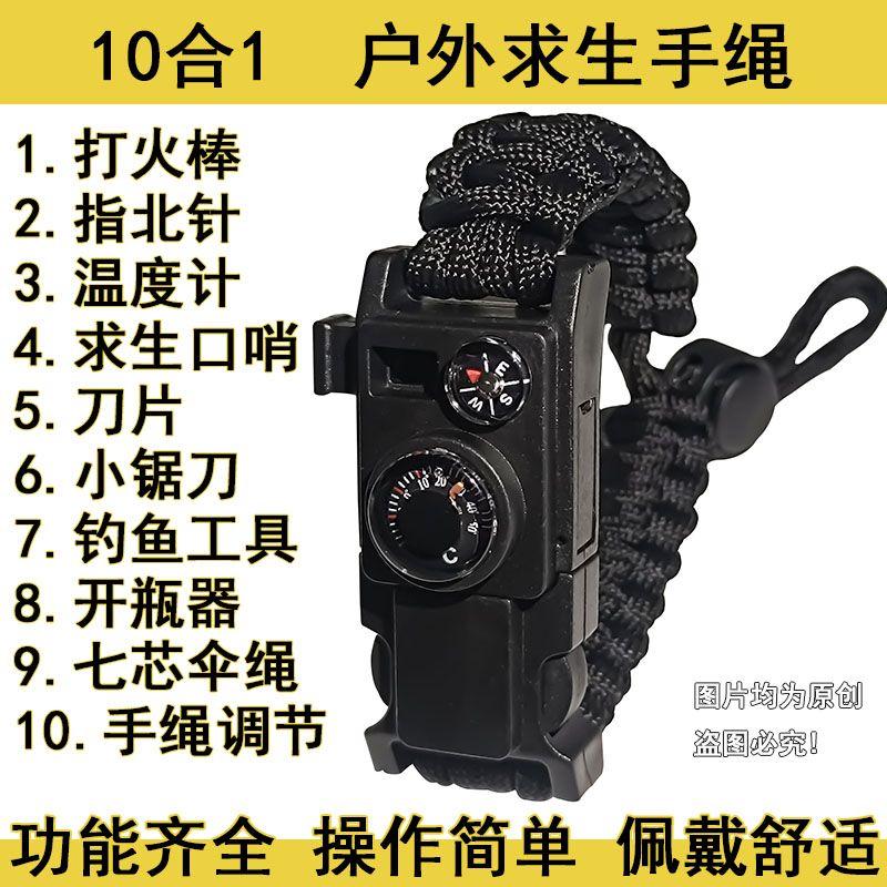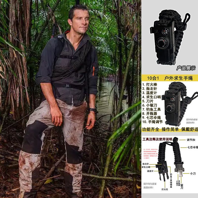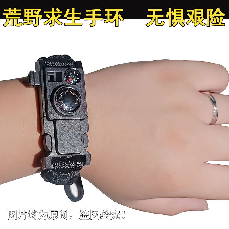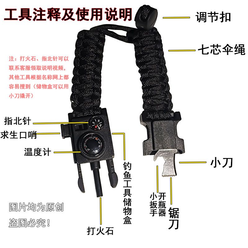10合1战狼手链绳户外多功能求 生手环男指南针打火石温度计伞绳编