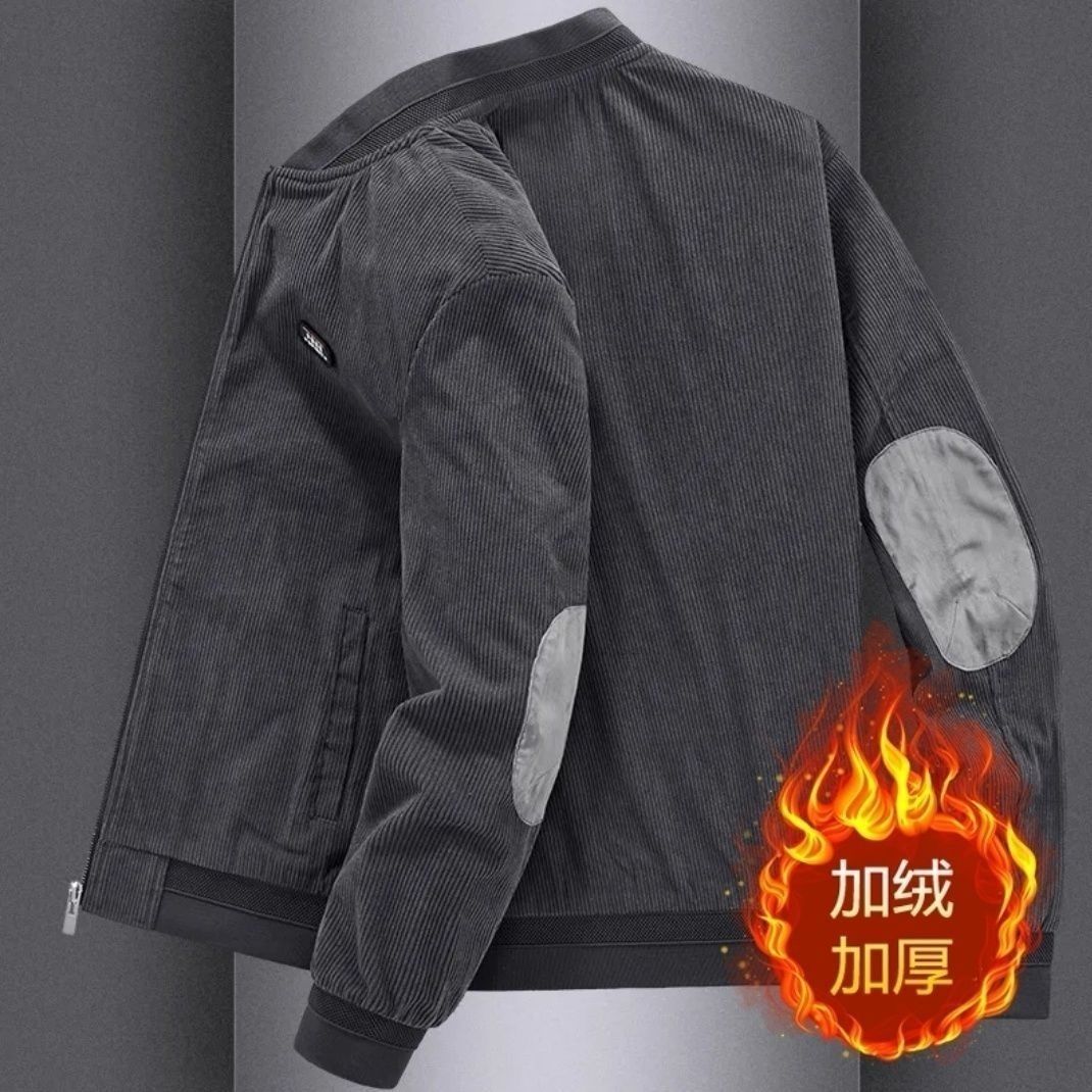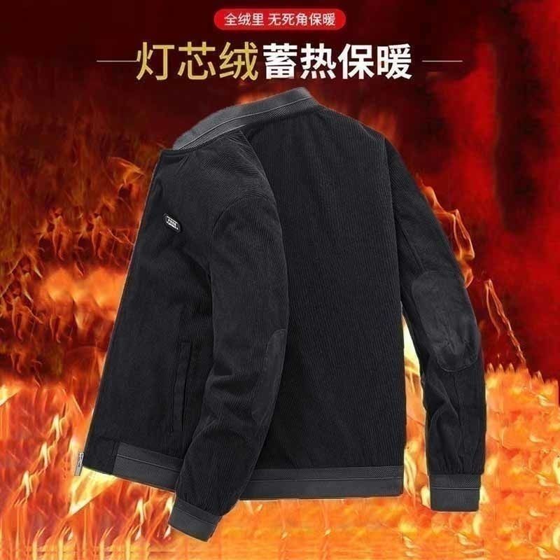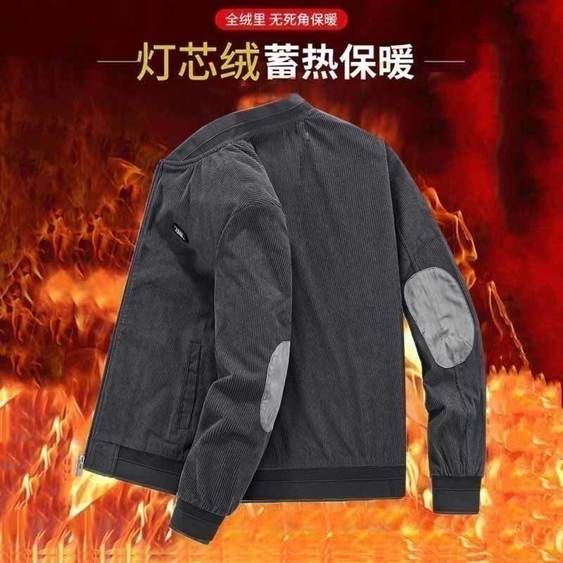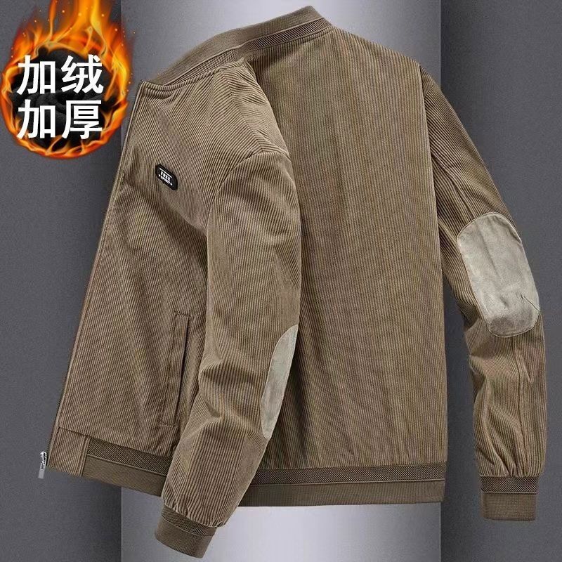 加绒加厚外套男2024秋冬季新款工装宽松中年男灯芯绒复古夹克男潮