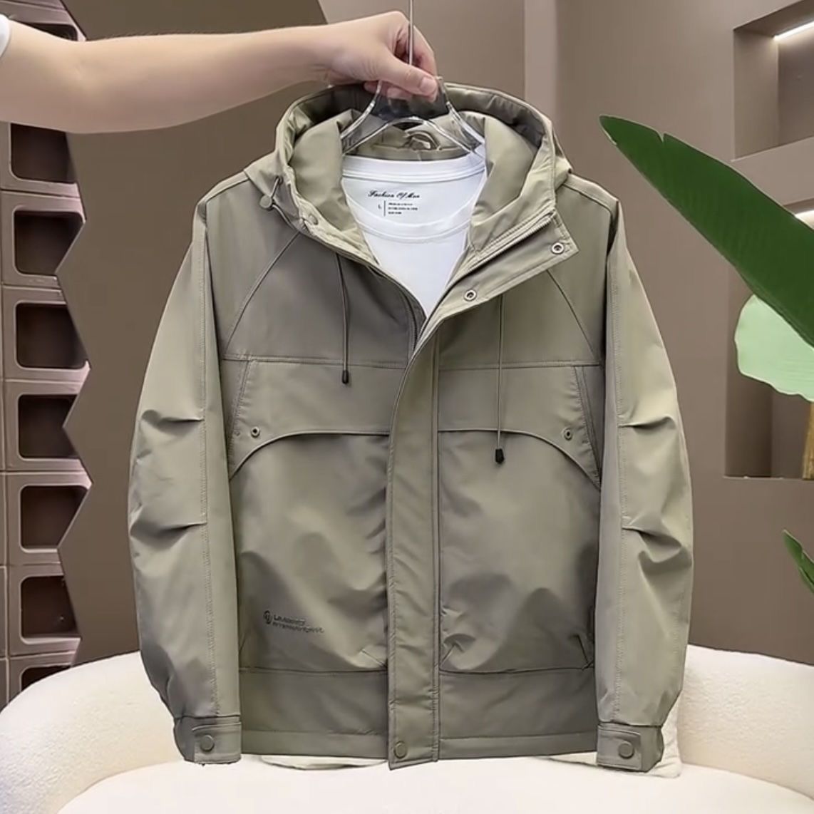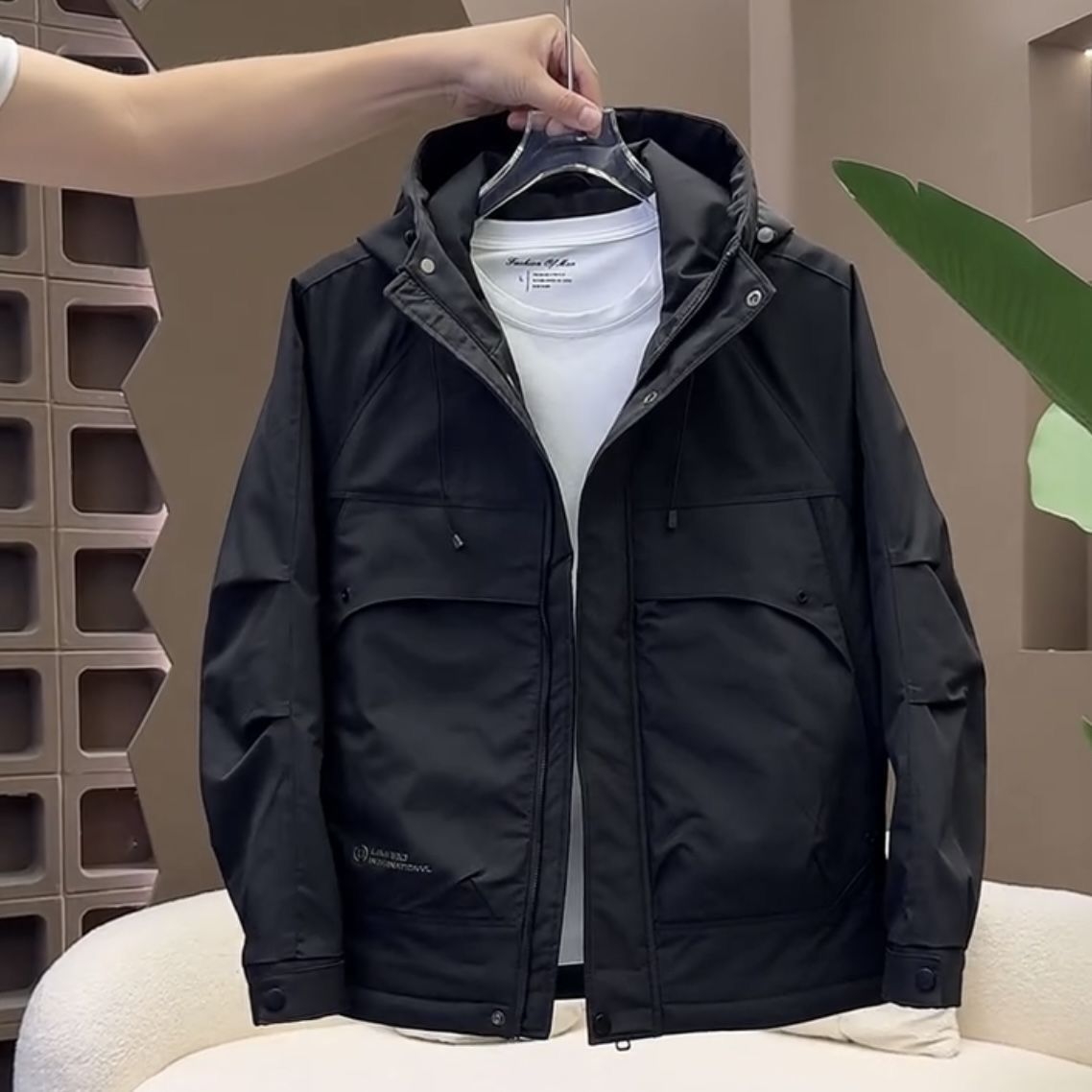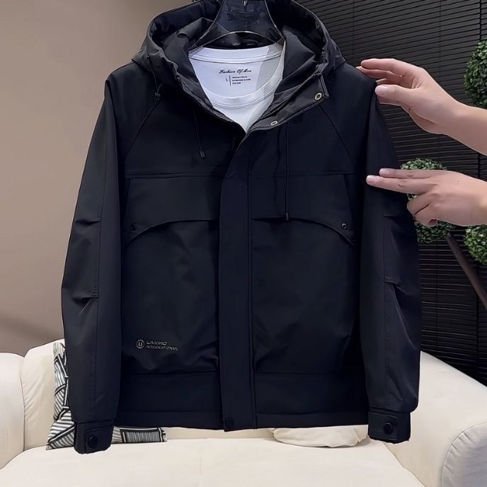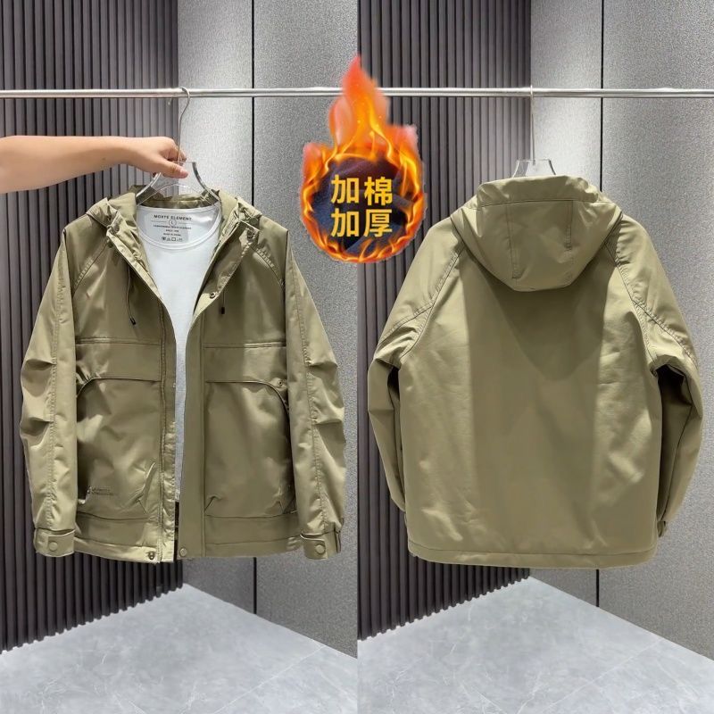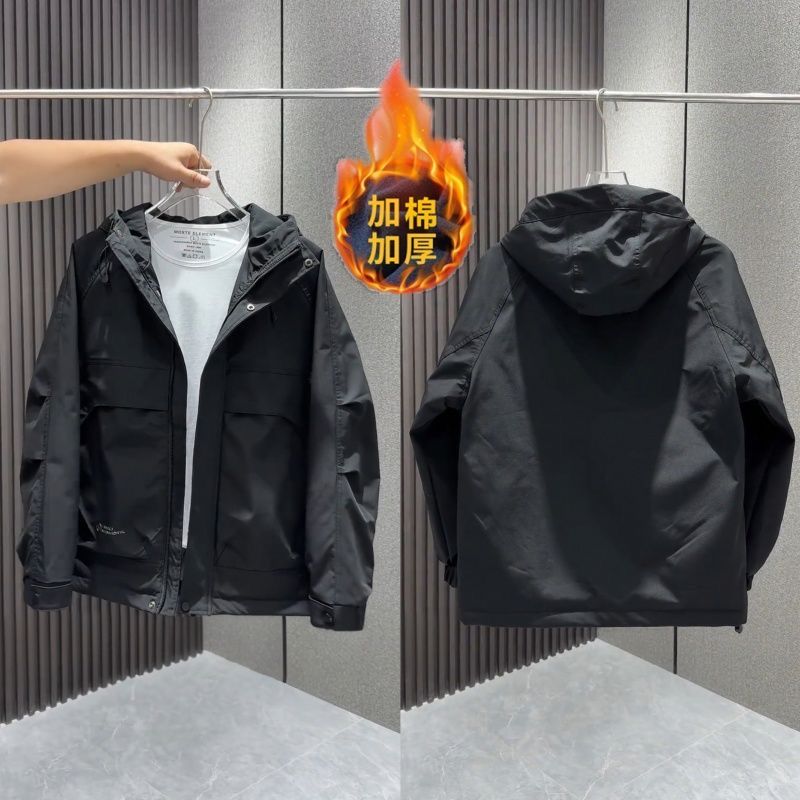 秋冬新款户外工装连帽冲锋衣外套男潮牌时尚宽松百搭保暖棉服外套